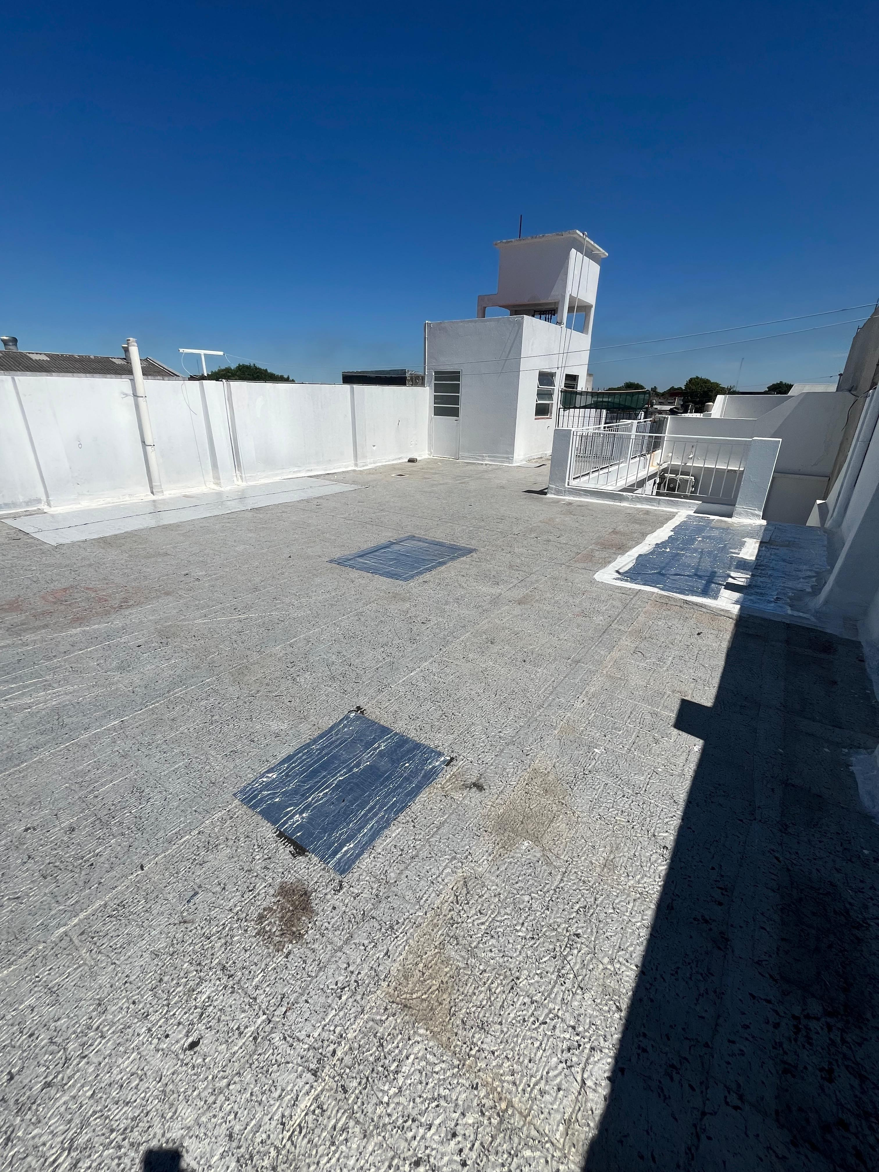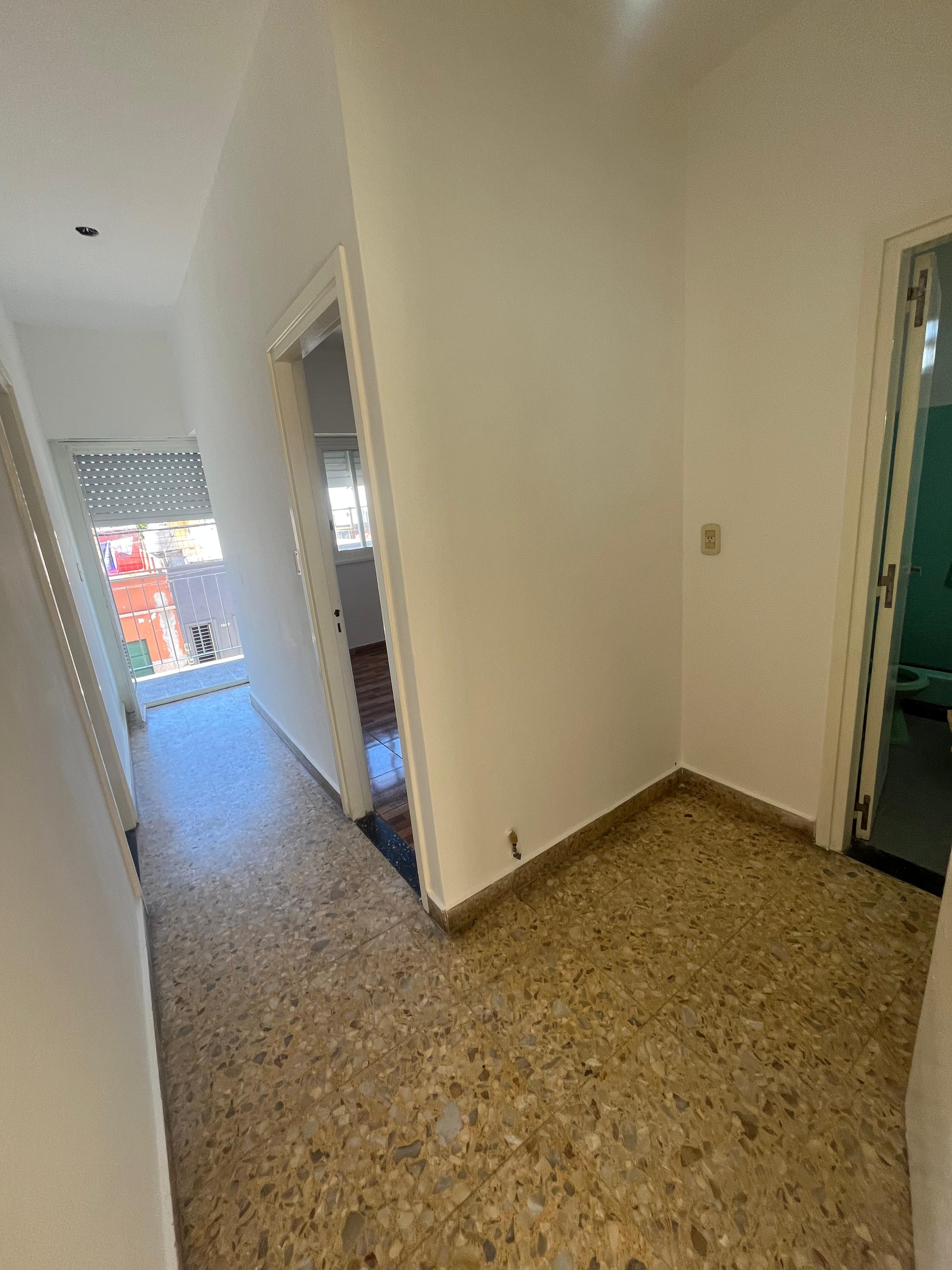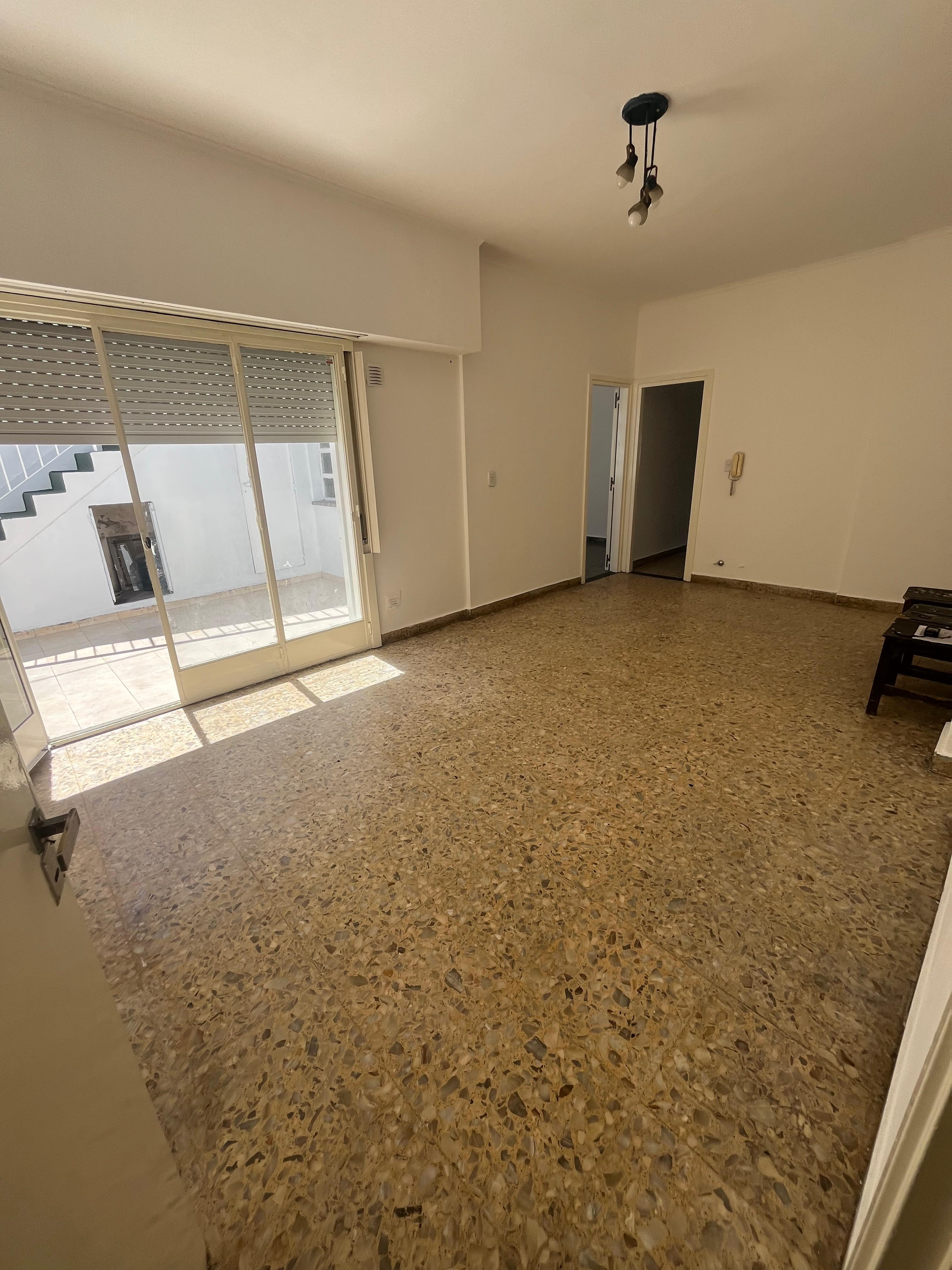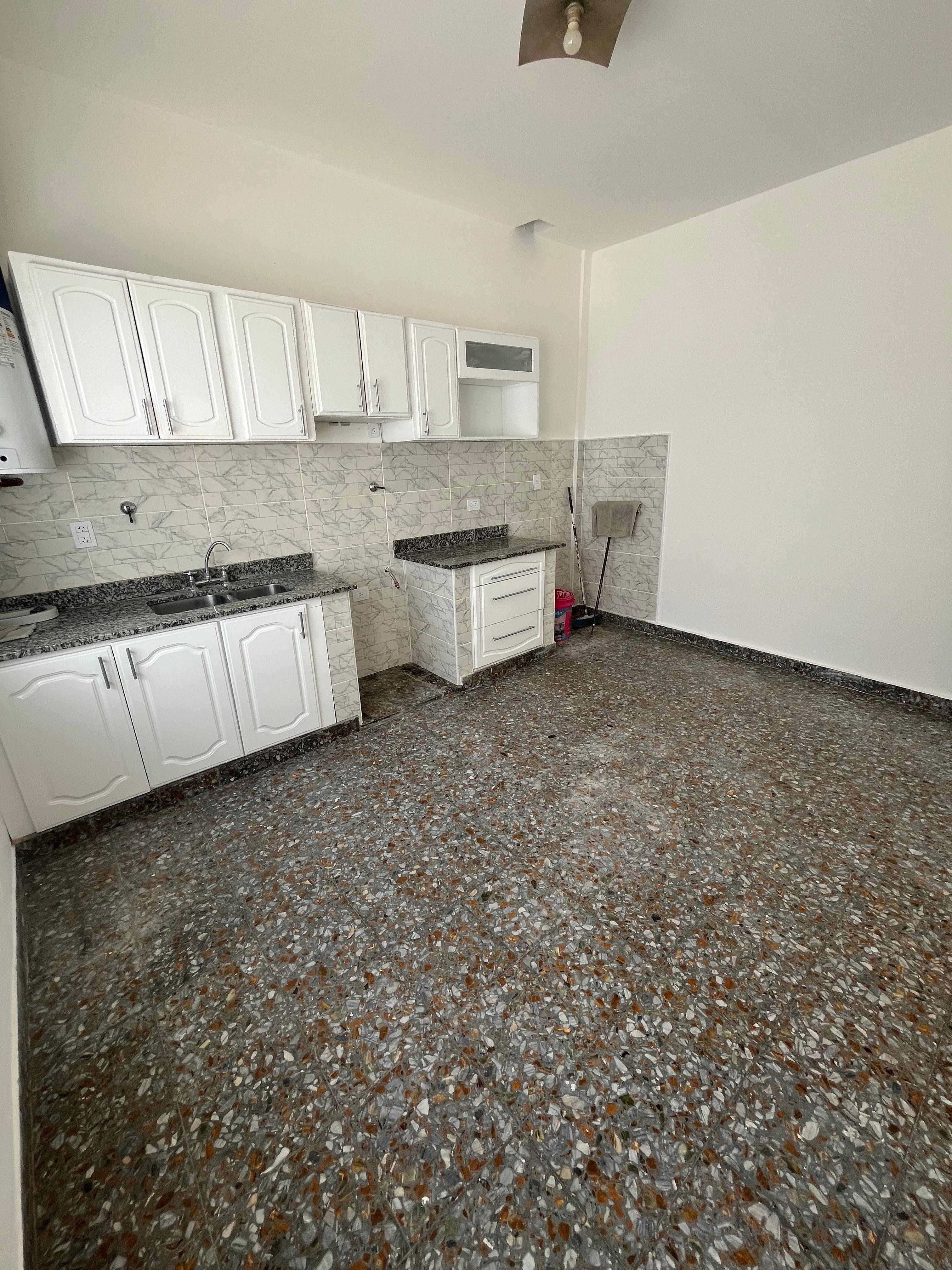 Departamento de 3 ambientes en Villa Madero, en 1er piso por escalera al frente. El living comedor tiene ventana balcón con persiana y salida al patio; la cocina cuenta con alacena y bajo mesada, con ventana y puerta al patio. Dispone de pasillo distribuidor con salida al balcón, baño completo y 2 habitaciones, además de patio con baño de servicio y escalera con acceso a la terraza, que tiene lavadero techado. No tiene expensas.