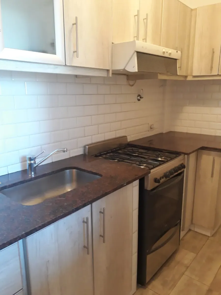 Apartamento de 3 ambientes no 7º andar, lateral, com 2 dormitórios com armários, 40 m² e 1 banheiro. Inclui lavanderia e acesso a terraço comum. O imóvel é entregue pintado. Condomínio: 80.000 ARS; AYSA: 15.000 ARS; imposto municipal: 60.000 ARS. Contrato de 2 anos, com ajuste trimestral por IPC. Não são aceitos animais. Exige-se garantia própria ou seguro-fiança de aluguel e contracheque próprio comprovável.