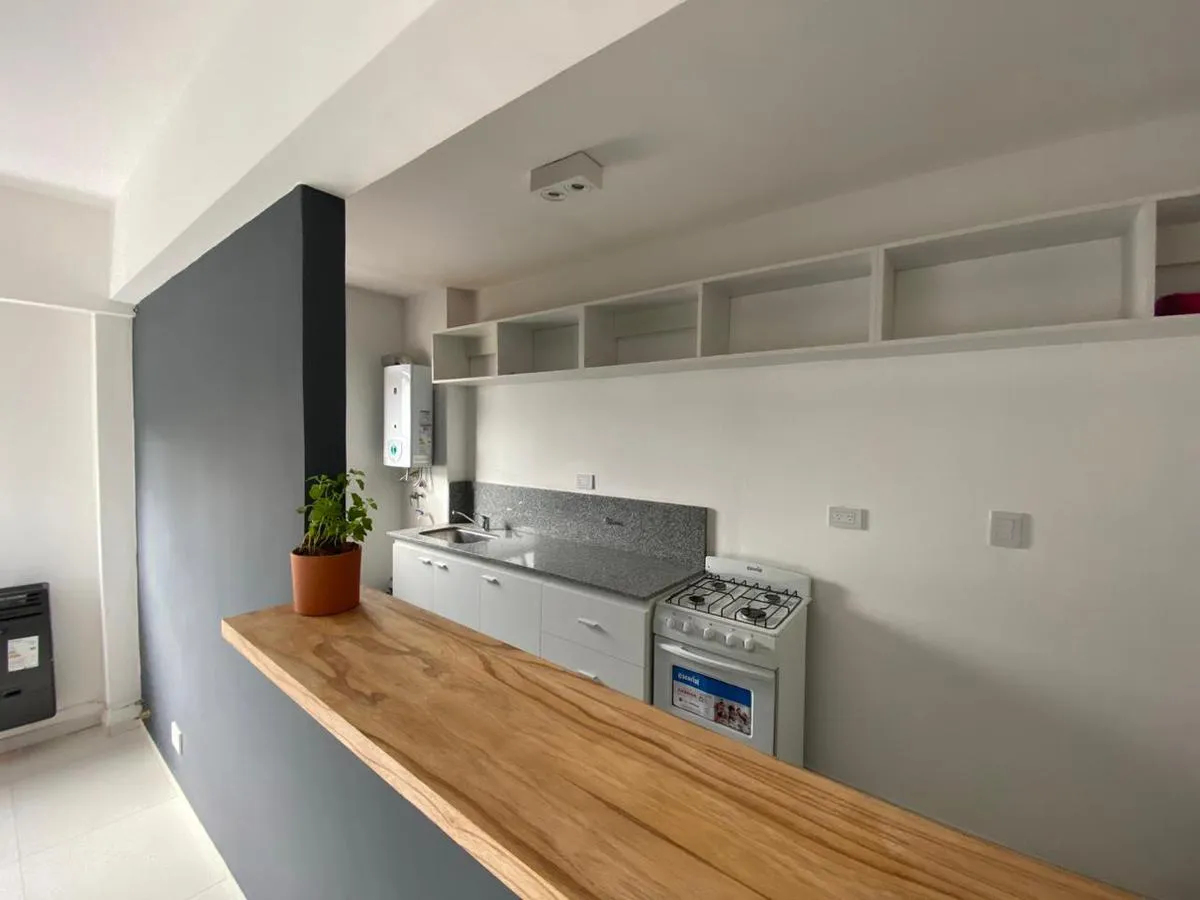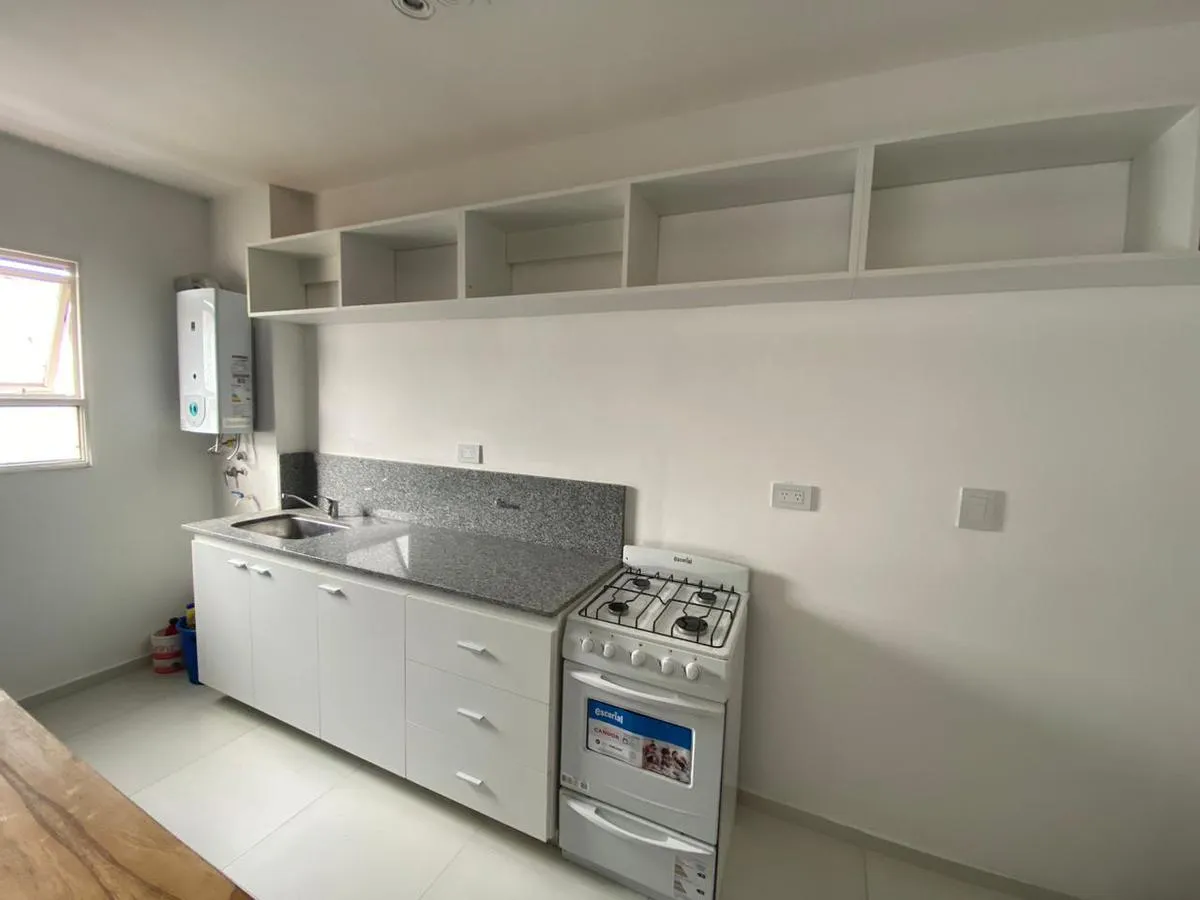 Departamento de 2 habitaciones con living comedor y baño completo. Cuenta con calefacción por tiro balanceado, cocina separada con barra, bajo mesada y alacena, y pisos de porcelanato. Las 2 habitaciones tienen placard y pisos flotantes.