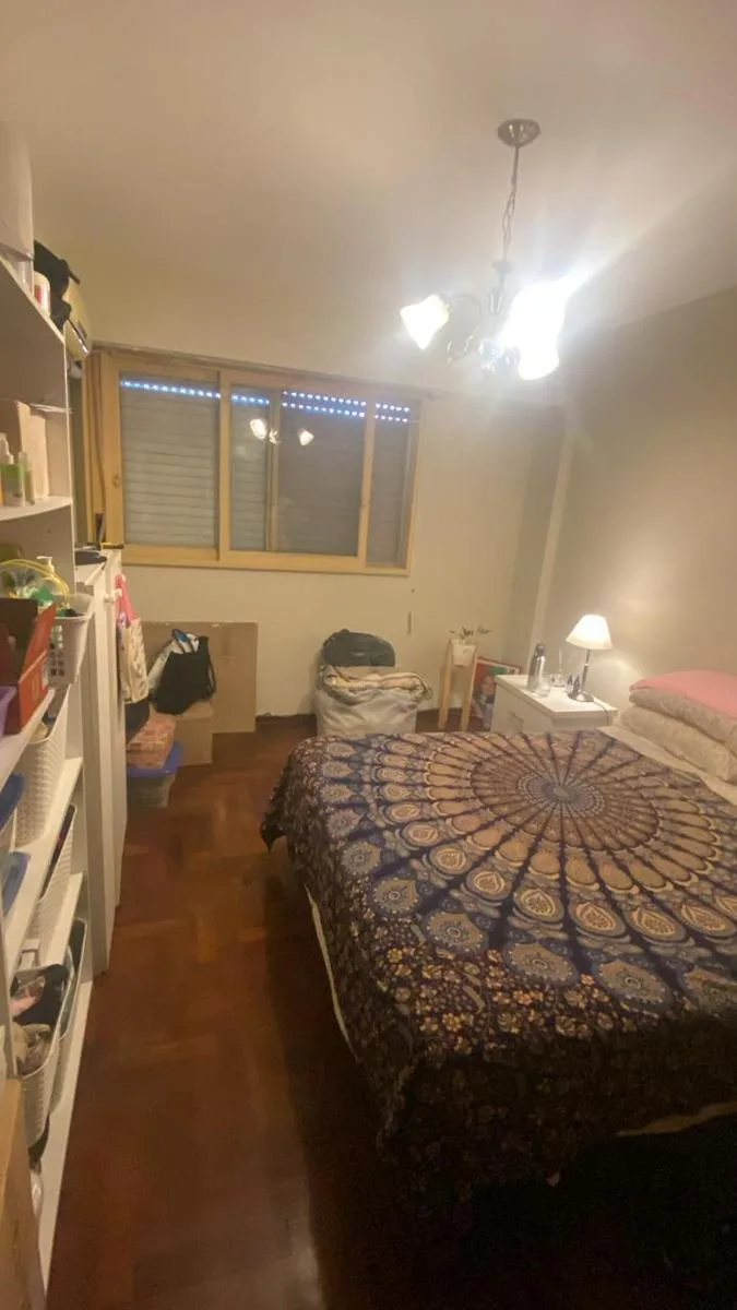 Departamento de 2 dormitorios en alquiler sobre calle 44, entre 11 y 12, en el 9° piso. Cuenta con living comedor con aire acondicionado, luminaria y estufa, cocina separada con mueble bajo mesada, cocina a gas y termotanque, y lavadero con pileta y preinstalación para lavarropa. El balcón al frente tiene red y persiana con mosquitero, y hay un dormitorio al frente con aire acondicionado, piso de madera y placar empotrado, además de persiana y mosquitero; el otro dormitorio dispone de ventilador