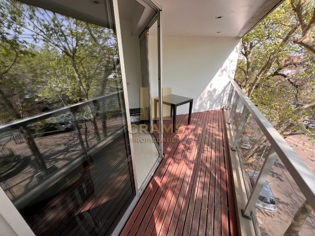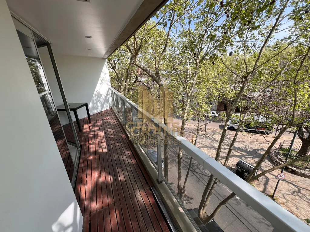 Departamento de 2 dormitorios al frente en Diagonal 77 entre 8 y 43, con cochera cubierta. Cuenta con living comedor con pisos de porcelanato, cocina semi integrada con doble mesada granítica y muebles bajo mesada, y 1 toilette más 1 baño completo con antebaño y bañera. Incluye balcón aterrazado con deck de madera, aberturas con doble vidrio (DVH), calefacción por radiadores y aire acondicionado. Contrato por 2 años con aumento trimestral por ICL.