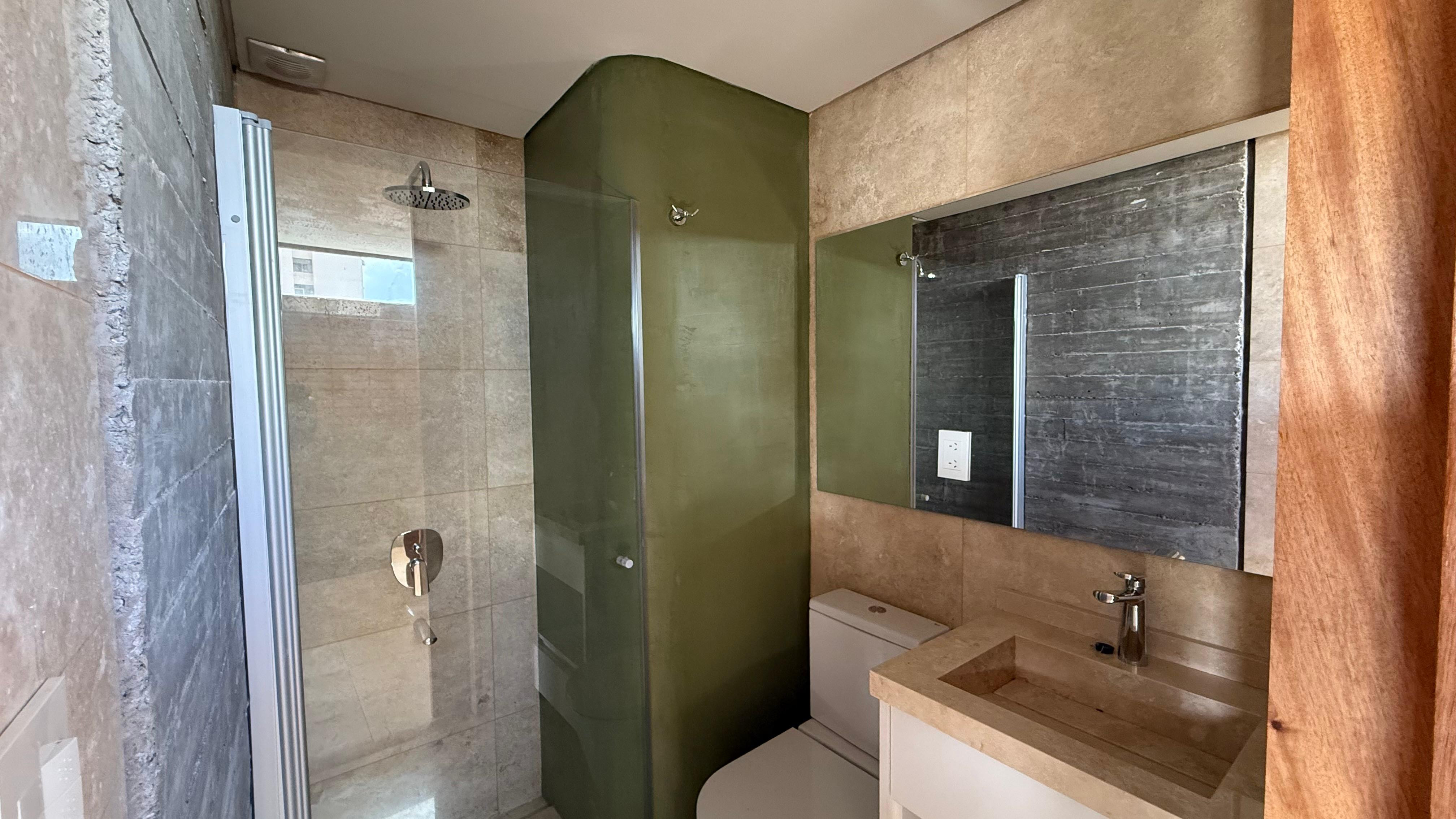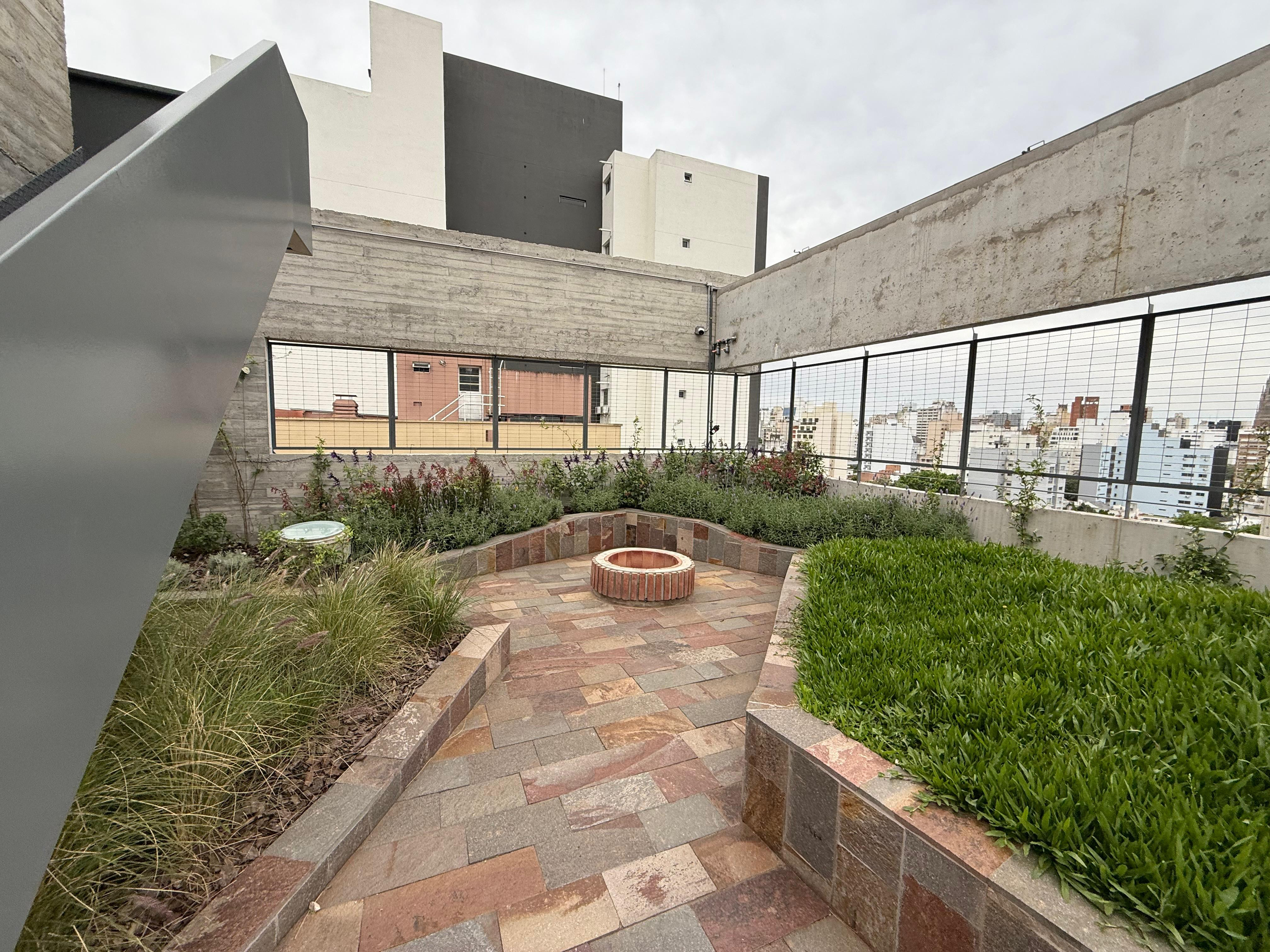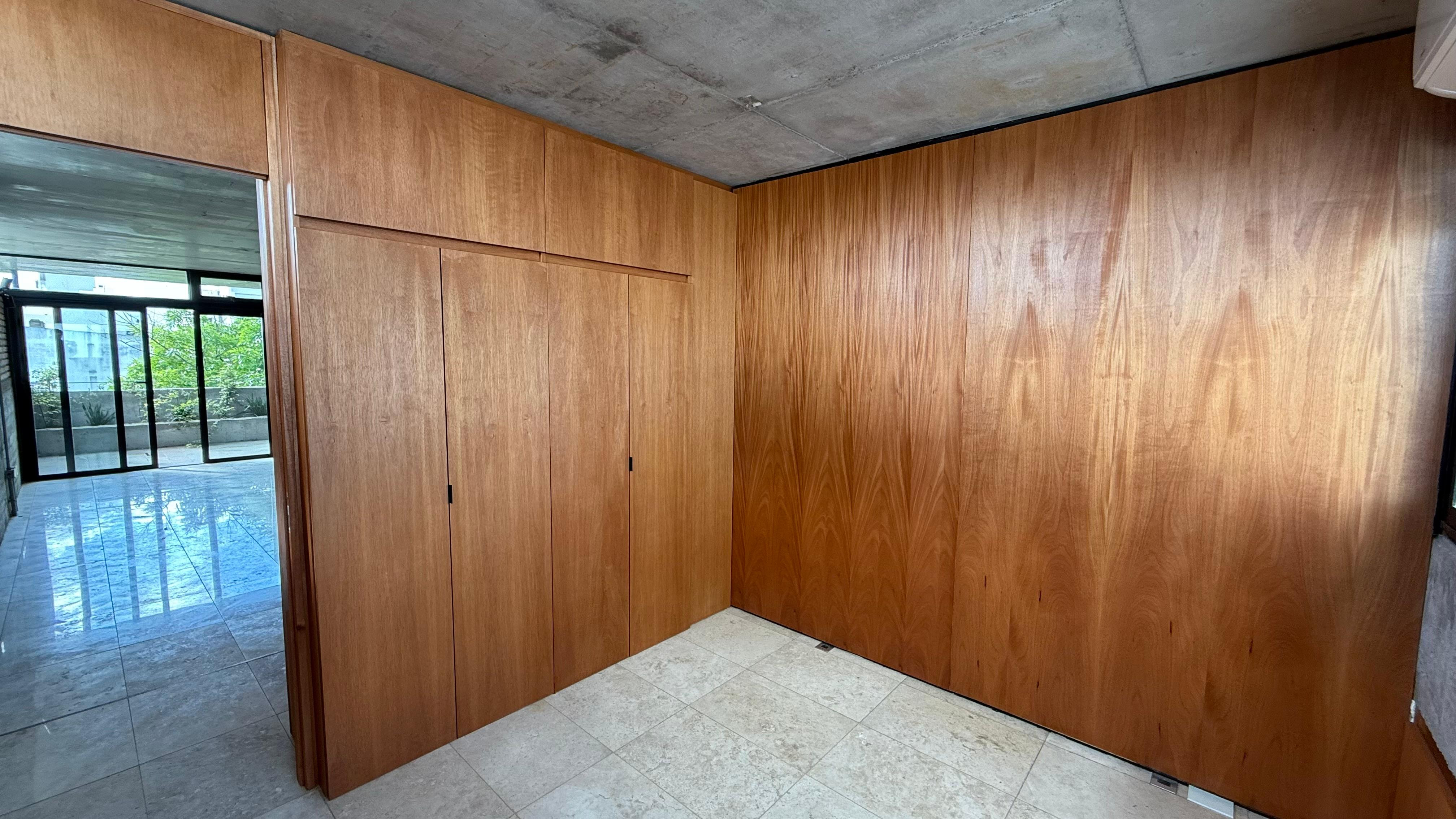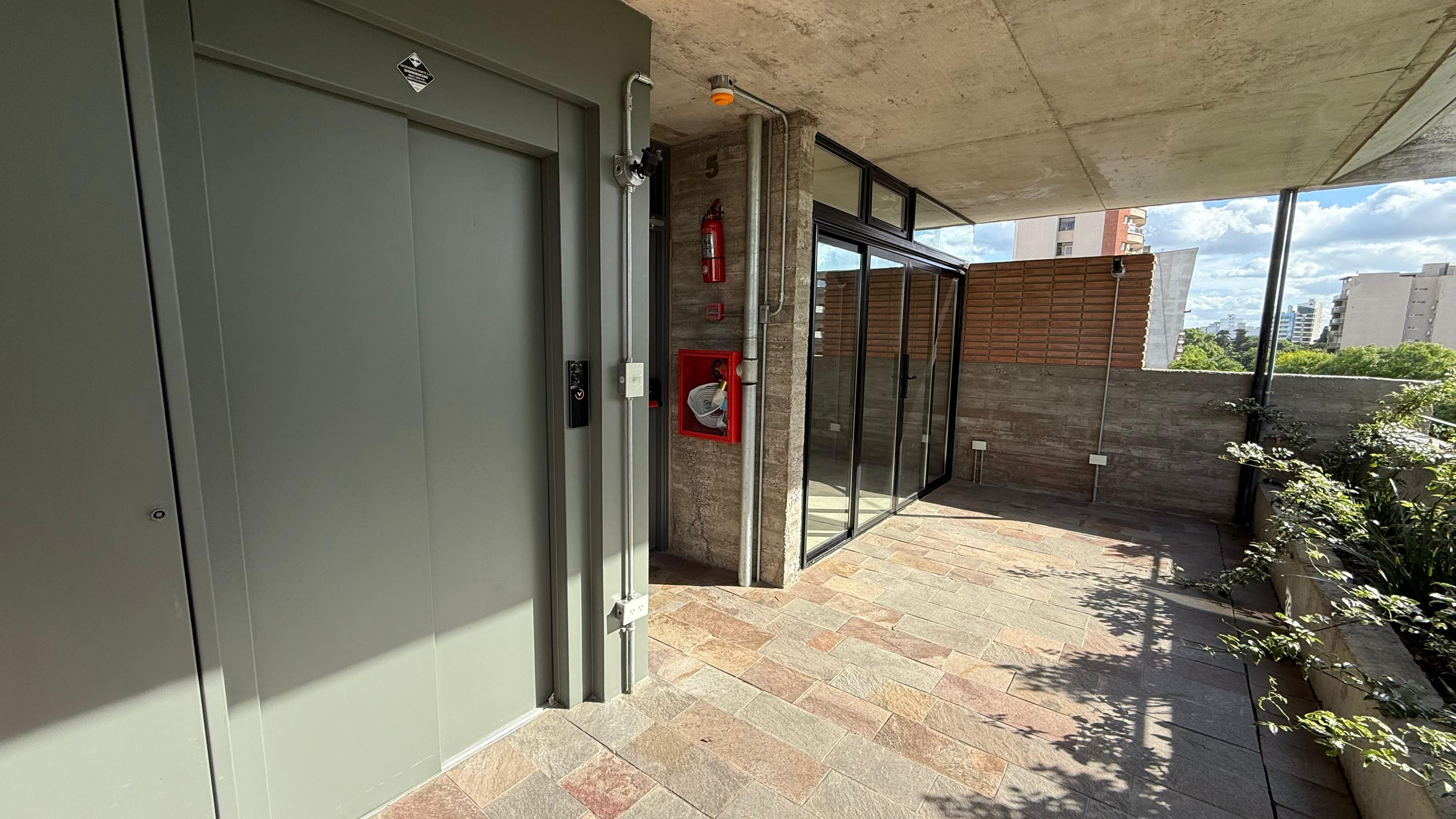 Departamento de 2 dormitorios con 115 m² totales, 89 m² cubiertos y 26 m² semicubiertos, al frente y contrafrente, con balcón aterrazado y patio cubierto. Se entrega con 4 equipos de aire acondicionado. Cocina con horno eléctrico empotrado, anafe vitrocerámico y campana extractora; instalación para lavarropas con puerta corrediza. Edificio con estética industrial, doble vidriado hermético, pisos de travertino y orientación noroeste; agua caliente por termotanque eléctrico por unidad.