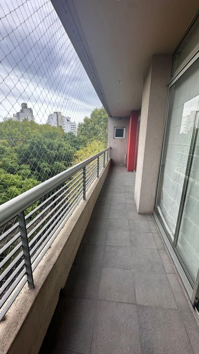 Departamento en alquiler de 2 dormitorios en el 4° piso, al frente, con cochera cubierta. Dispone de living, comedor, cocina separada con muebles bajo y sobre mesada, y lavadero, además de 2 balcones pasantes. En el sector privado cuenta con 2 dormitorios con placares empotrados: el principal en suite y un baño completo.