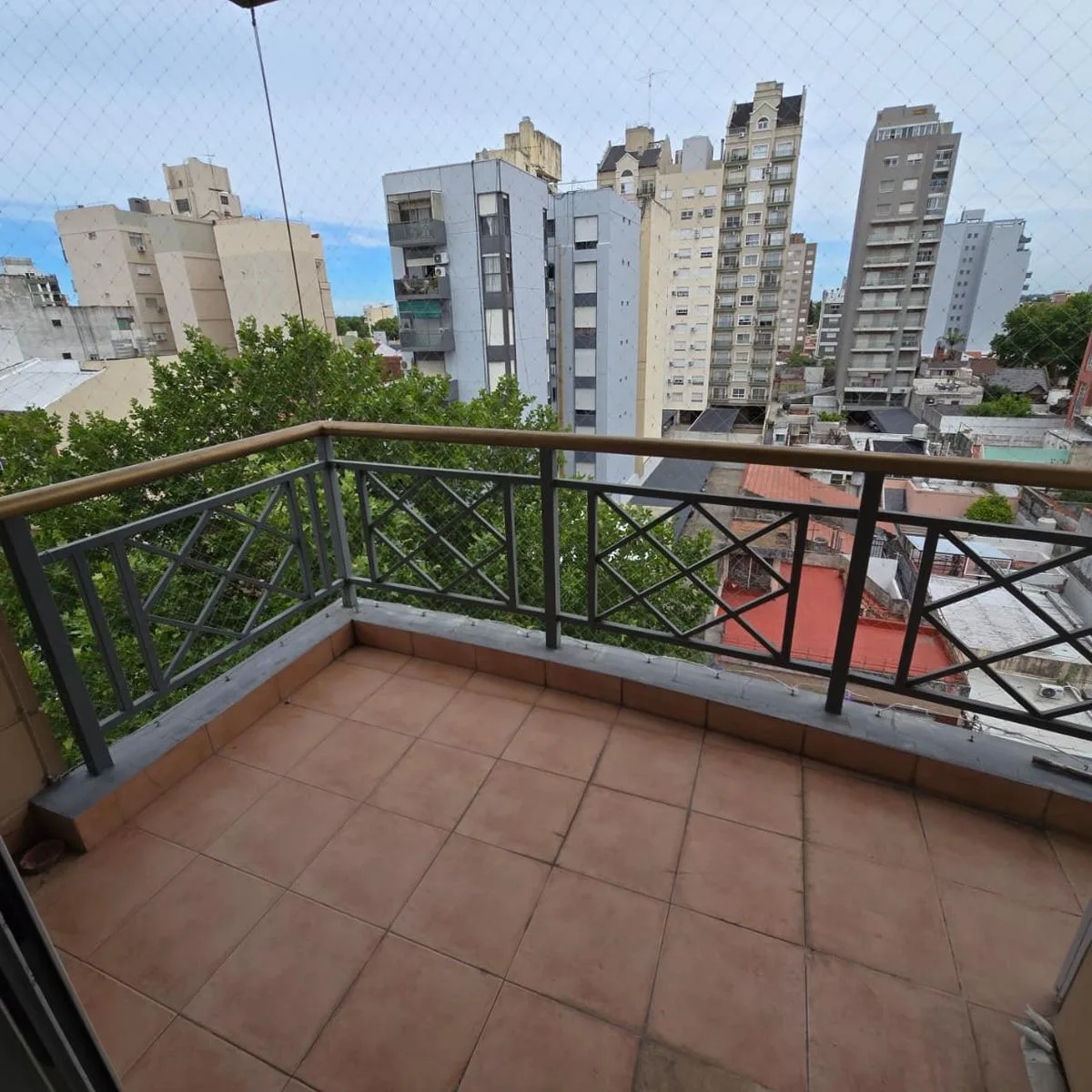 Departamento de 3 ambientes al frente en el 6° piso, con balcón y cochera fija. Cuenta con living comedor, toilette de recepción, cocina con lavadero independiente y 2 dormitorios con placard; calefacción por radiadores y aire acondicionado frío/calor en living y dormitorio principal. El living comedor tiene salida al balcón, y la cocina dispone de cocina a gas, muebles sobre y bajo mesada, ventana al pulmón y caldera individual en el lavadero.