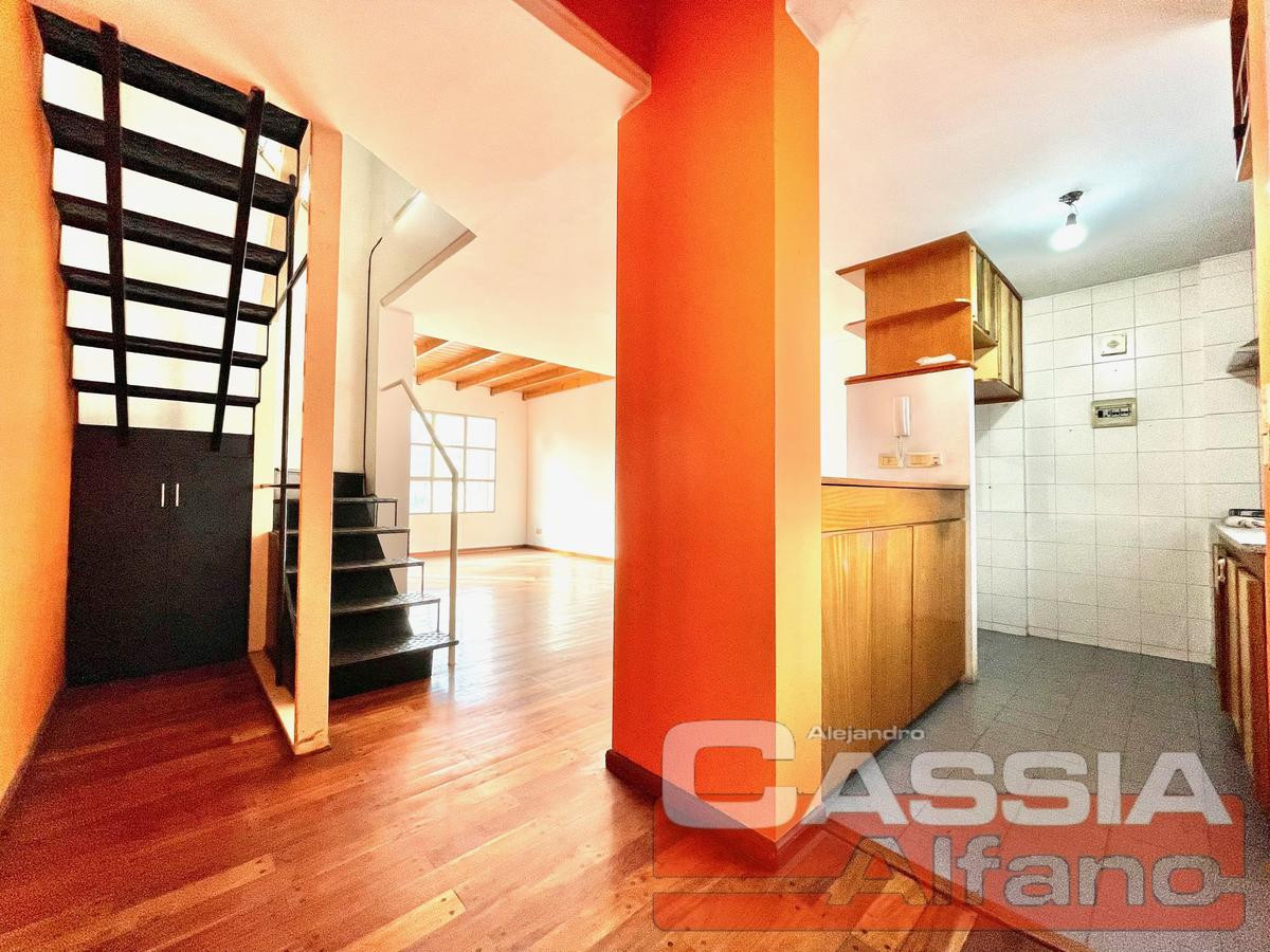 Departamento dúplex de 2 1/2 ambientes al frente, en 2do piso con ascensor, con cochera individual incluida en el valor de alquiler. Cuenta con living-comedor con pisos tarugados, cocina semi integrada con pasaplatos, horno y calefón a gas natural “nuevo a estrenar”, lavadero integrado y balcón con vista al frente. En la planta alta tiene hall distribuidor con placard y vestidor, además de dormitorio principal con placard empotrado y piso flotante, con calefacción por calefón a gas natural.