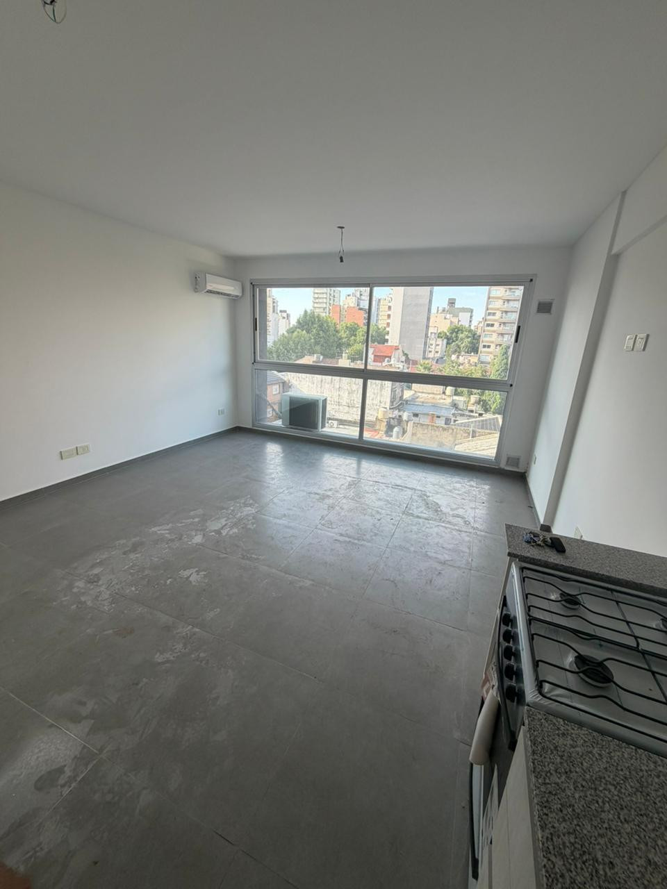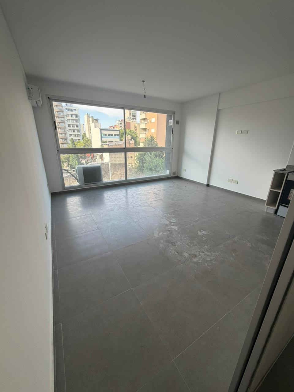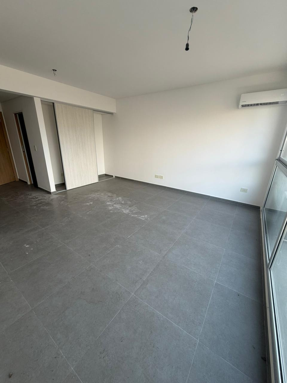 Departamento monoambiente a estrenar de 33 m² totales, en 3er piso al contrafrente. Cuenta con ambiente con ventanal de pared a pared, pisos de porcelanato, placard empotrado y aberturas DVH. Incluye aire acondicionado frío/calor, cocina integrada con artefacto a gas natural Longvie, espacio para heladera y para lavarropas, y baño con vanitory y bañadera. El edificio dispone de cochera cubierta, SUM y gimnasio. El alquiler requiere 1 mes de adelanto, sellados, honorarios, garantía (propietaria o