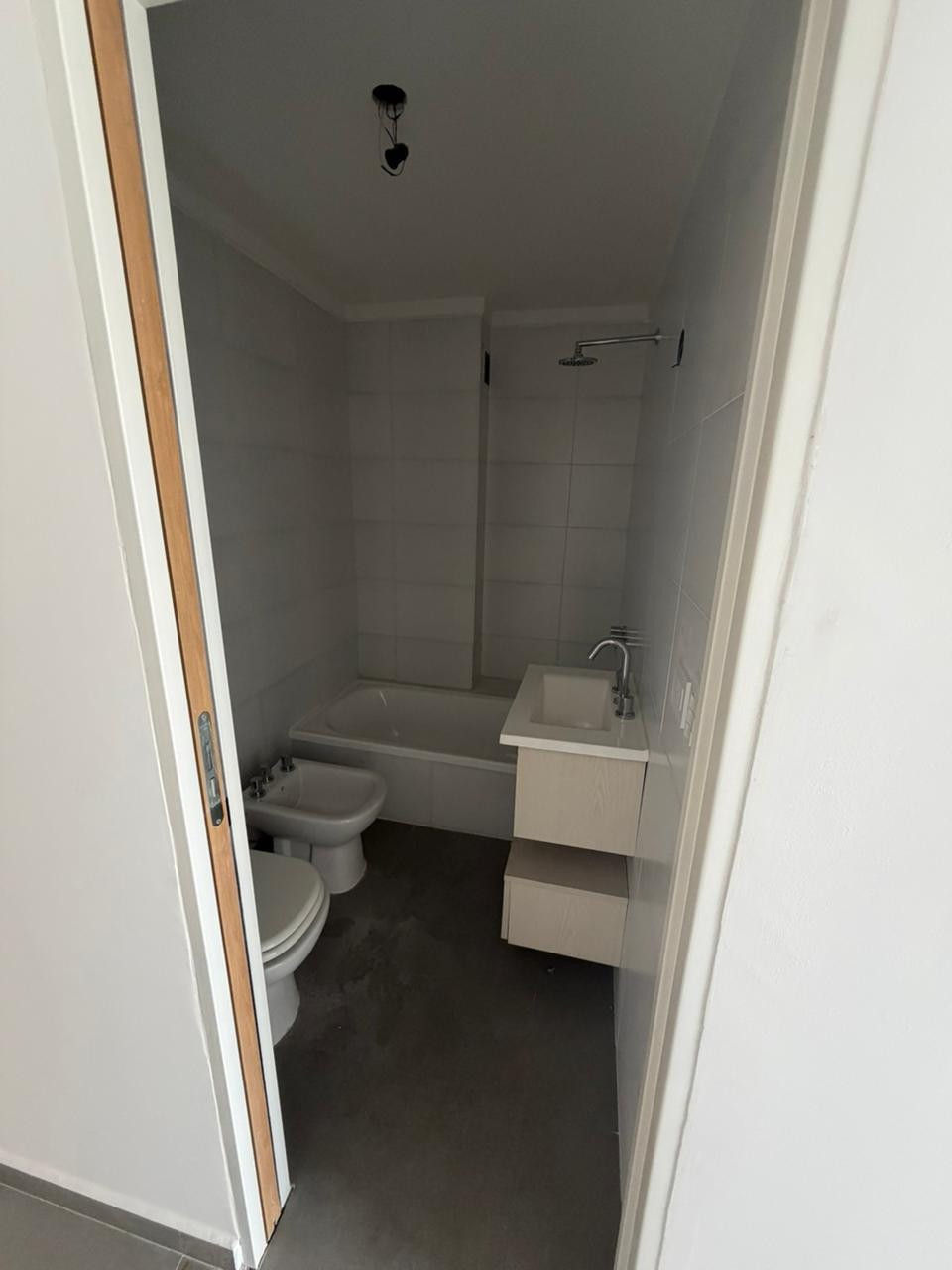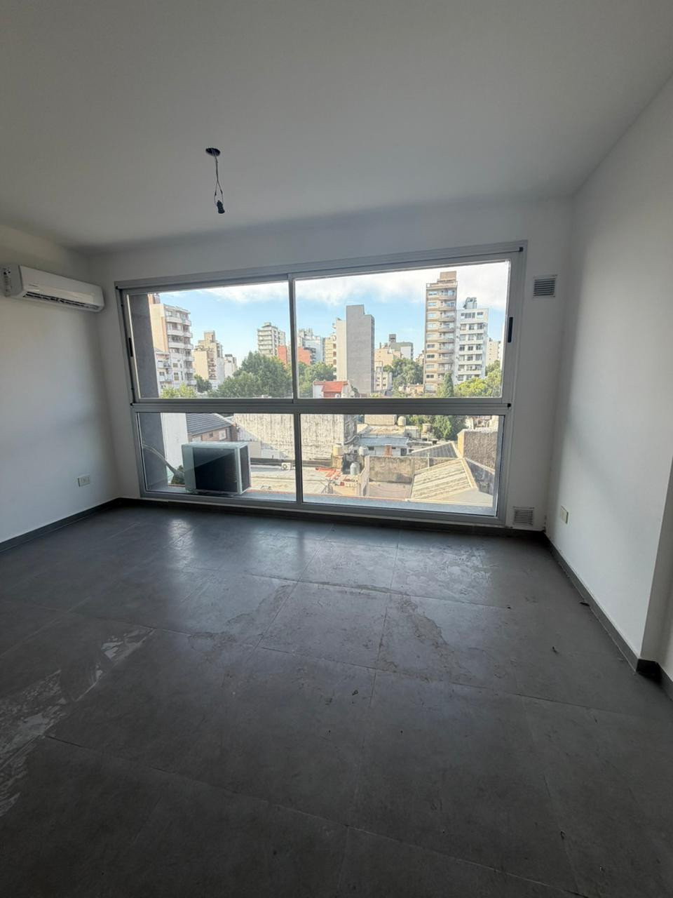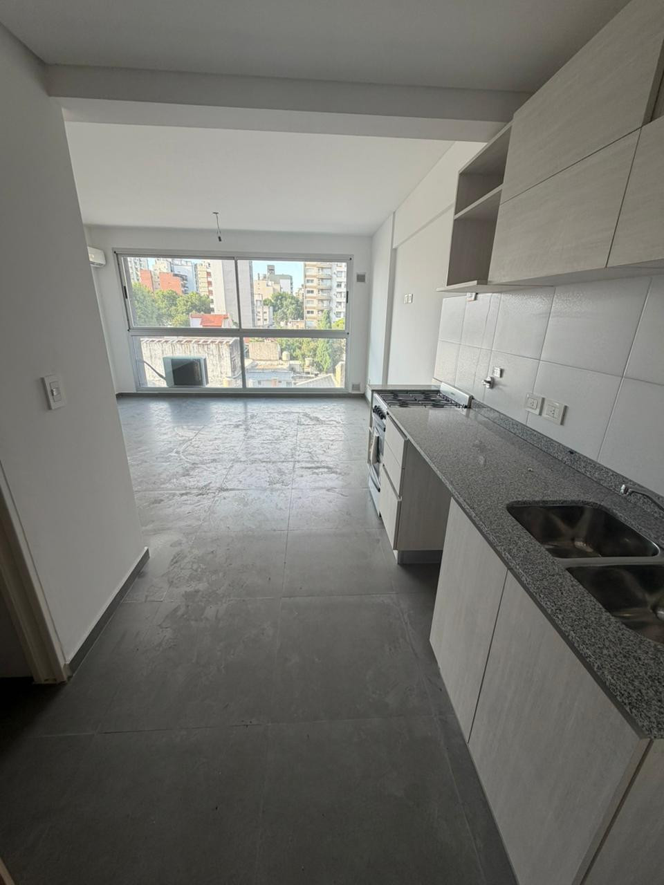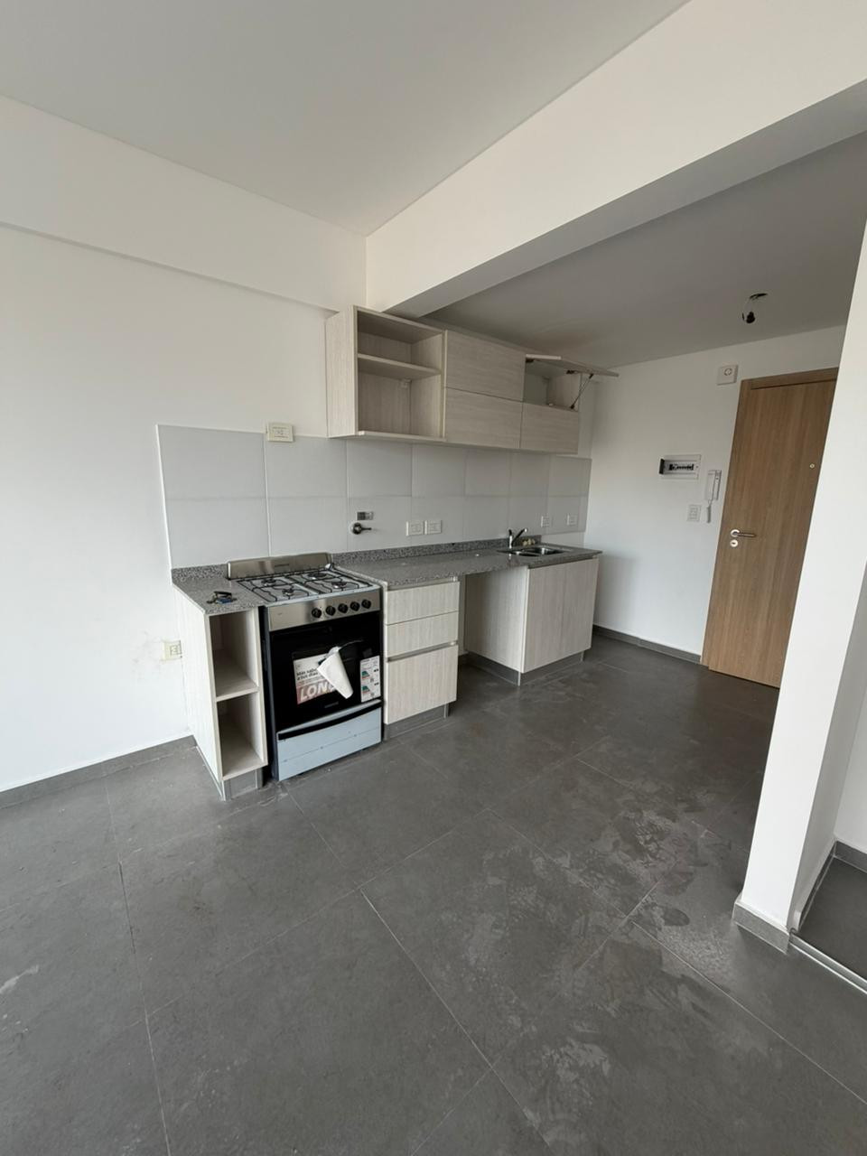 Departamento monoambiente a estrenar de 33 m² totales, en 3er piso al contrafrente. Cuenta con ambiente con ventanal de pared a pared, pisos de porcelanato, placard empotrado y aberturas DVH. Incluye aire acondicionado frío/calor, cocina integrada con artefacto a gas natural Longvie, espacio para heladera y para lavarropas, y baño con vanitory y bañadera. El edificio dispone de cochera cubierta, SUM y gimnasio. El alquiler requiere 1 mes de adelanto, sellados, honorarios, garantía (propietaria o