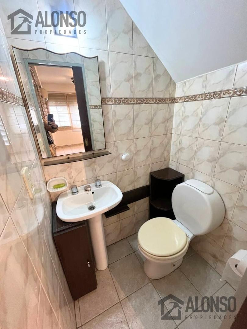 PH de 3 ambientes en alquiler en Lanús Oeste, desarrollado en 3 plantas con entrada independiente. Tiene 2 dormitorios, living comedor, cocina independiente y toilette en planta baja. En primer piso cuenta con dormitorio principal, lavadero y baño completo; en segundo piso, segundo dormitorio con escritorio o espacio de trabajo. Incluye jardín delantero y cochera cubierta, y no tiene expensas.