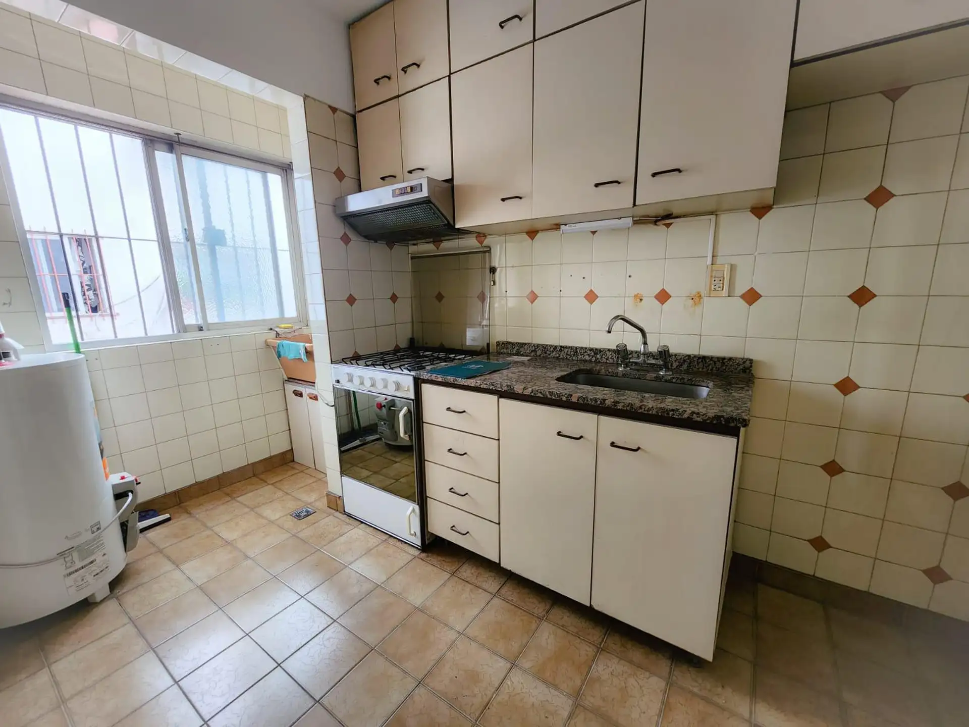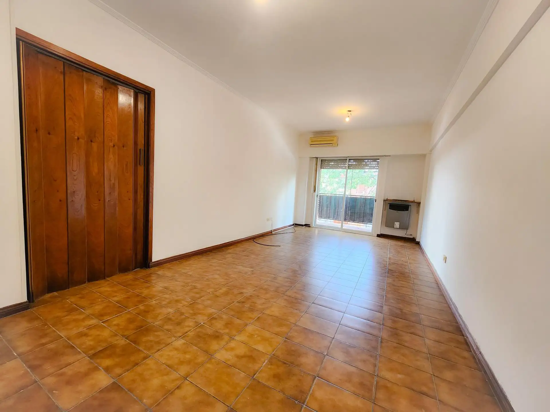 Departamento de 3 ambientes en Liniers. Cuenta con balcón que recorre el living y el dormitorio, 2 dormitorios con placares de piso a techo y baño completo. La cocina tiene muebles altos y bajos y cuenta con lavadero; el living tiene aire acondicionado y estufa. No se aceptan mascotas.