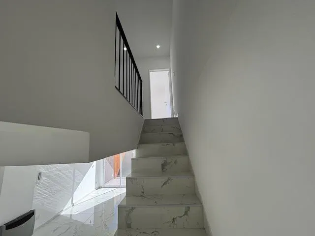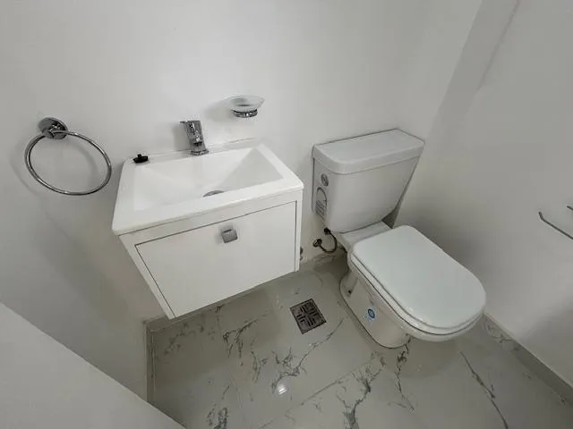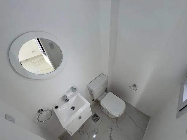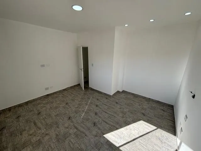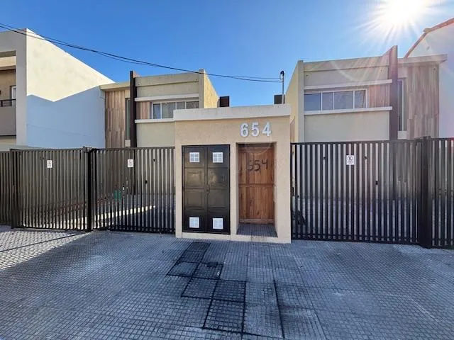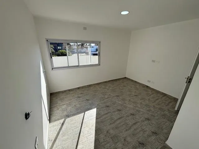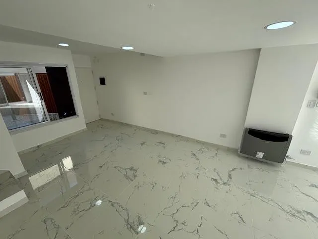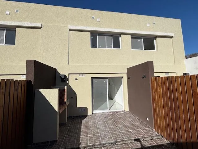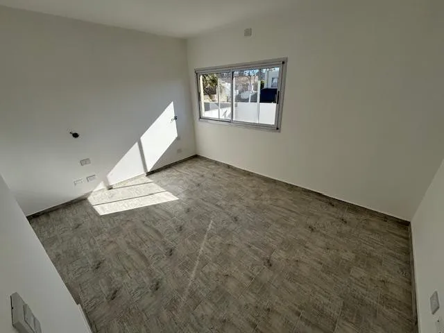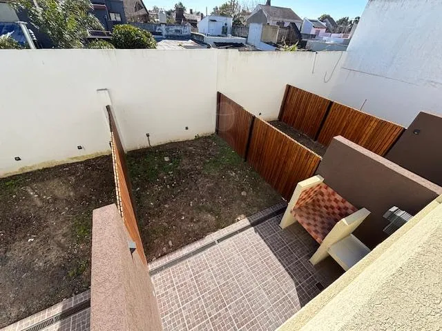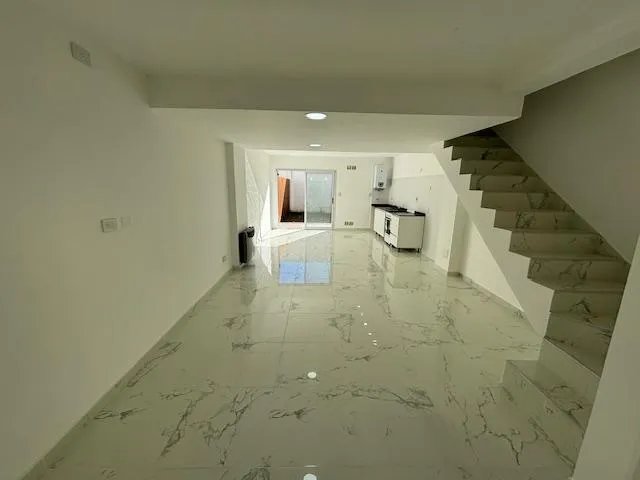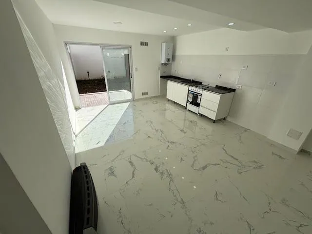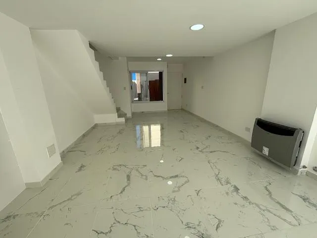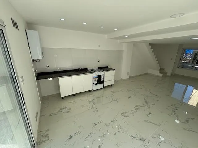 Departamento duplex de 3 ambientes a estrenar, con cochera individual. Living-comedor con pisos de porcelanato simil Calacatta y aberturas de aluminio color blanco. Incluye estufa TB instalada, iluminación con plafones LED, cocina con bajo mesada y lavarropas incorporado, toilette de recepción y sanitarios línea Roca. Tiene salida a patio con división de madera, con espacio para parrilla, 2 dormitorios (frente y contrafrente) y baño completo con vanitory colgante Ferrum, además de griferías y ac