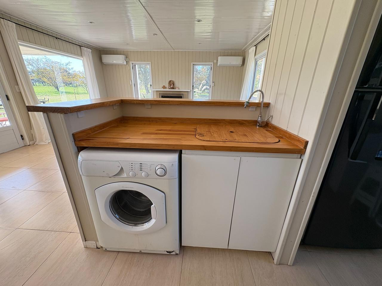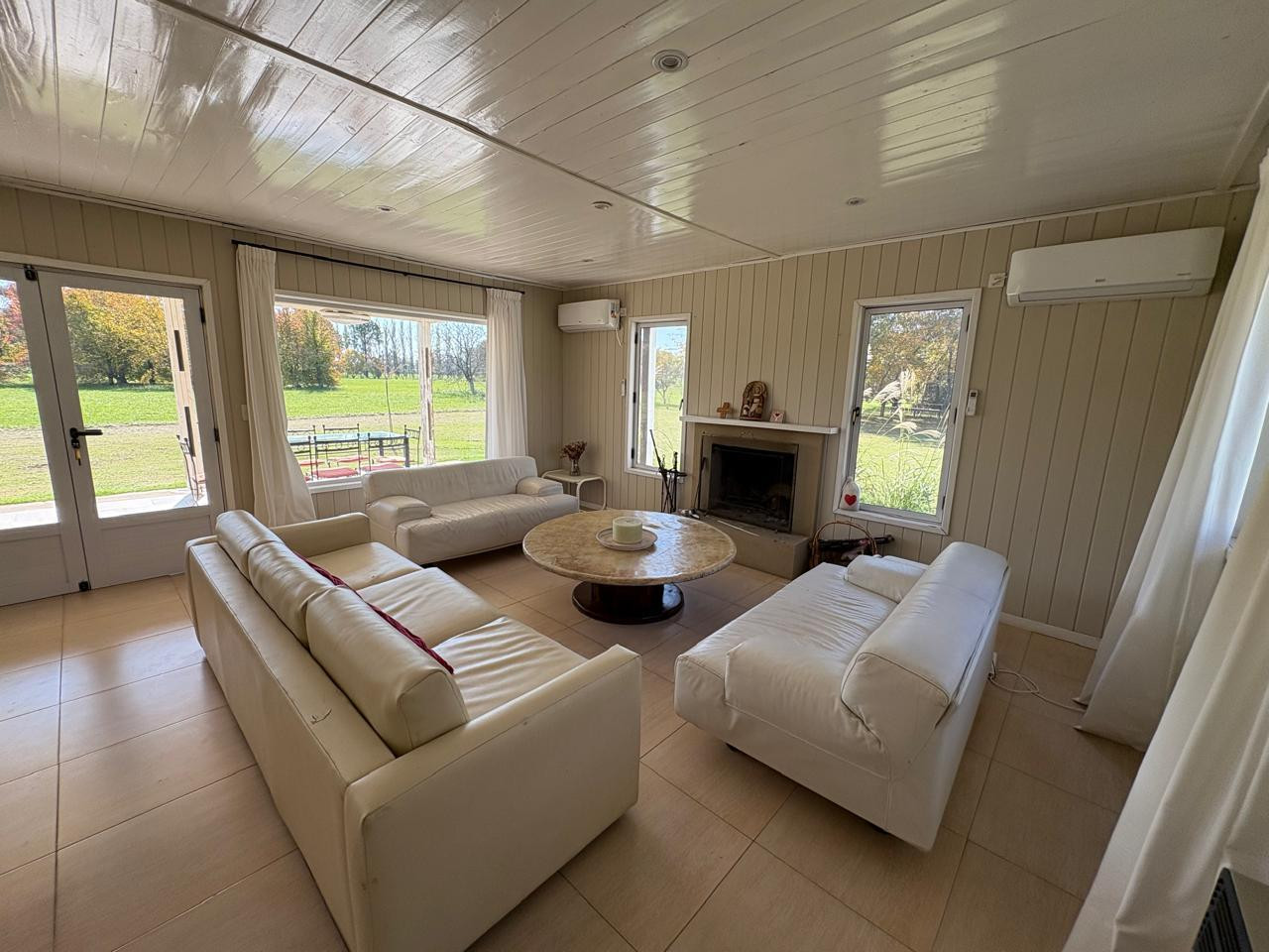 Casa em terreno de 3 hectares no bairro La Oración de Luján, com sala de estar e jantar, lareira e cozinha integrada. Possui área de lavanderia, 2 dormitórios, 2 banheiros e grande galeria, além de fogonero e jogos para crianças.