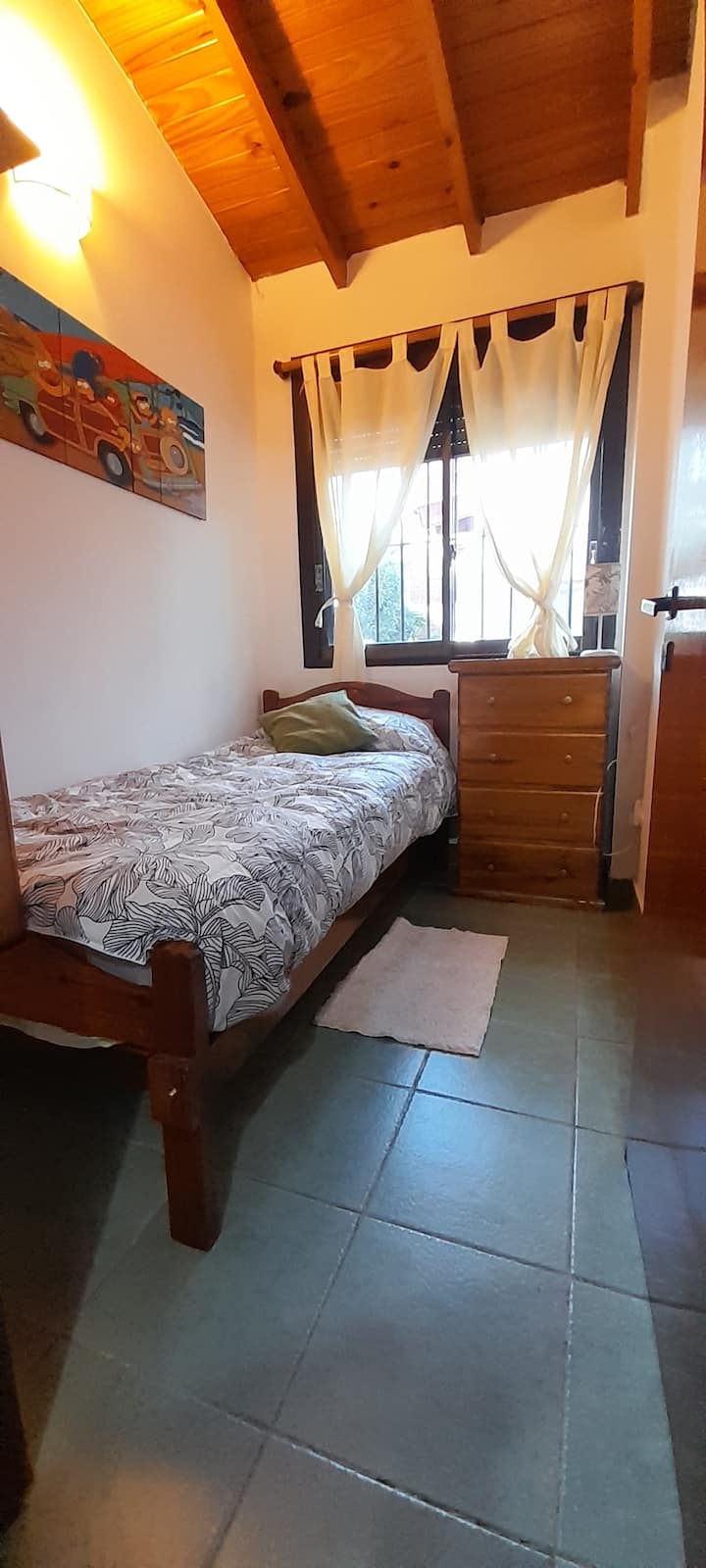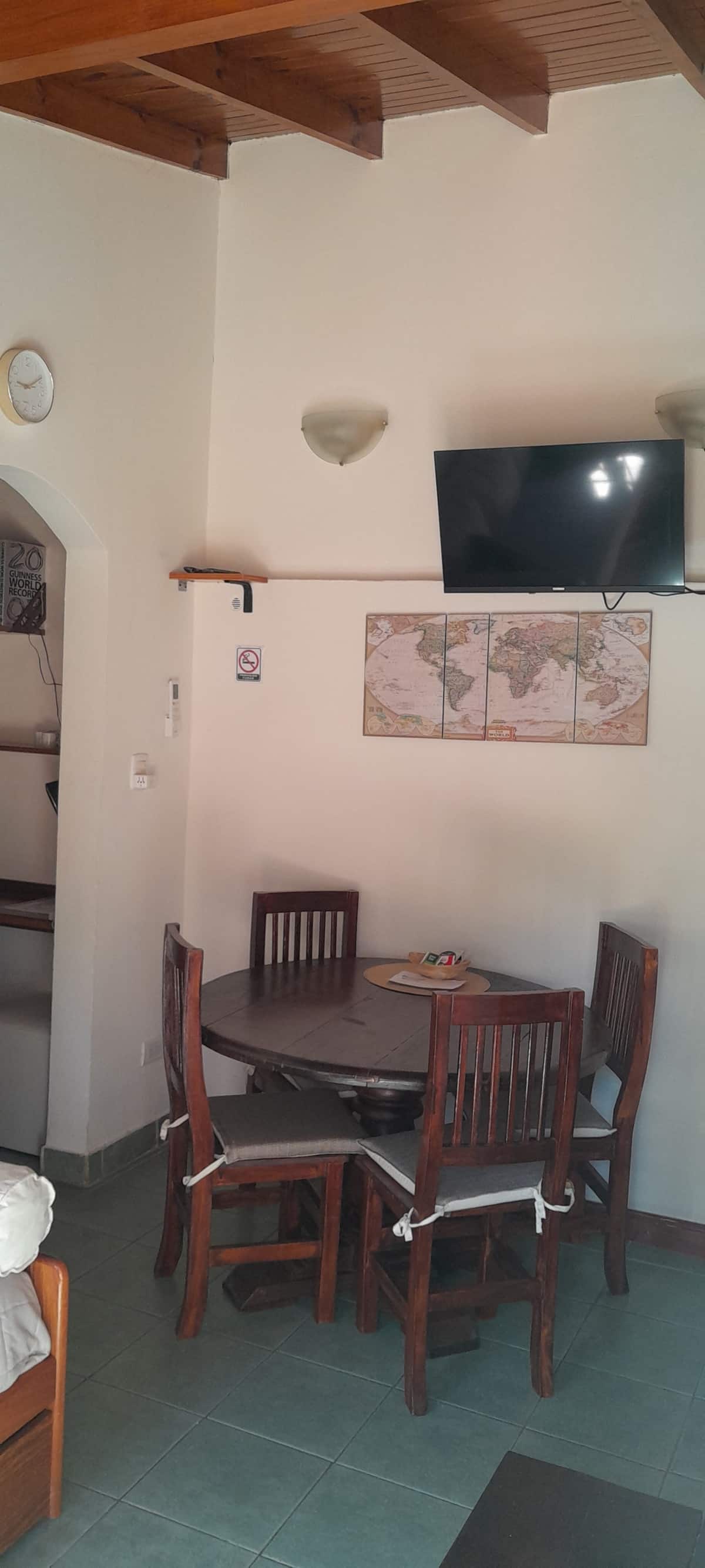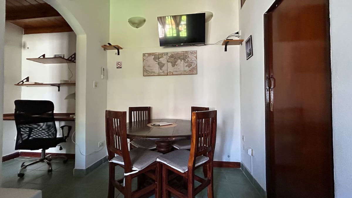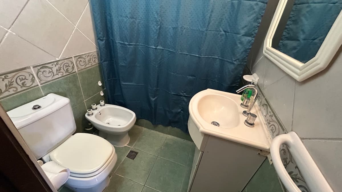 Casa tipo PH en el fondo del lote, con sol de mañana. Cuenta con jardín, parrilla y un lavadero con ingreso independiente dentro del lote, con acceso compartido desde la calle. En planta principal hay cocina abierta con living-comedor, mesa, sofá cama, TV y aire acondicionado, además de un dormitorio con cama y otro con cama queen y placard amplio; el baño completo tiene bañera y bidet. El lavadero incluye lavarropas y tender. Hay estacionamiento en la calle o cochera dentro del predio. Está a 2