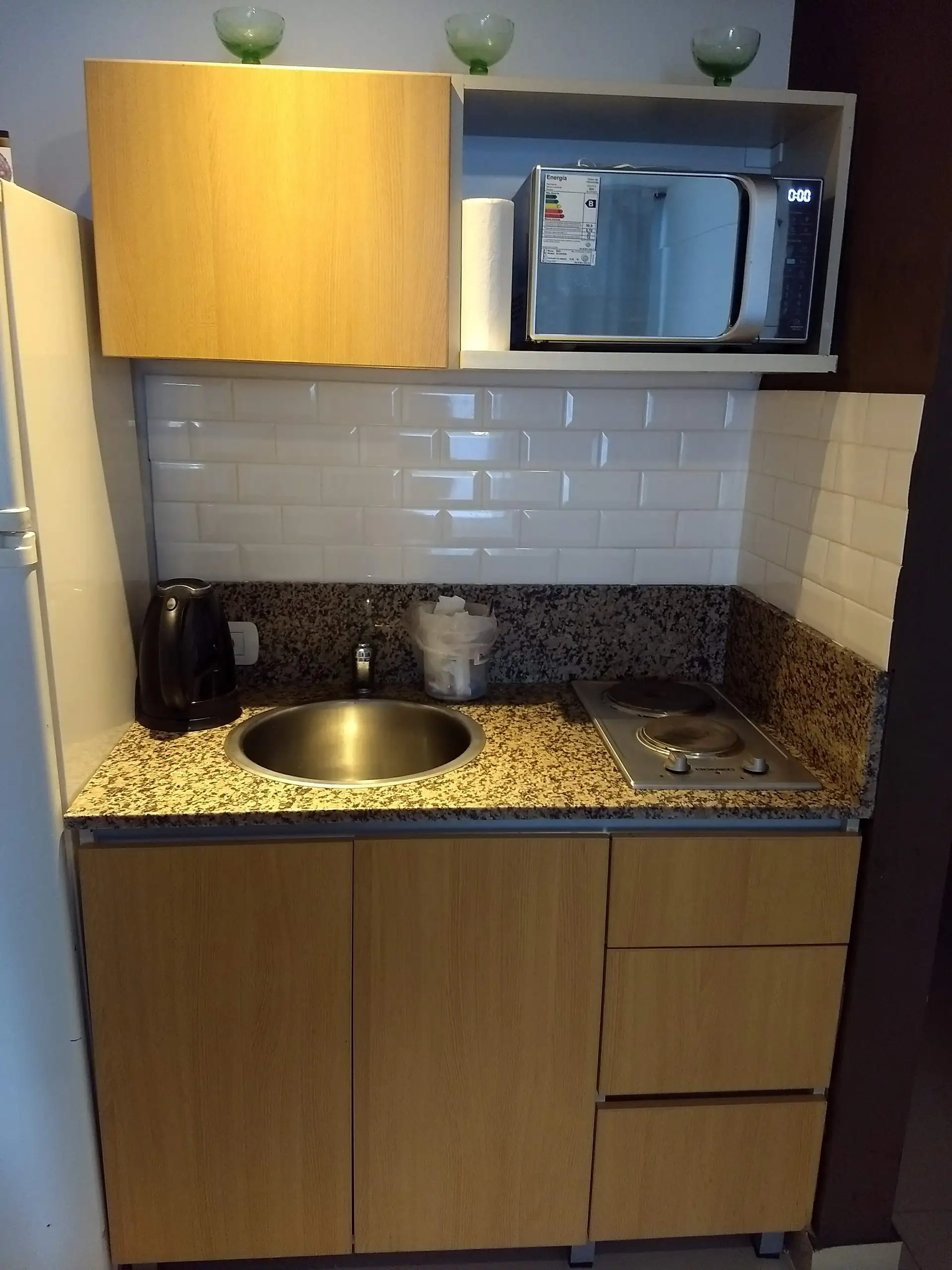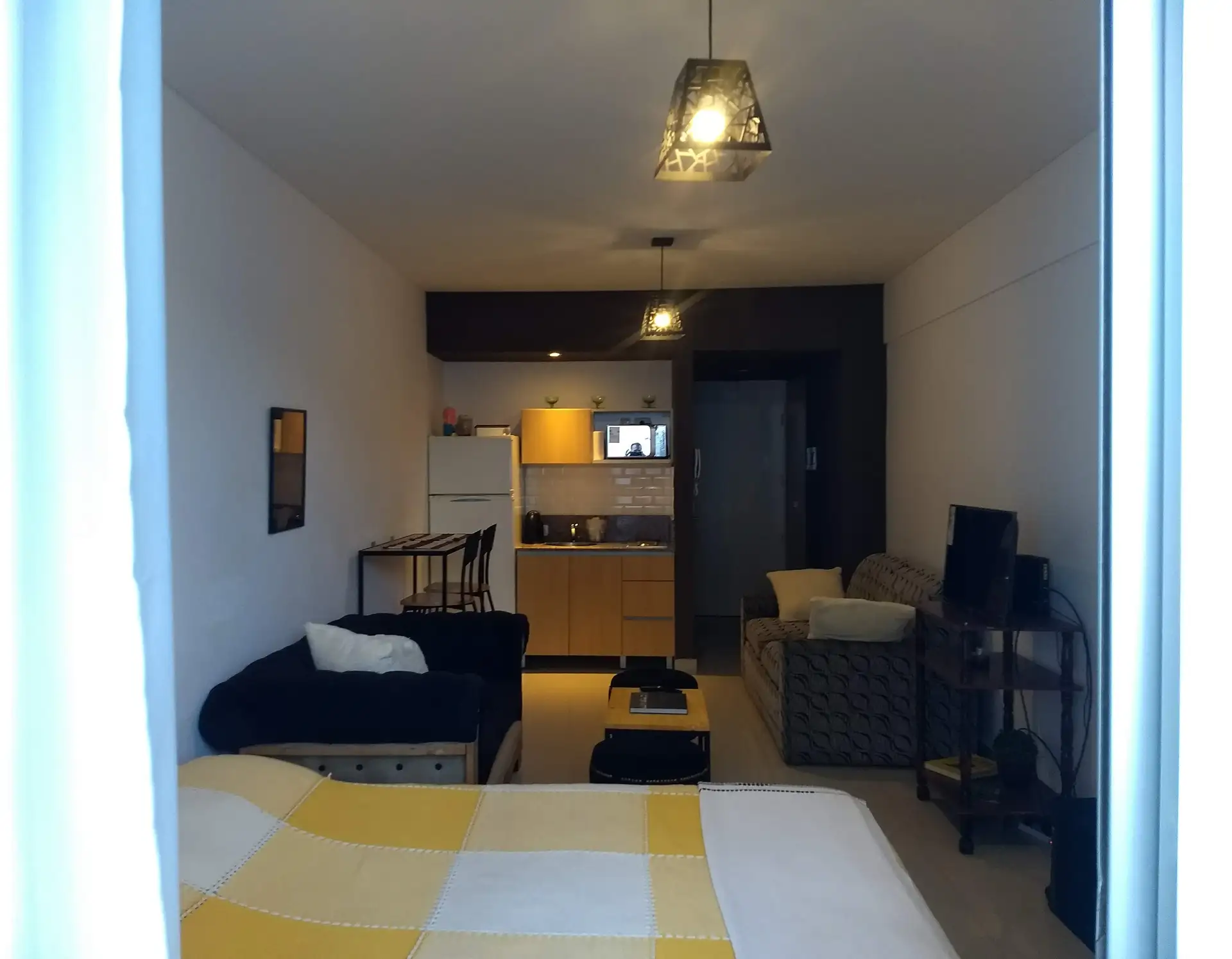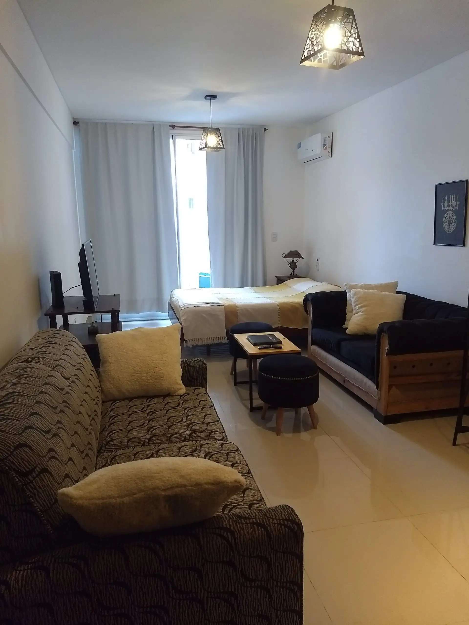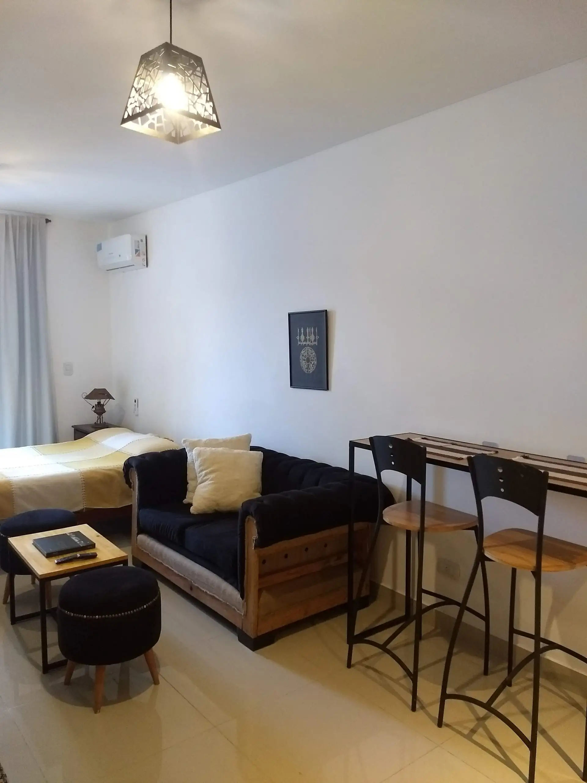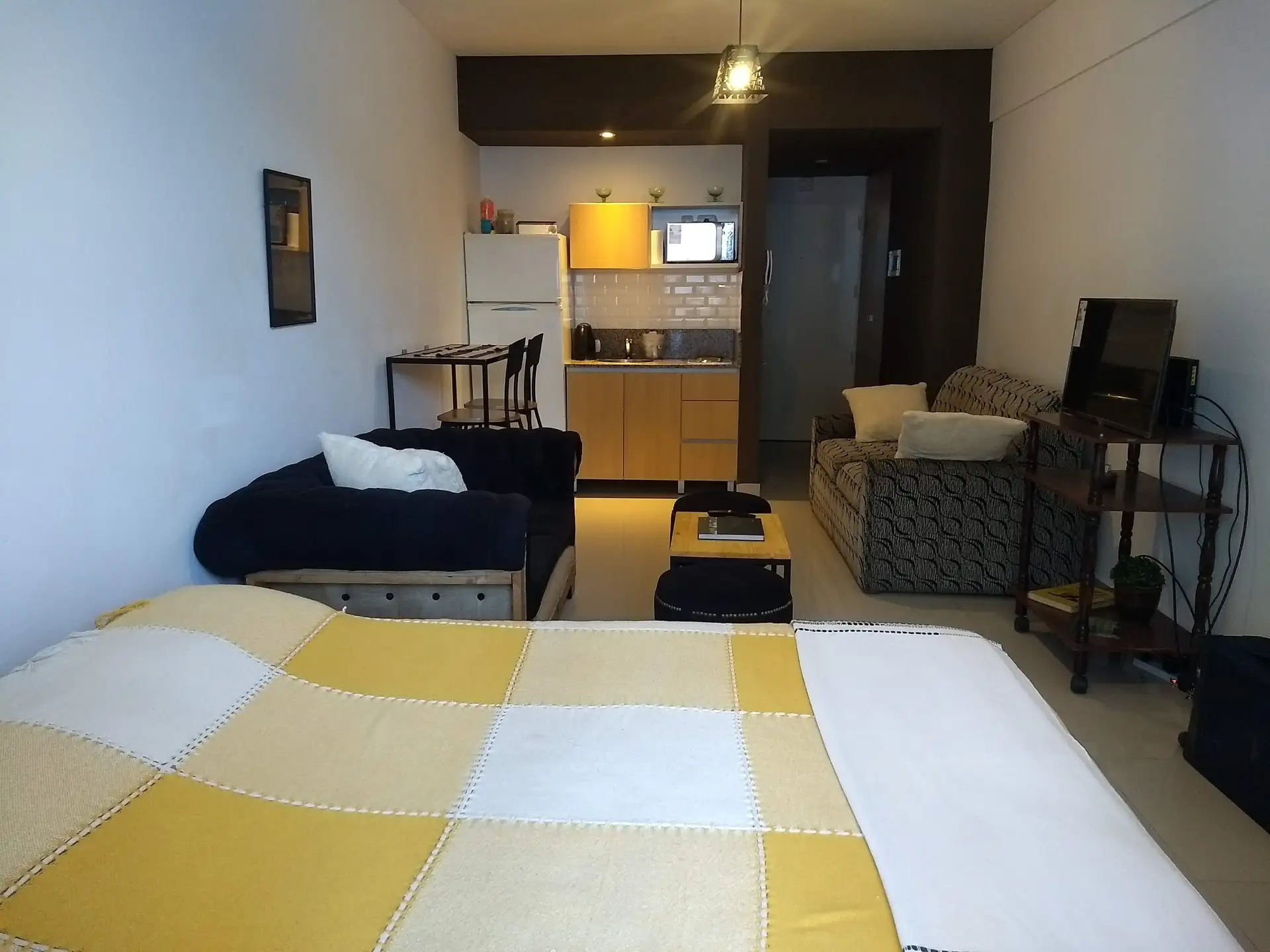 Estudio ubicado en Monserrat, en una zona cercana a San Telmo. Incluye cama de 2 plazas, barra para 2 comensales, sillón doble con ropa de cama, placard y TV. Cuenta con WiFi, aire acondicionado frío-calor, anafe eléctrico, heladera con freezer, pava eléctrica, microondas y horno eléctrico. El precio incluye todos los servicios, impuestos, Internet y expensas.
