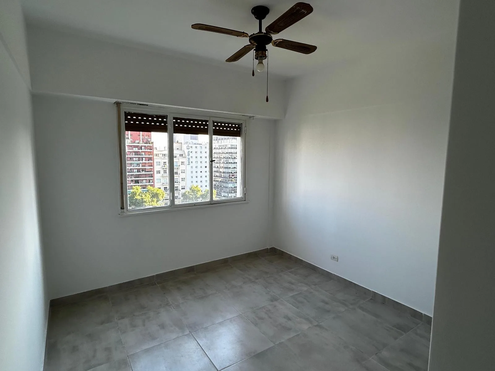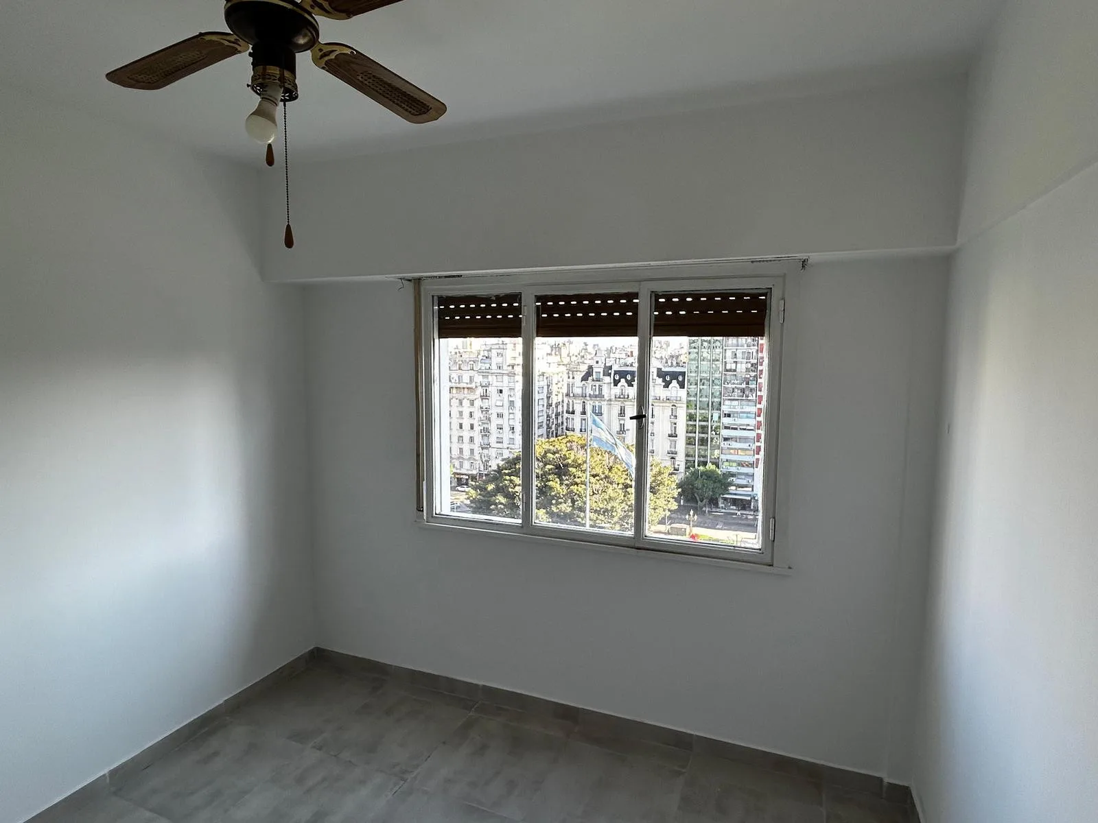 Departamento de 3 ambientes al frente, con balcón y vista abierta a Plaza Congreso. Tiene 2 dormitorios, baño completo, cocina y lavadero independiente. Cuenta con calefacción individual a gas y termo individual para agua caliente, y pisos de porcelanato. Las expensas, servicios y ABL quedan a cargo del inquilino, e incluye cochera fija en planta baja.