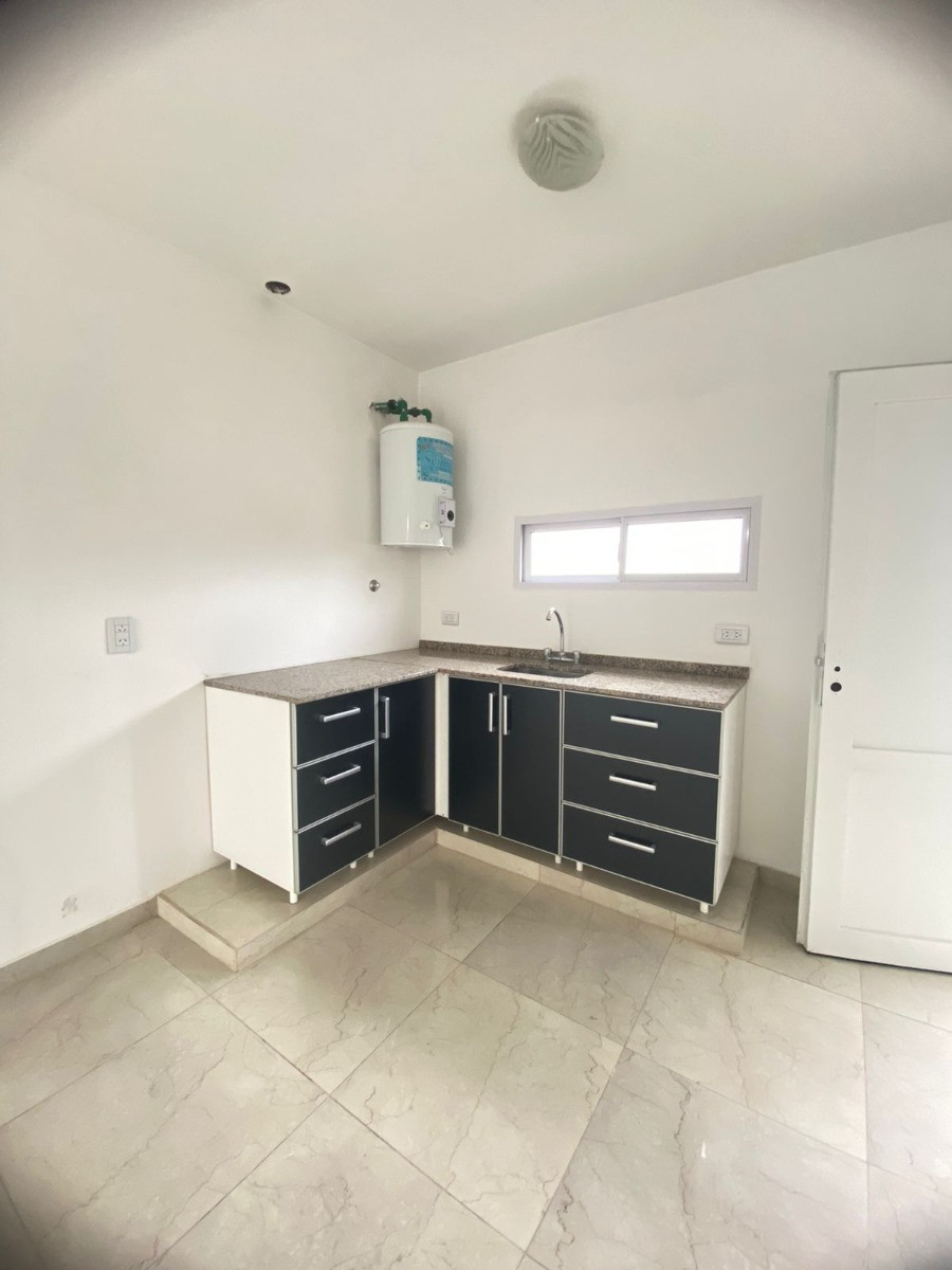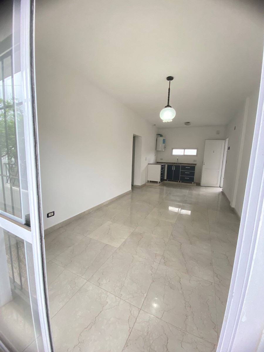 Departamento en P.A. con living comedor y cocina integrada. Cuenta con pisos de porcelanato, amoblamientos de cocina, termotanque, mesada y bacha con grifería; sin artefacto de cocina. Dispone de 2 habitaciones y balcón al frente. No abona expensas. No se aceptan mascotas.