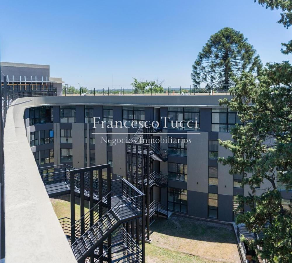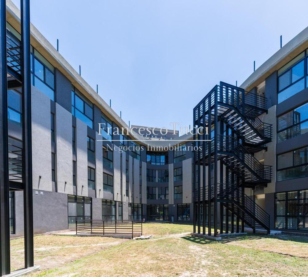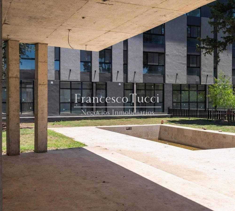 Edificio de 5 niveles con 106 unidades de vivienda, entre 1 y 4 ambientes, distribuidas de 26 a 30 por planta. Incluye subsuelo con 53 cocheras, acceso vehicular con rampa y portón automático, rampa peatonal para personas con discapacidad, bauleras, laundry, micro cine y gimnasio de uso común. En planta baja hay hall con acceso peatonal, sector de co-work y espacio común con piscina exterior; 2 parrilleros techados con baños, fogonero y living exterior sobre quincho, con 30 unidades (27 de 1 amb