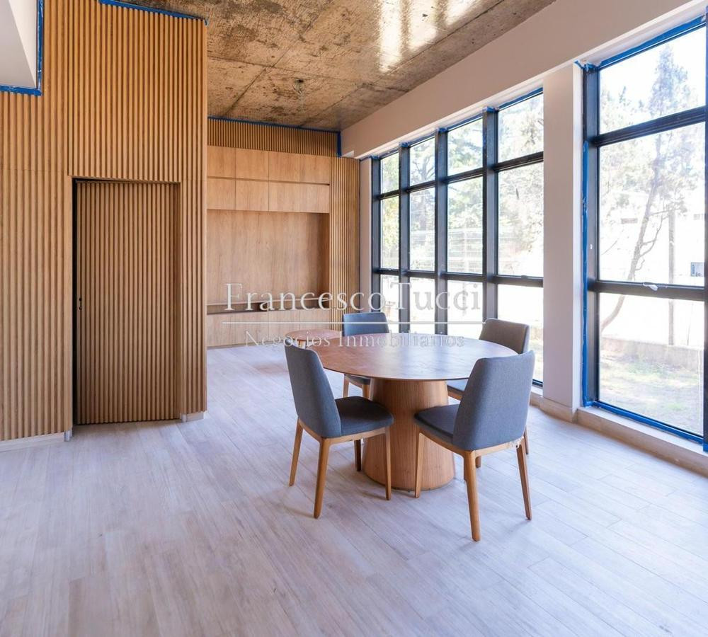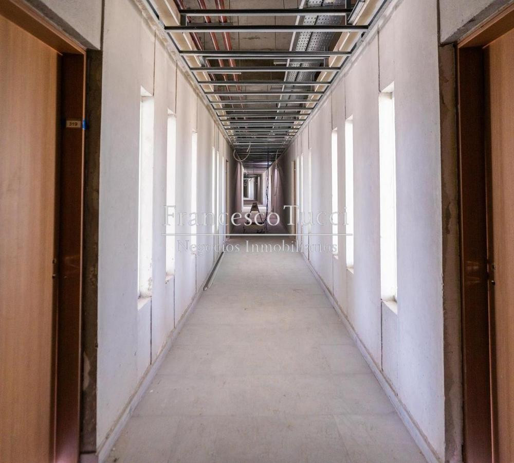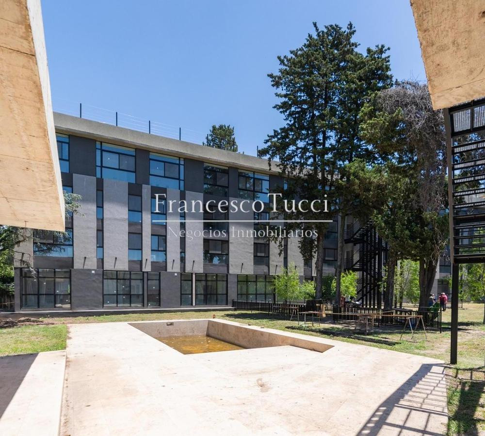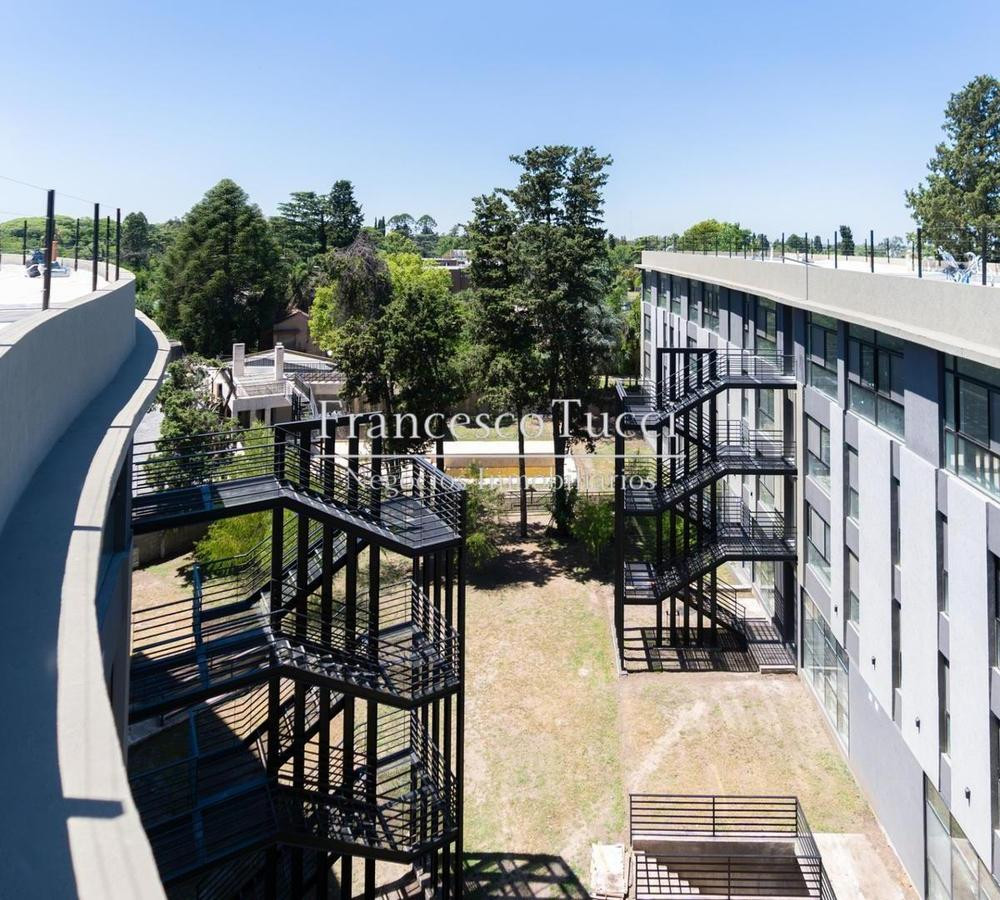 Edificio de 5 niveles con 106 unidades de vivienda, entre 1 y 4 ambientes, distribuidas de 26 a 30 por planta. Incluye subsuelo con 53 cocheras, acceso vehicular con rampa y portón automático, rampa peatonal para personas con discapacidad, bauleras, laundry, micro cine y gimnasio de uso común. En planta baja hay hall con acceso peatonal, sector de co-work y espacio común con piscina exterior; 2 parrilleros techados con baños, fogonero y living exterior sobre quincho, con 30 unidades (27 de 1 amb