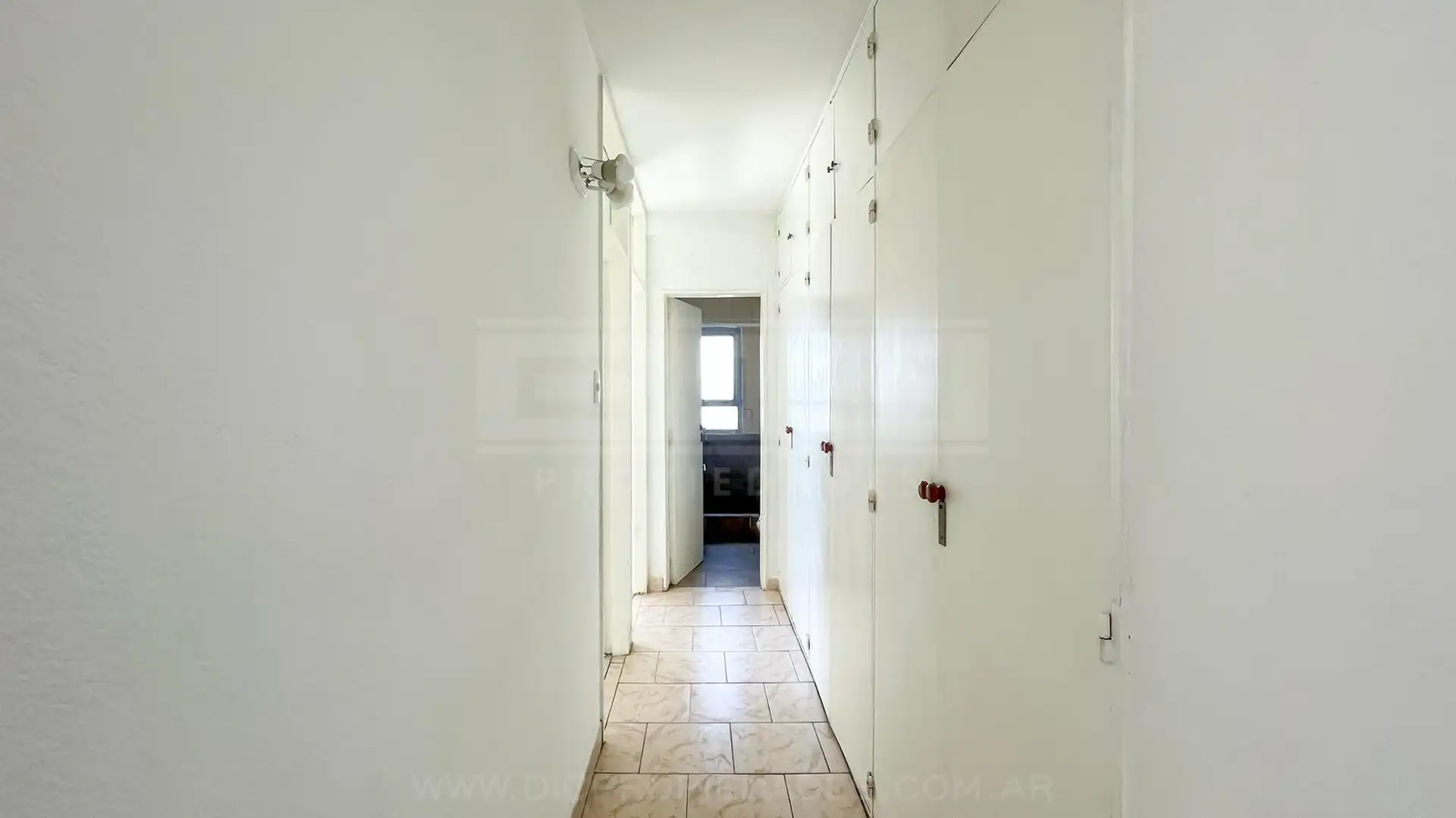 Departamento de 3 ambientes en un complejo de Paraná 3900, Martínez. Cuenta con living-comedor, balcón amplio, cocina independiente con lavadero, 2 dormitorios, baño completo y placard de apoyo en el pasillo. Incluye cochera fija incorporada por título.