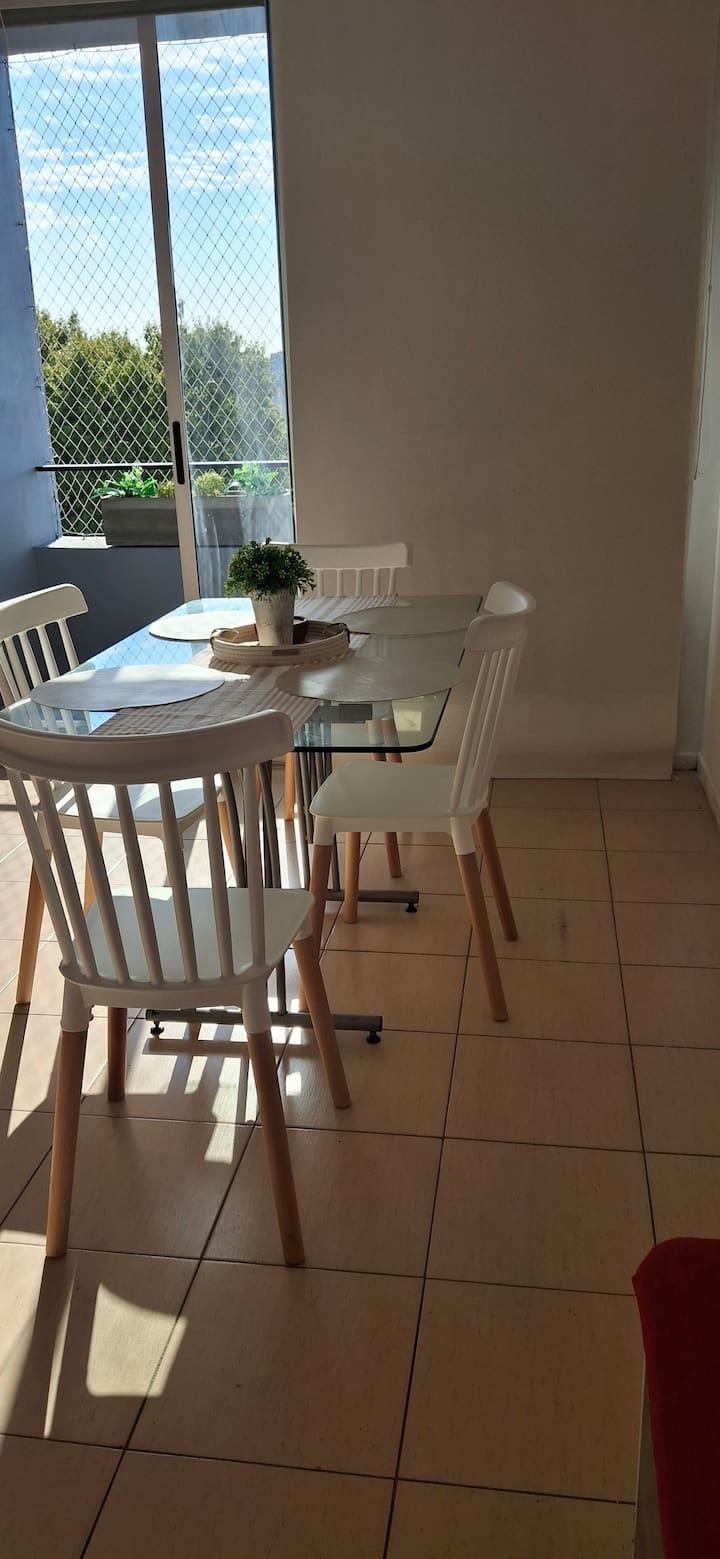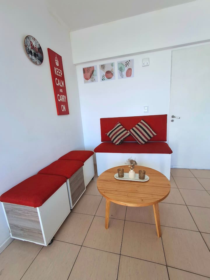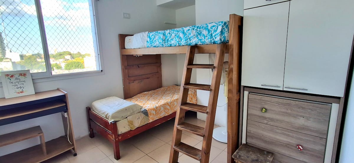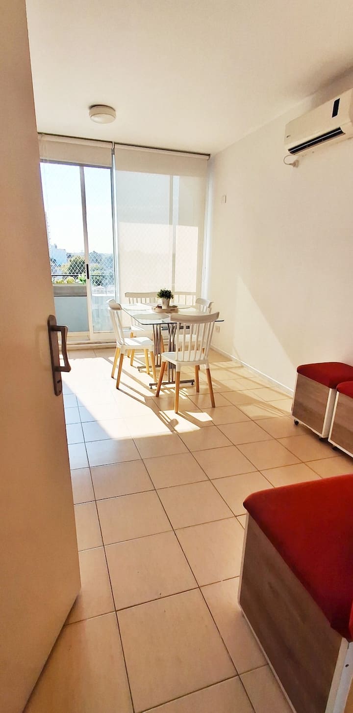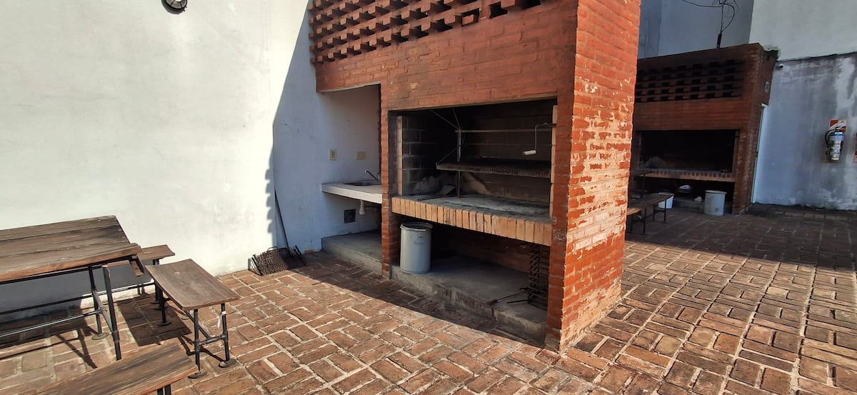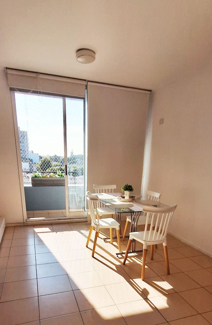 Departamento de 3 ambientes en Parque Patricios. Cuenta con living comedor, dormitorio principal con cama queen y otro dormitorio con cama de 1 plaza y cucheta. Tiene TV y aire acondicionado en el living comedor y en el dormitorio principal; cocina equipada. El edificio cuenta con laundry y parque.