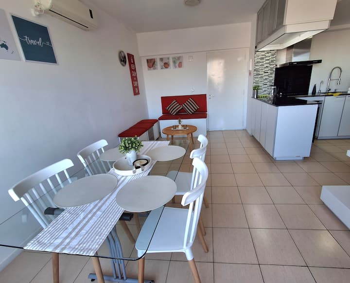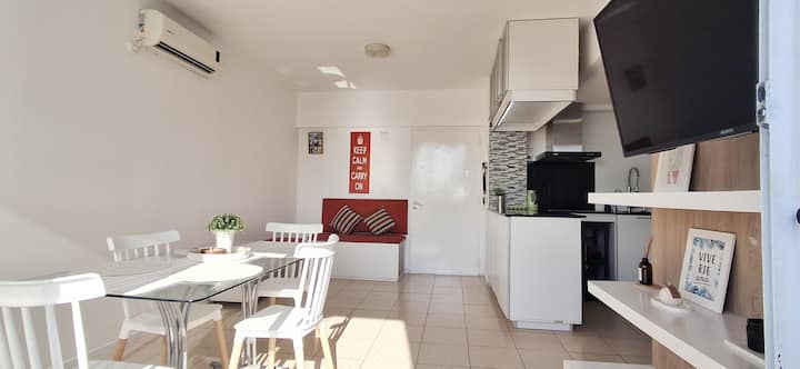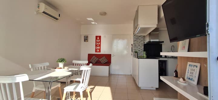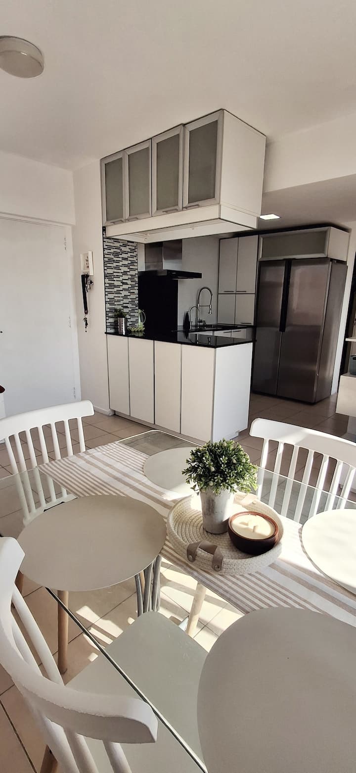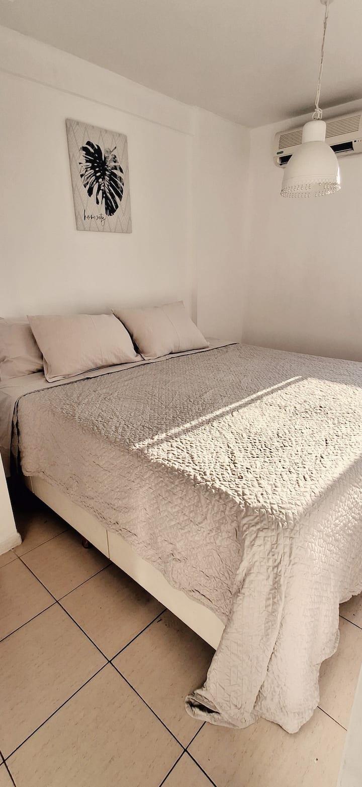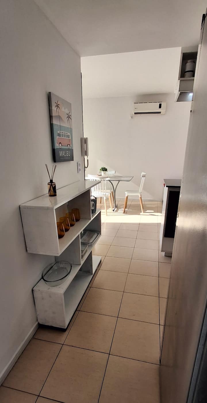Departamento de 3 ambientes en Parque Patricios. Cuenta con living comedor, dormitorio principal con cama queen y otro dormitorio con cama de 1 plaza y cucheta. Tiene TV y aire acondicionado en el living comedor y en el dormitorio principal; cocina equipada. El edificio cuenta con laundry y parque.