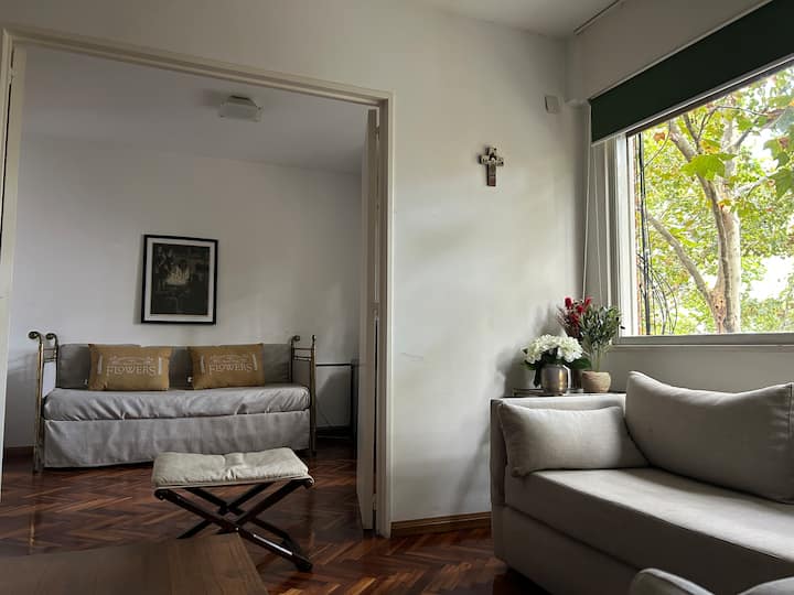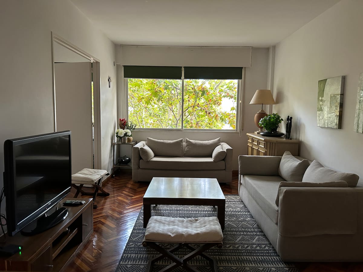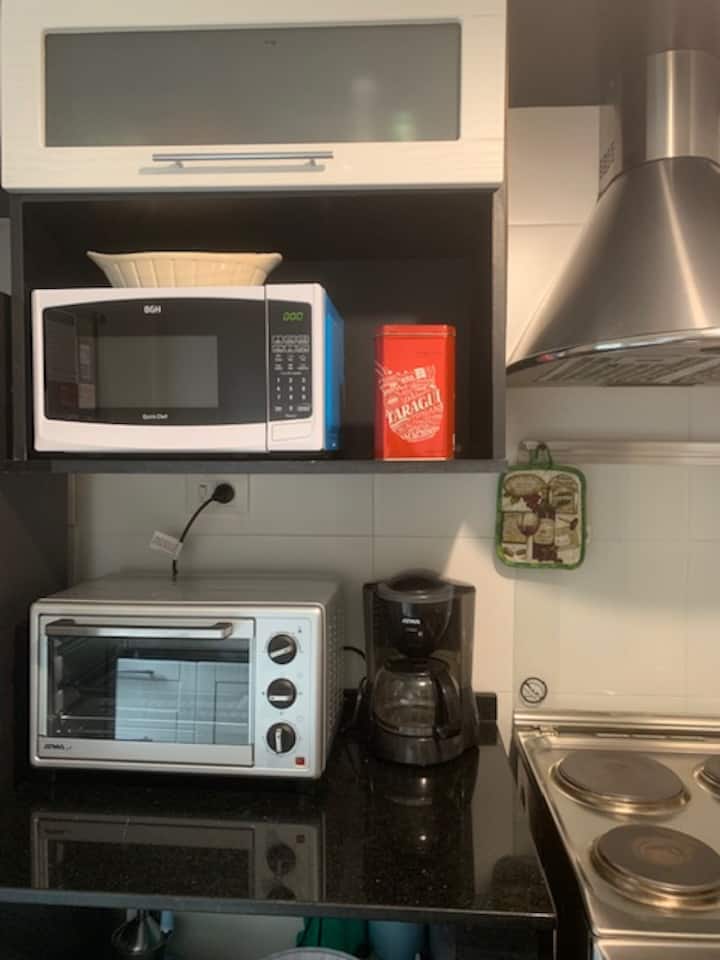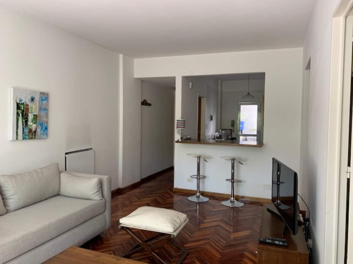Departamento de 2 ambientes en Olivos. Está ubicado a 1 cuadra de la estación del Ramal Tigre y a 3 cuadras de la rambla Alfonsín. Cuenta con 3 ambientes, equipamiento completo con toallas y sábanas incluidas. El servicio de limpieza durante la estadía es opcional y la estadía mínima es de 1 semana.