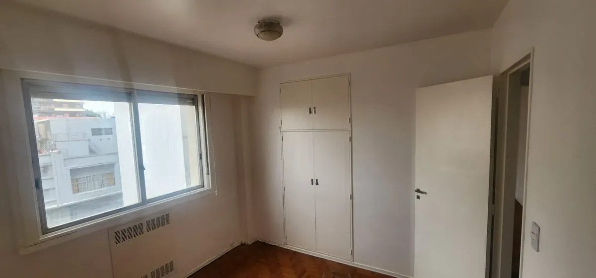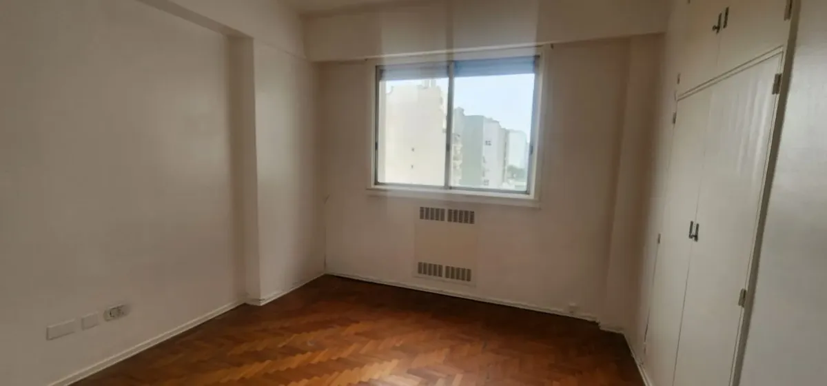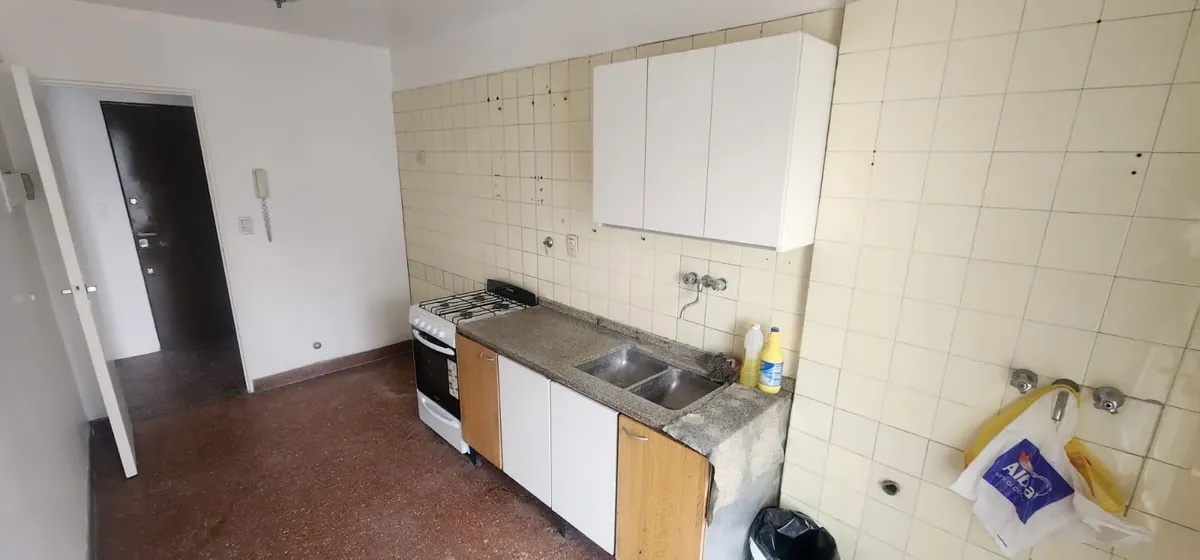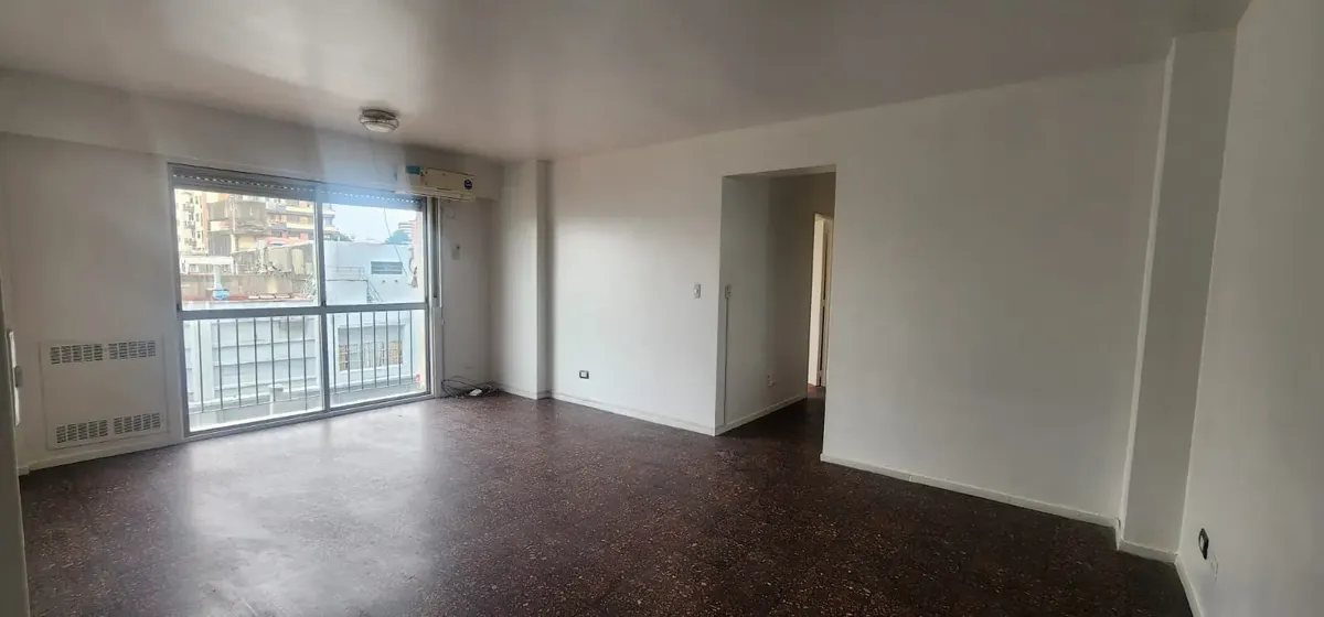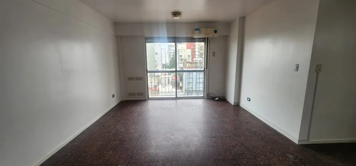 Departamento de 3 ambientes al este en Parque Chacabuco. Cuenta con seguridad 24 horas. Living de 6x4 con AACC, cocina de 4x2.5 con lavadero, baño completo y 2 dormitorios: dormitorio principal de 4x3.2 y segundo dormitorio de 3x3.