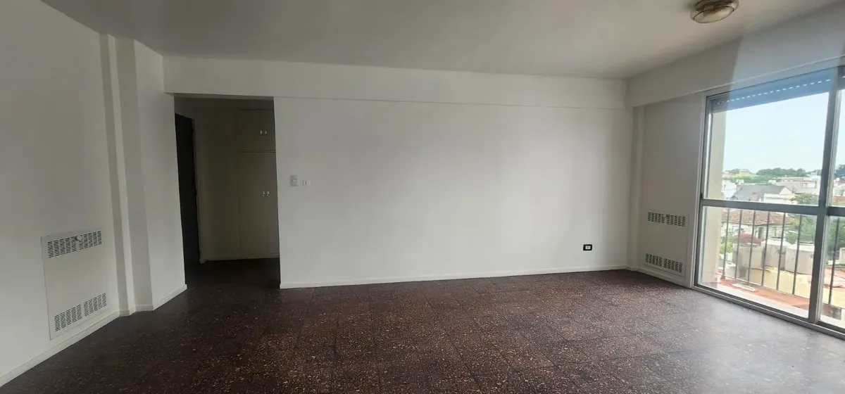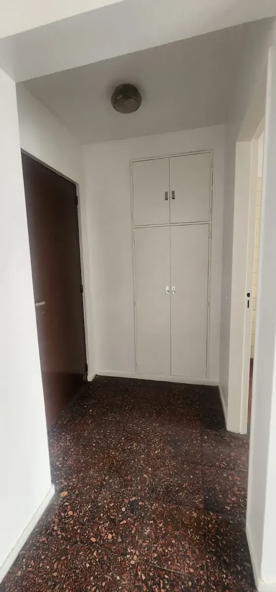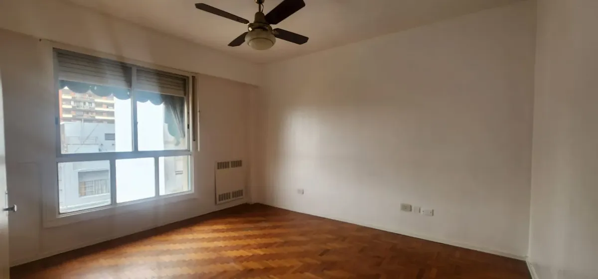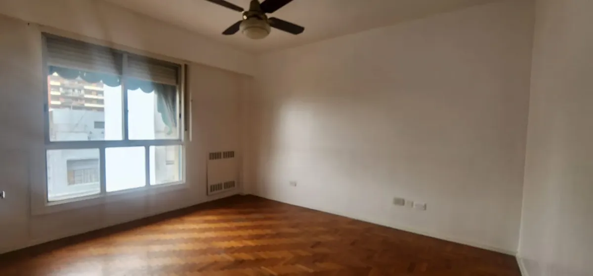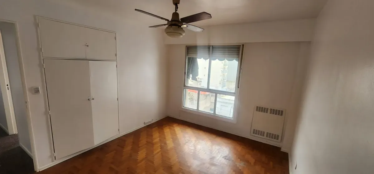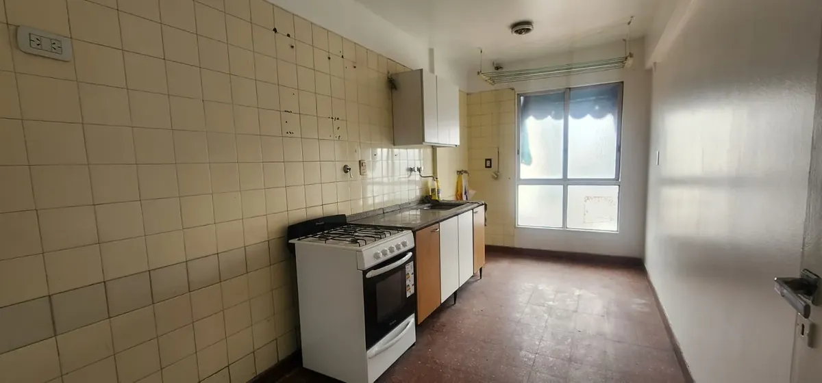 Departamento de 3 ambientes al este en Parque Chacabuco. Cuenta con seguridad 24 horas. Living de 6x4 con AACC, cocina de 4x2.5 con lavadero, baño completo y 2 dormitorios: dormitorio principal de 4x3.2 y segundo dormitorio de 3x3.
