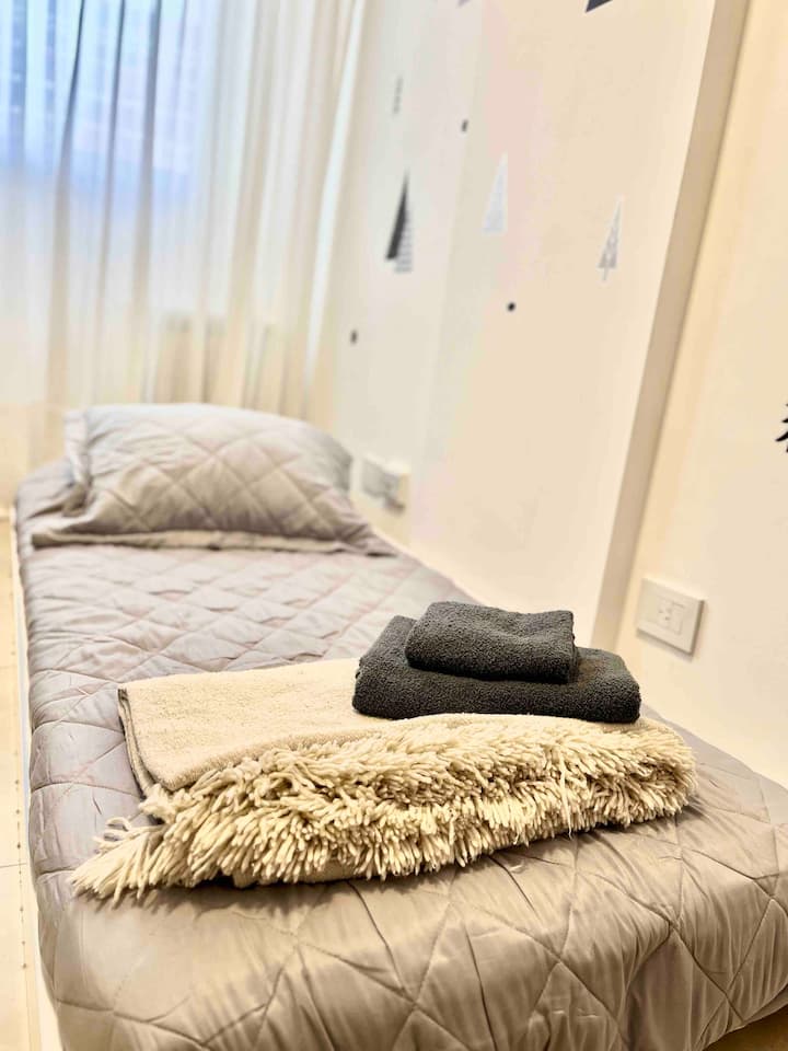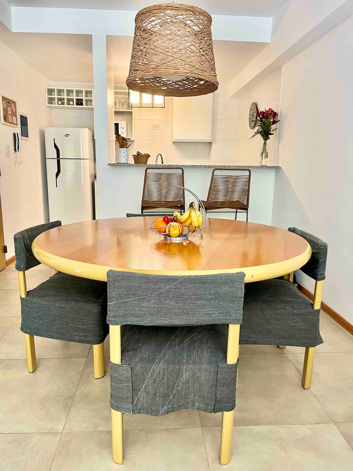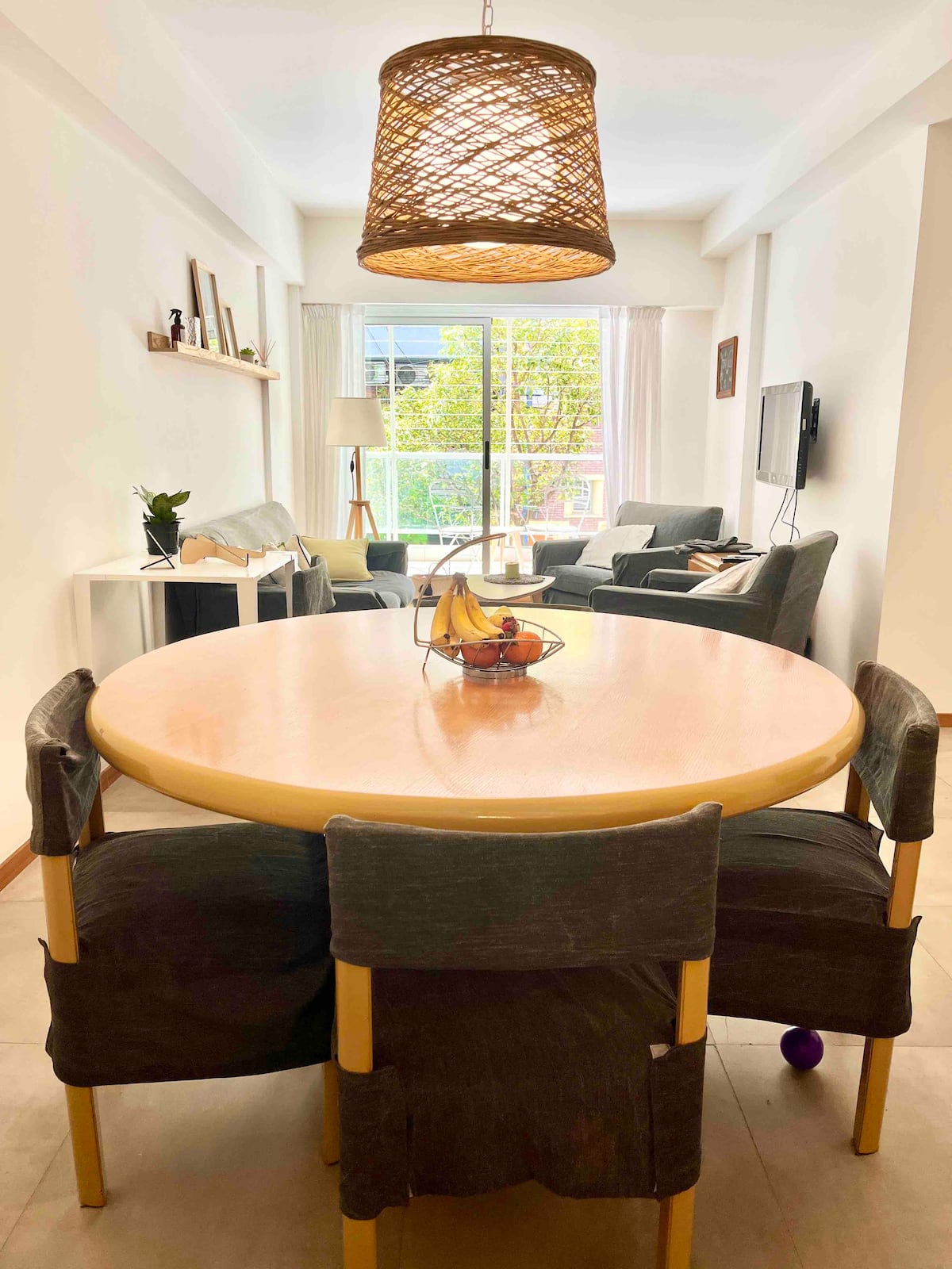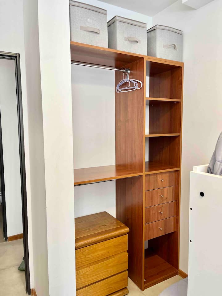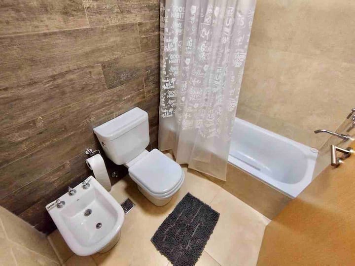 Departamento de 3 ambientes en Parque Chacabuco, con cocina integrada, comedor y living. Tiene 2 dormitorios: el principal con cama doble, vestidor y baño en suite completo; el segundo con cama cucheta de 3 plazas. Incluye 2 baños completos y balcón.