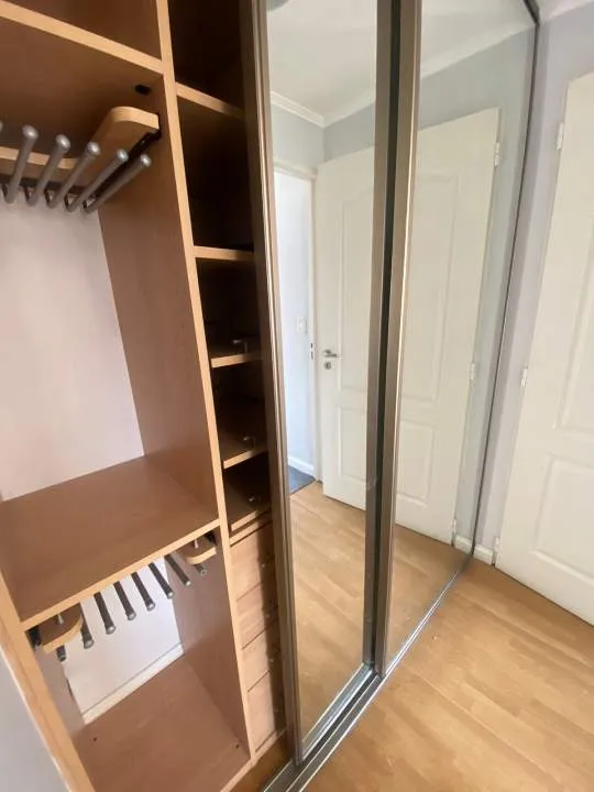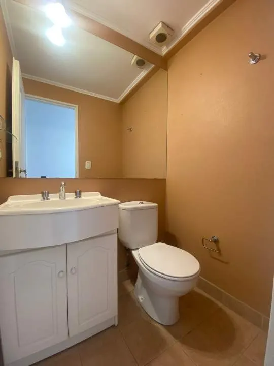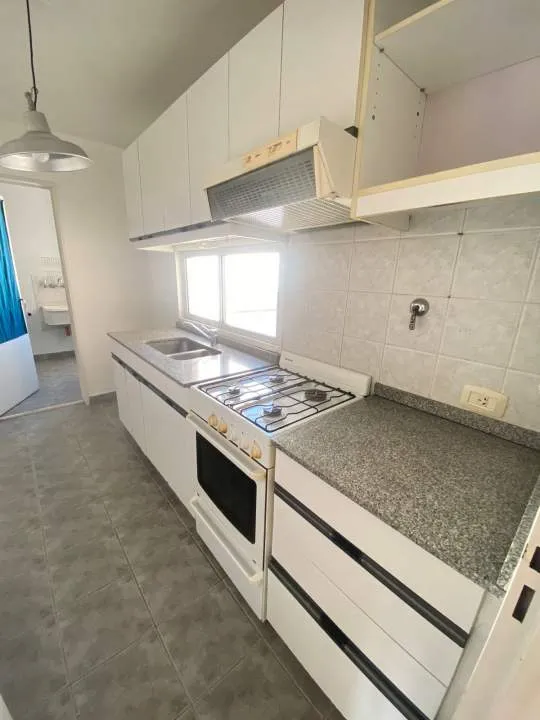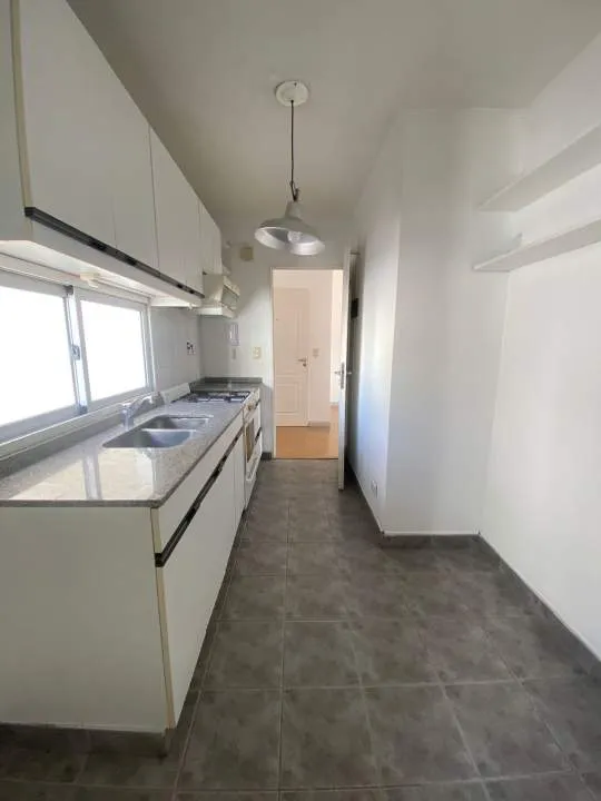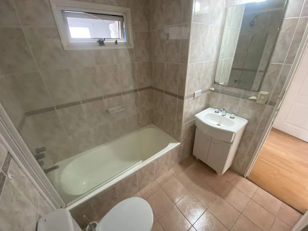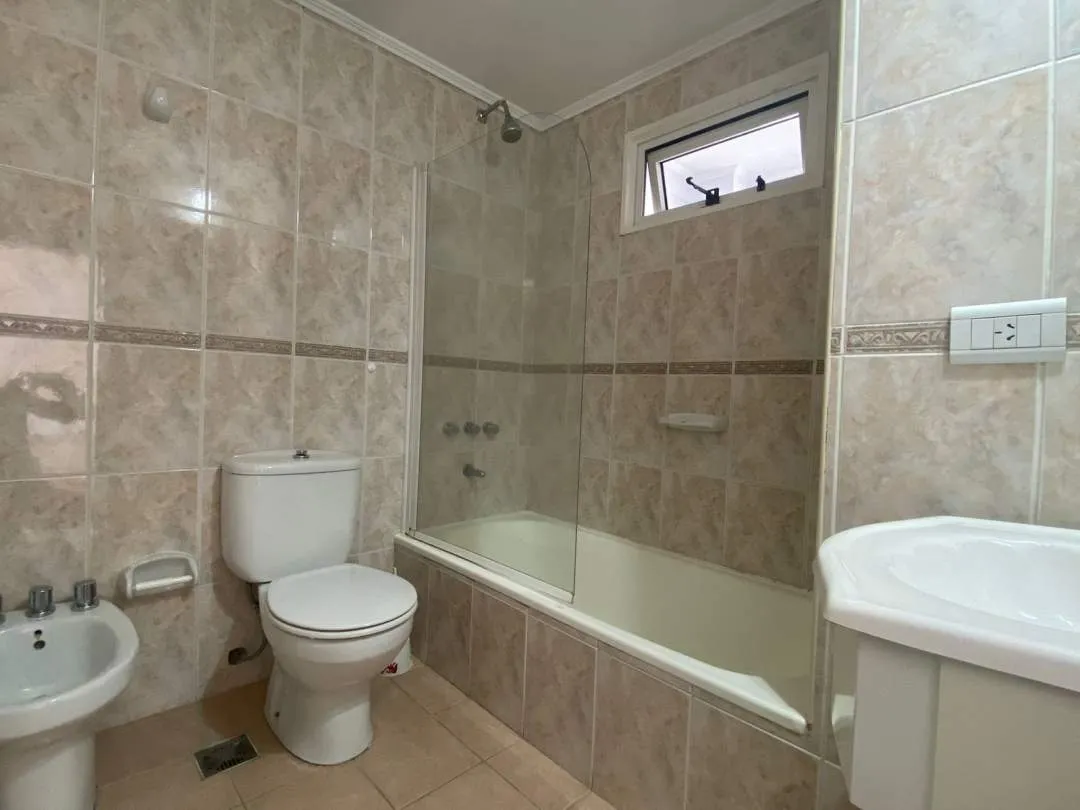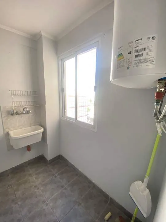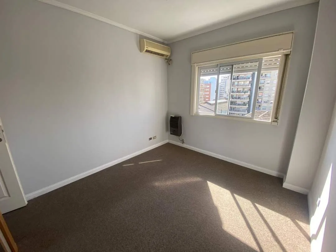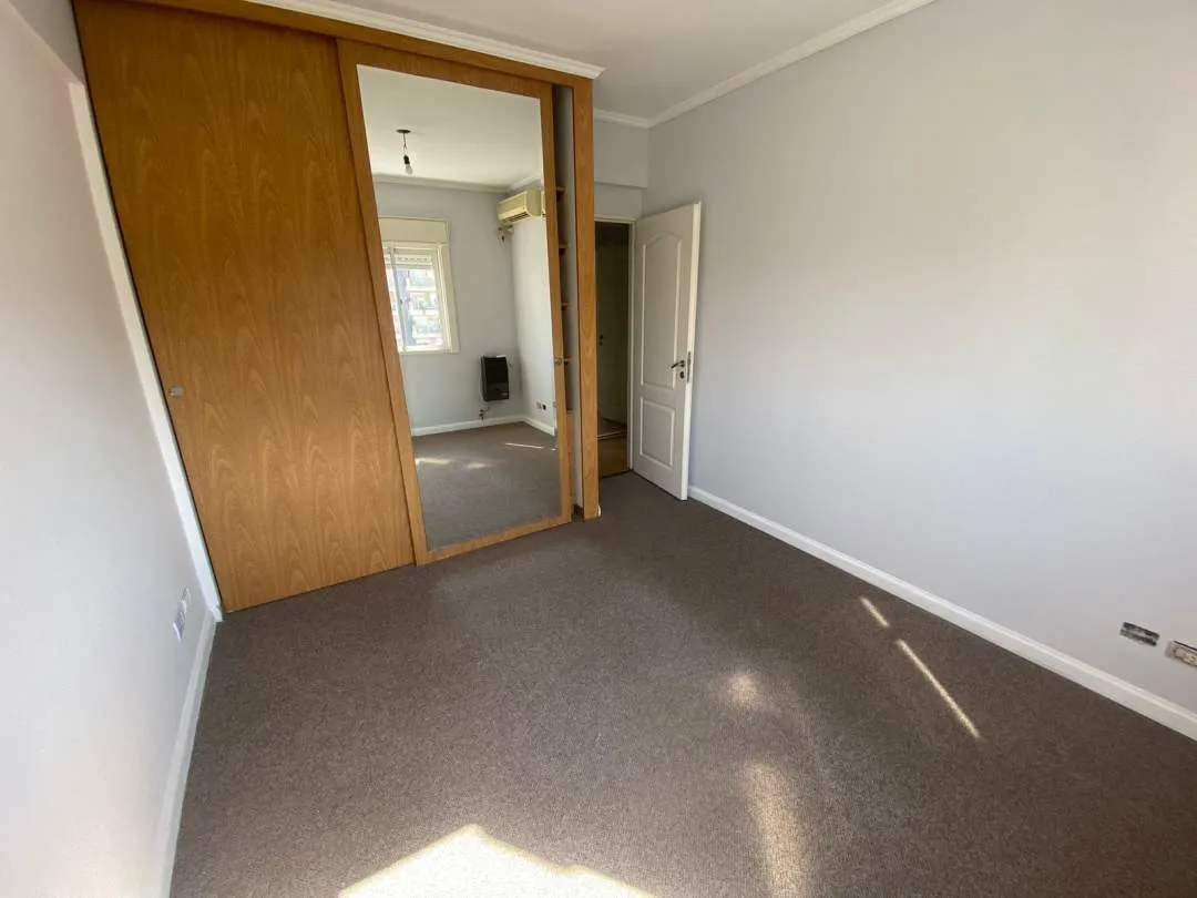 Departamento de 3 ambientes al contrafrente, con balcón aterrazado y cochera fija cubierta. Cuenta con cocina equipada con lavadero independiente y cubierto, 2 dormitorios con placards espejados, baño principal y completo, y toilette. Tiene aire acondicionado friocalor en dormitorio principal y estufas en dormitorios y living comedor. El edificio tiene parrillas, jardín con juegos infantiles y domo de seguridad privada en planta baja. Las expensas son 300.000 e incluyen expensas y la cochera.