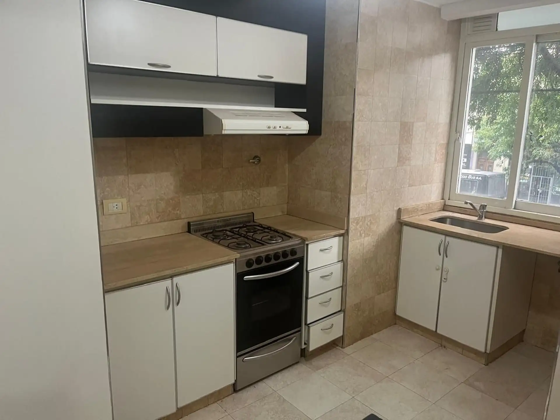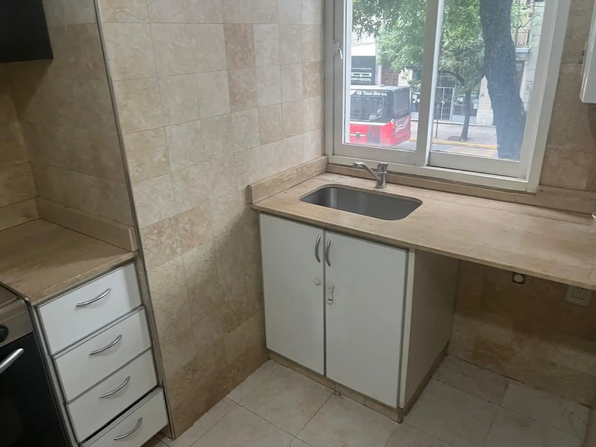 Departamento de 3 ambientes en Caballito, con cocina integrada y mobiliario completo. Living comedor con salida a balcón y espacio para lavarropas. Baño completo con bañera y dormitorios con placard.