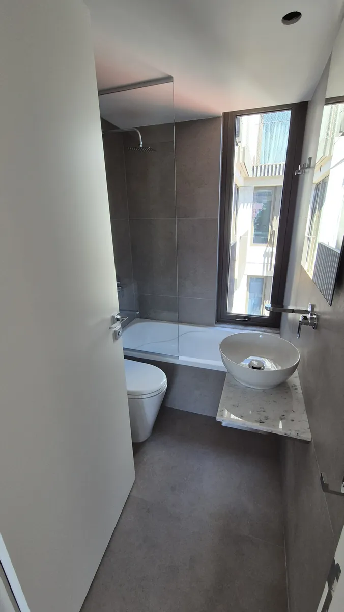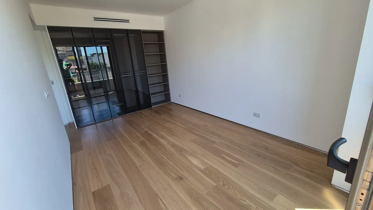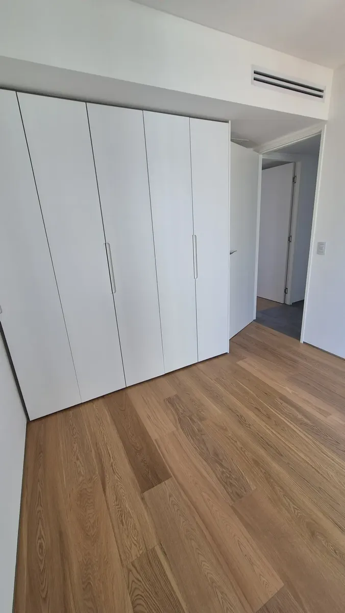 Departamento de 3 ambientes de 87 m² totales en un edificio en Caballito, al frente, en 2do piso con orientación este. Recientemente pintado, con 2 dormitorios y 2 baños completos, uno en suite en el dormitorio principal, y salida al balcón desde el living. Cuenta con balcón aterrazado, cocina integrada con espacio para lavarropas y preinstalación con desagüe, agua y electricidad; también tiene espacio para lavavajillas, aire acondicionado central frío/calor y cochera en el primer subsuelo. El e