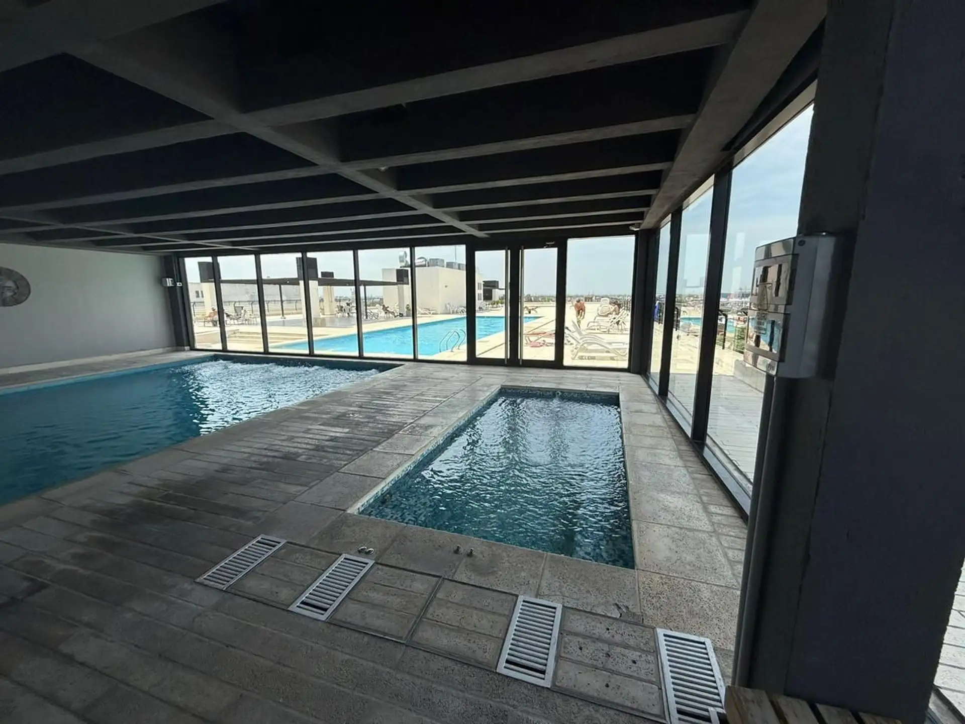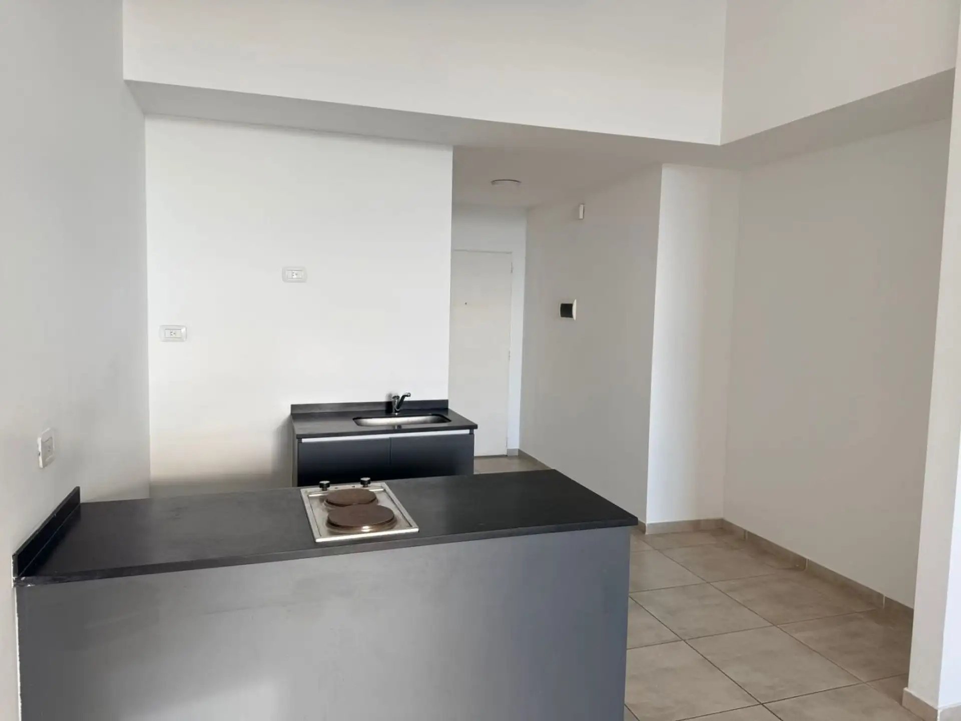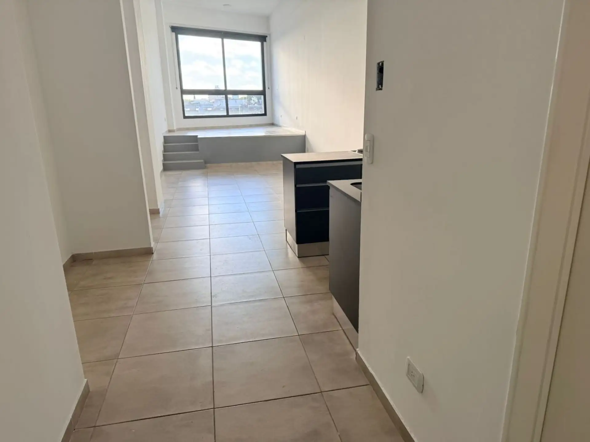 Departamento monoambiente en Parque Chacabuco, al alquiler. Cuenta con ambiente con vista abierta y techo alto; el desnivel divide el espacio. Cocina integrada con armarios bajo mesada y anafe eléctrico de 2 hornallas, y baño completo. El edificio Terrazas de Volcan cuenta con 4 piscinas (2 climatizadas y 2 externas), sector de parrillas y solárium, pista de running, gimnasio con vestuarios, saunas (masculino y femenino), laundry en 3 pisos y SUM con internet propia en 4 pisos, además de salón