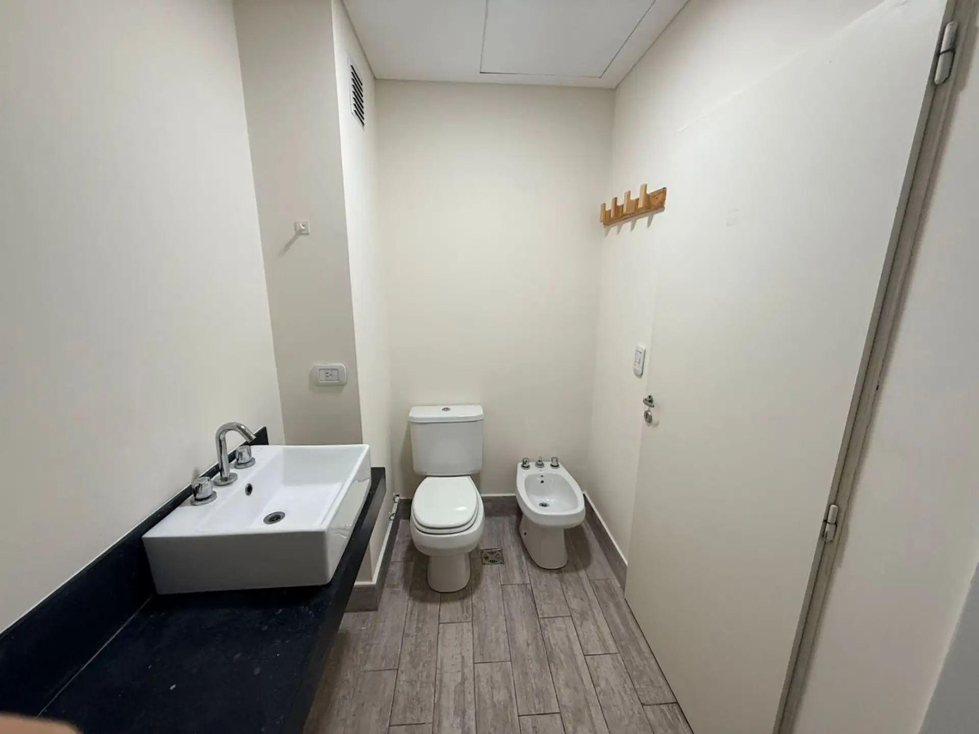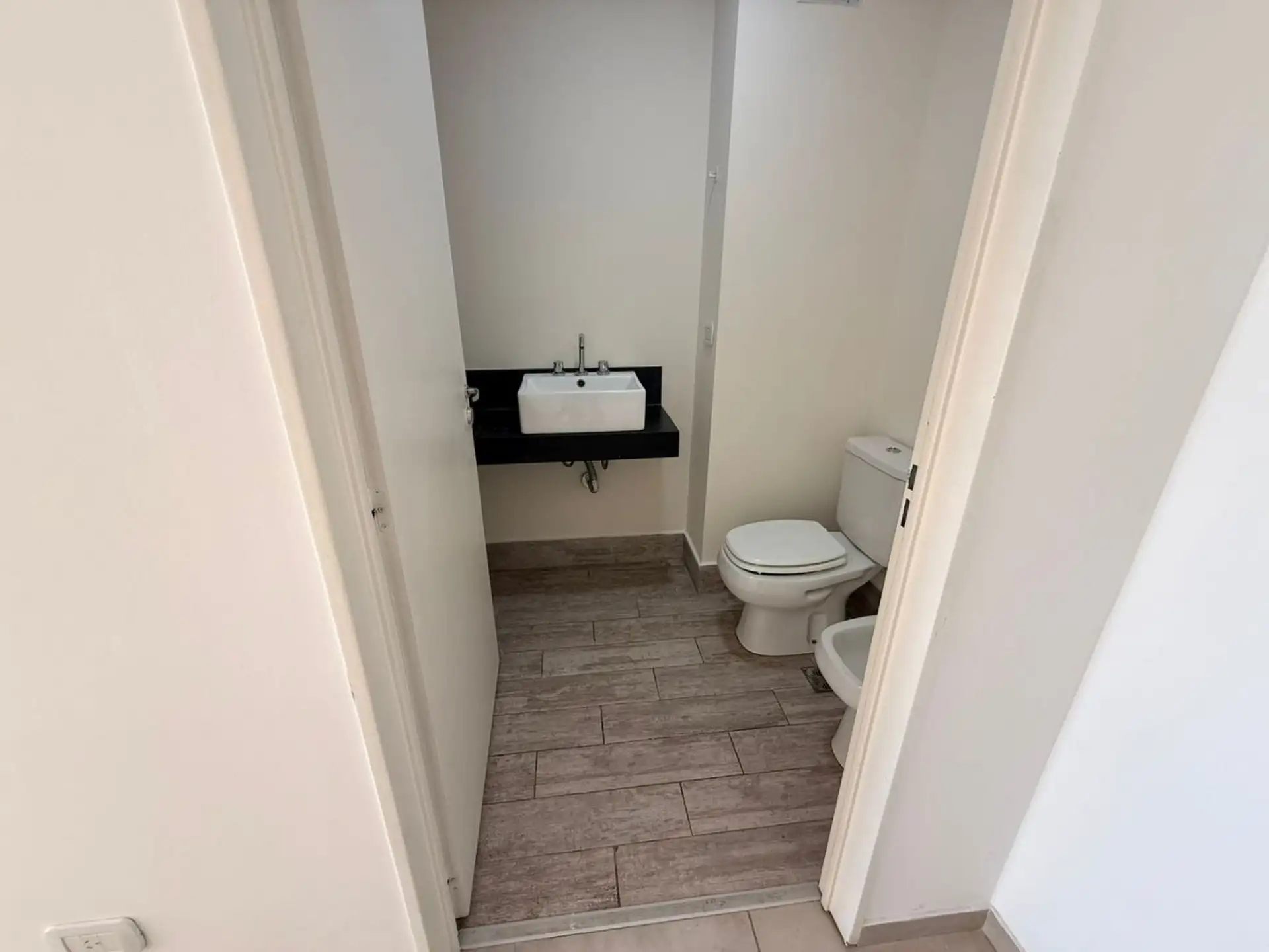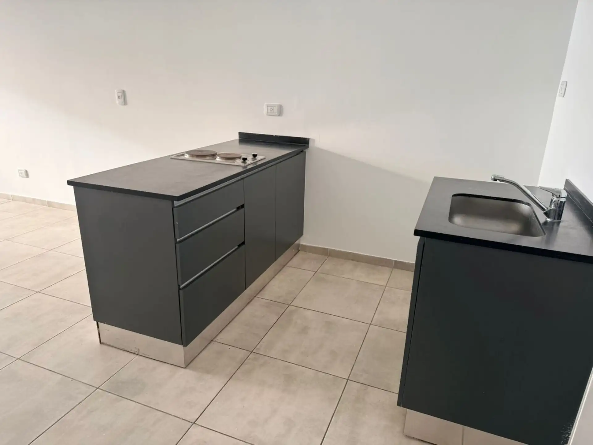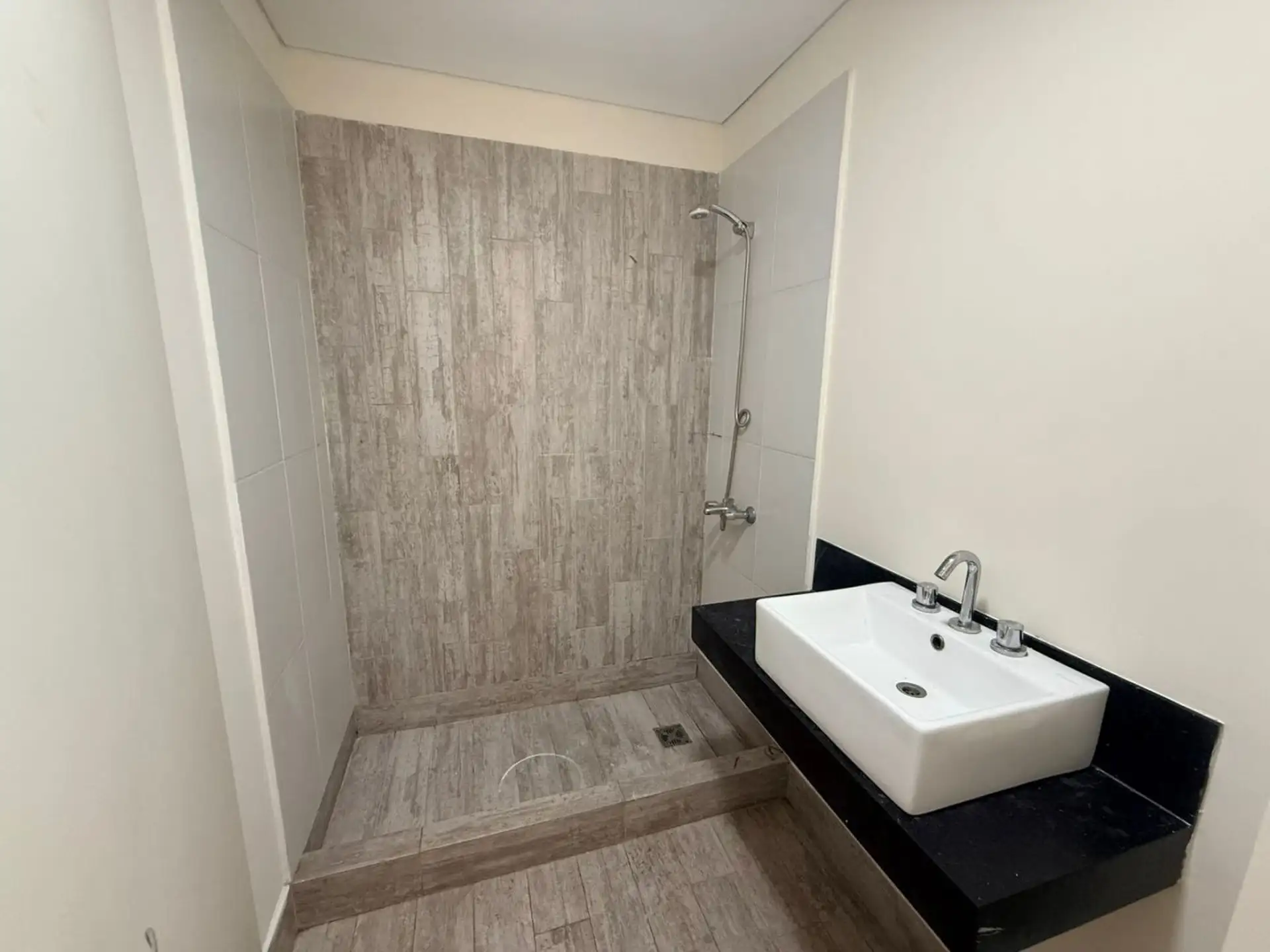 Departamento monoambiente en Parque Chacabuco, al alquiler. Cuenta con ambiente con vista abierta y techo alto; el desnivel divide el espacio. Cocina integrada con armarios bajo mesada y anafe eléctrico de 2 hornallas, y baño completo. El edificio Terrazas de Volcan cuenta con 4 piscinas (2 climatizadas y 2 externas), sector de parrillas y solárium, pista de running, gimnasio con vestuarios, saunas (masculino y femenino), laundry en 3 pisos y SUM con internet propia en 4 pisos, además de salón