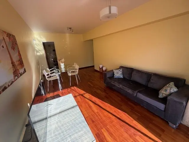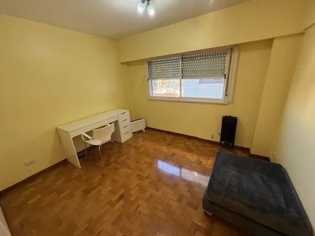 Departamento amoblado de 3 ambientes de 90 m² en Parque Chacabuco, con balcón terraza al frente y salida desde el living comedor. Cuenta con TV, sofá, mesa con sillas, sommier de 2 plazas, escritorio, heladera, microondas y vajilla. Dispone de aire acondicionado en living comedor y dormitorio, toilette de recepción, pisos de parquet pulidos y plastificados, lavadero independiente y cochera fija cubierta.