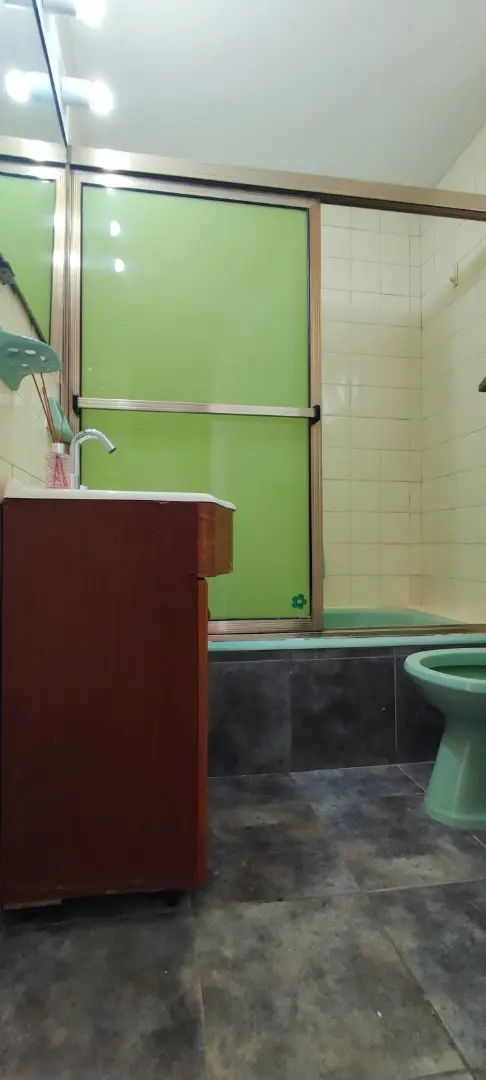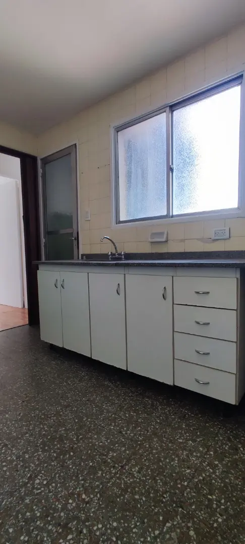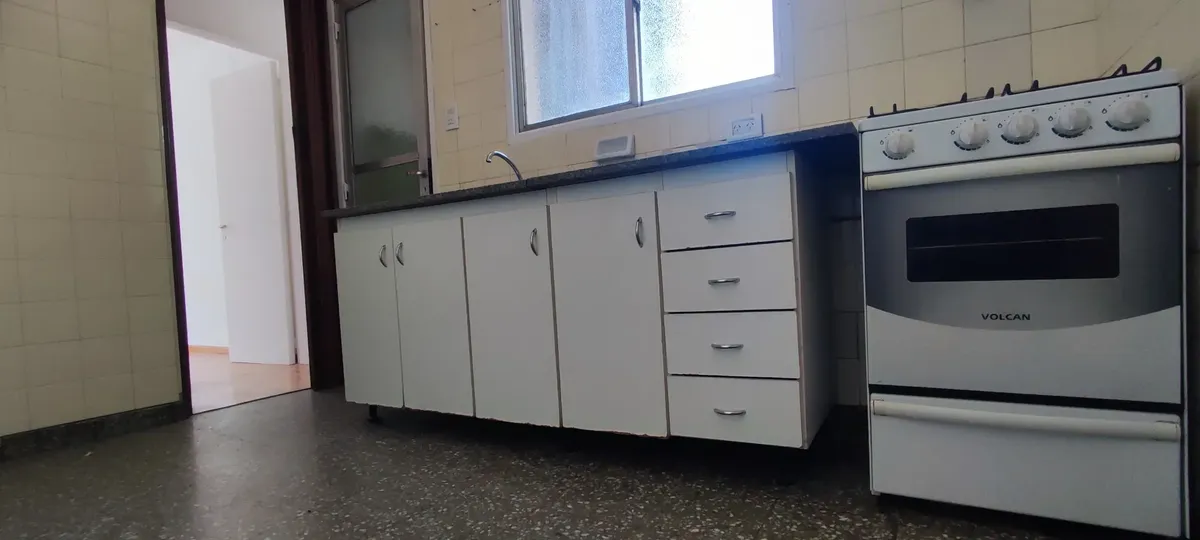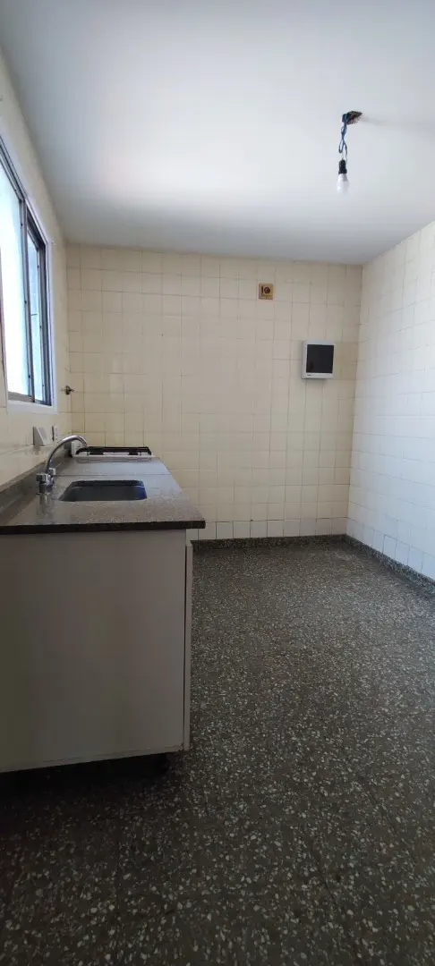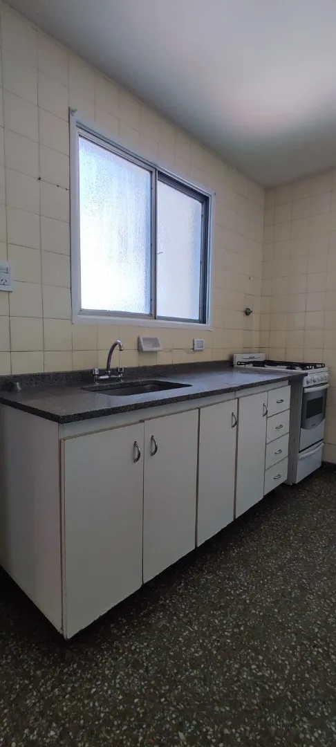 Departamento de 3 ambientes en Quilmes Centro, a la esquina de Alsina y Lavalle. Living comedor con balcón al Este y cocina comedor con muebles bajo mesada, artefacto de cocina y lavadero. Tiene 2 dormitorios con placard y baño con bañera. Recién pintado; pisos de madera entarugada pulidos y plastificados. Admite hasta 3 personas y no se aceptan mascotas.