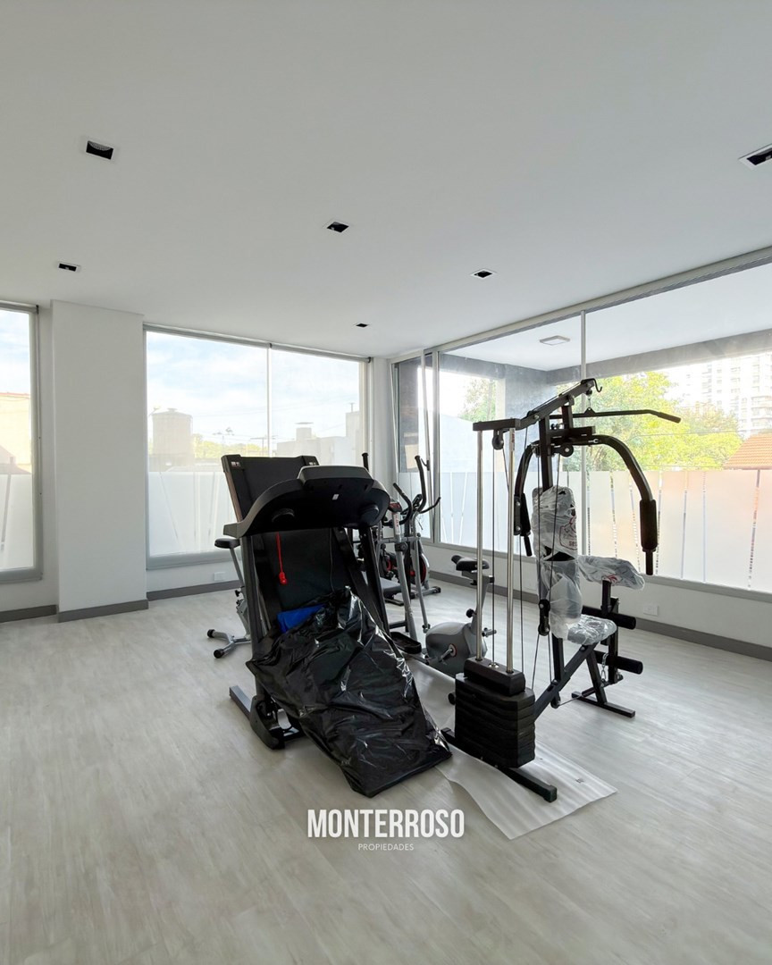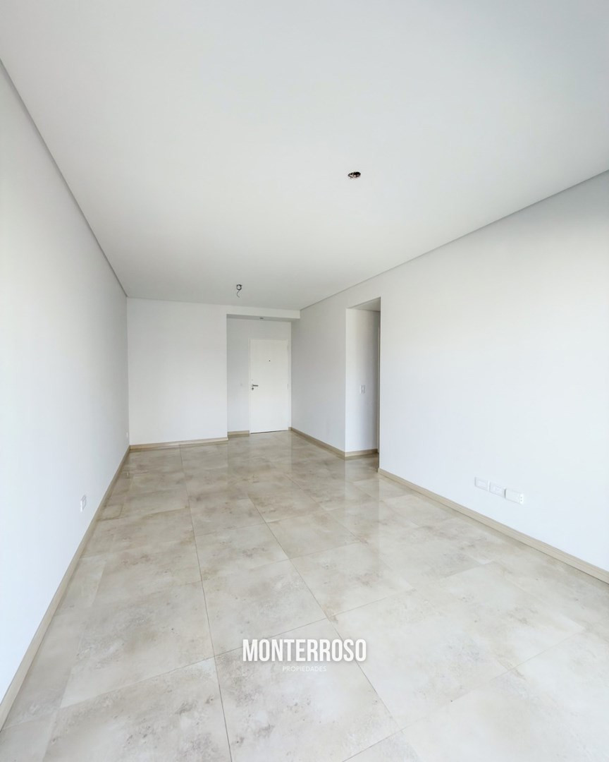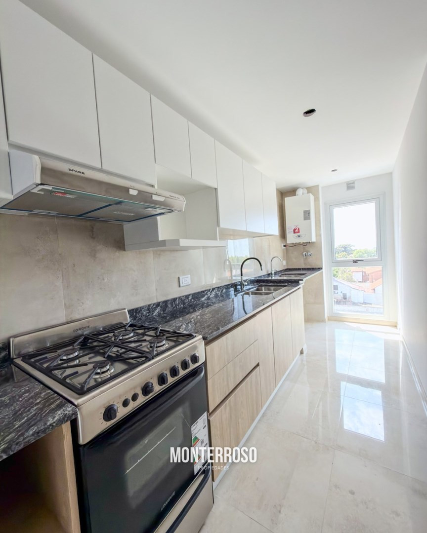 Departamento de 3 ambientes con estar-comedor, balcón al frente y cocina independiente con sector lavadero. Cuenta con toilette, baño y 2 dormitorios con placard con interiores completos. Incluye cochera en subsuelo, gimnasio y SUM, caldera dual y piso radiante, con preinstalación para aire split.