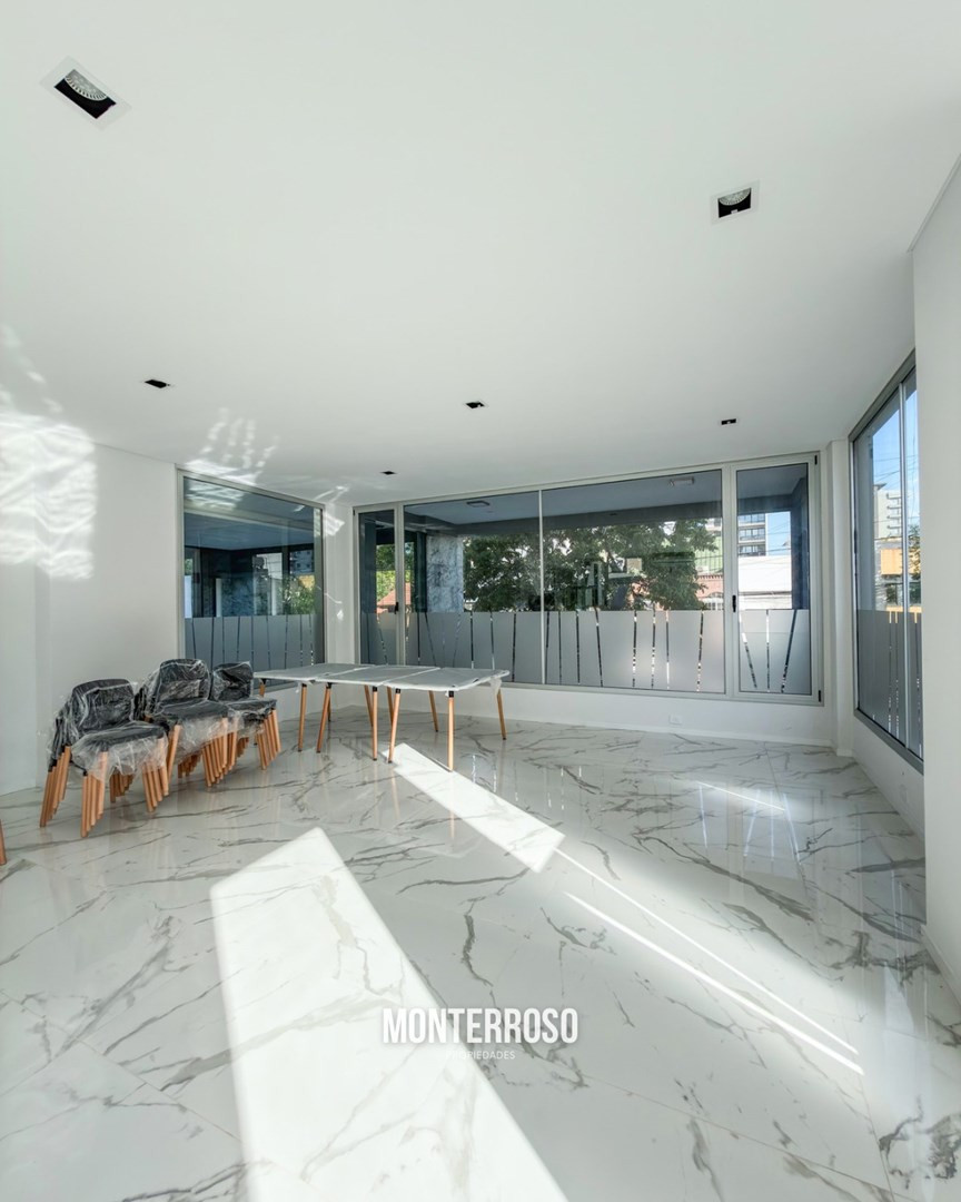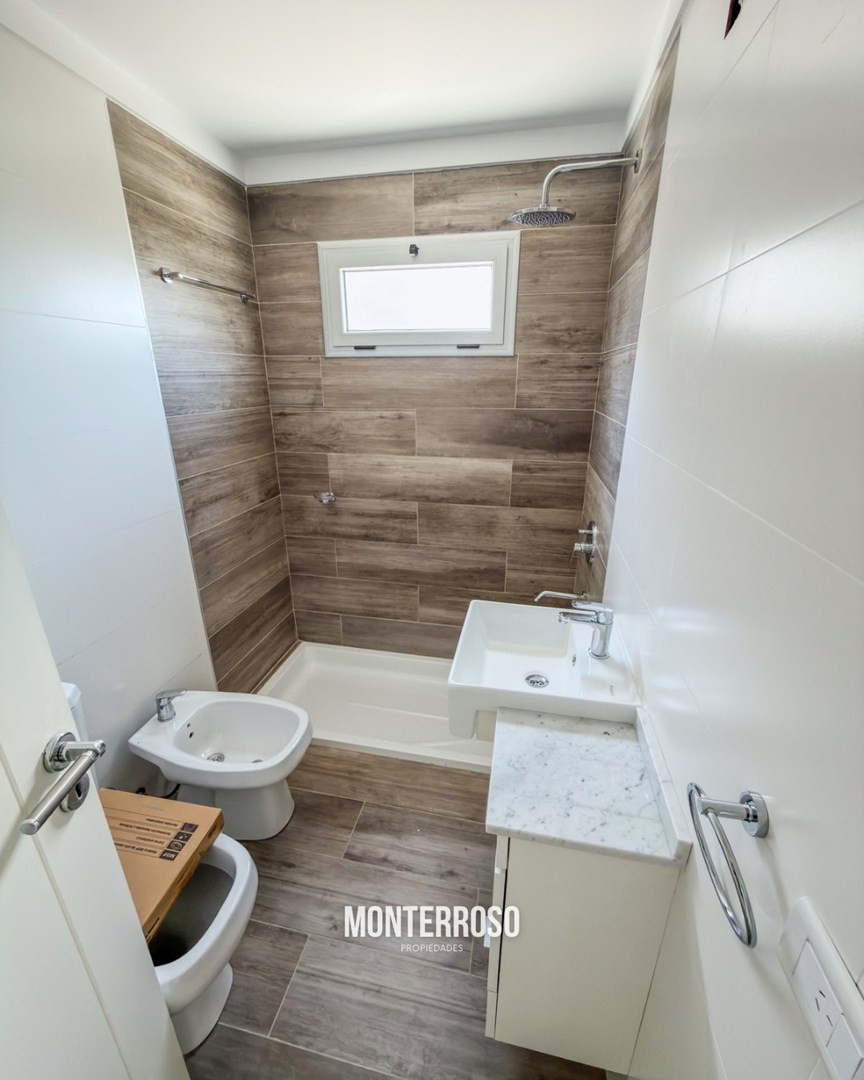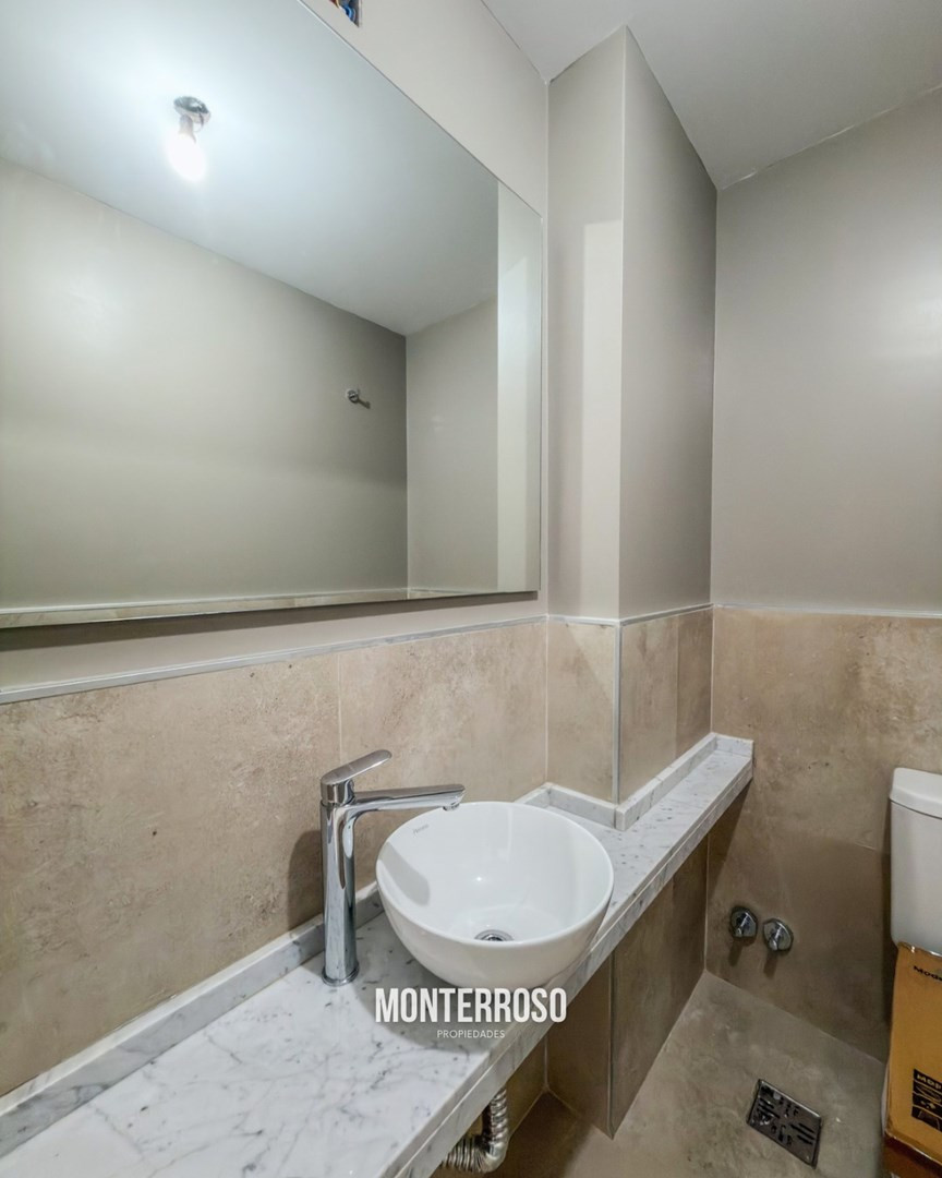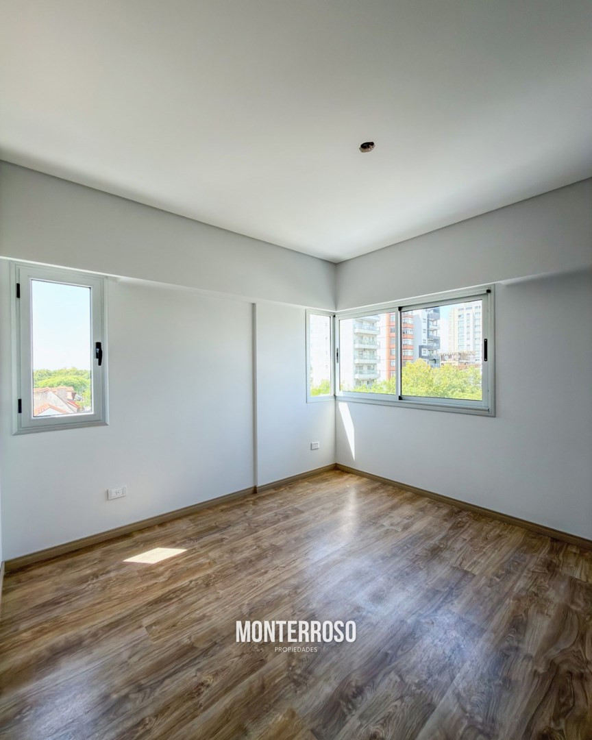 Departamento de 3 ambientes con estar-comedor, balcón al frente y cocina independiente con sector lavadero. Cuenta con toilette, baño y 2 dormitorios con placard con interiores completos. Incluye cochera en subsuelo, gimnasio y SUM, caldera dual y piso radiante, con preinstalación para aire split.
