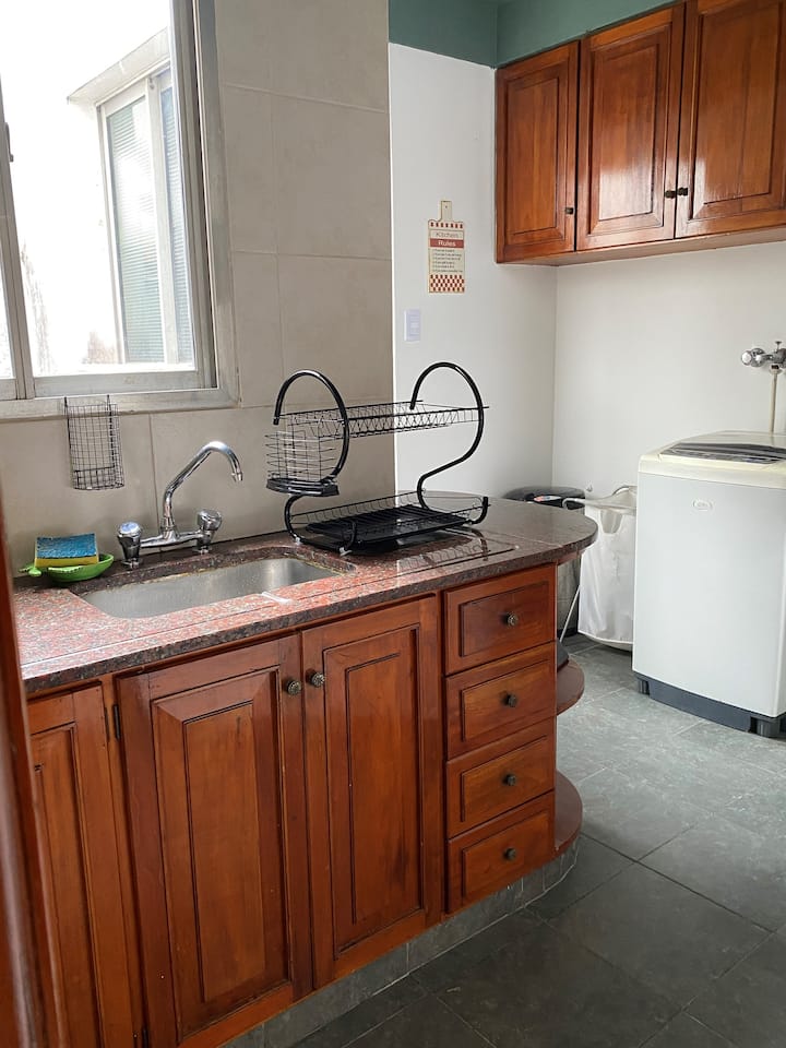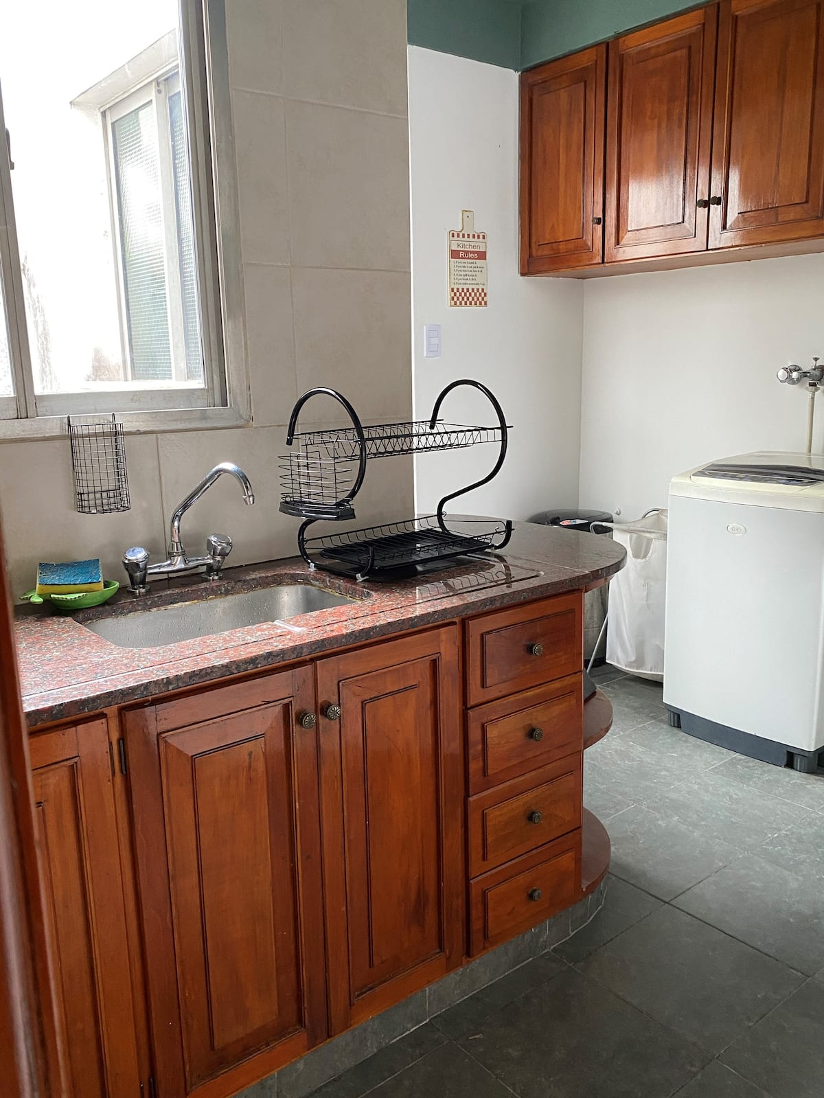 Ascensor, lavarropas, supermercado cercano, dormitorio silencioso.