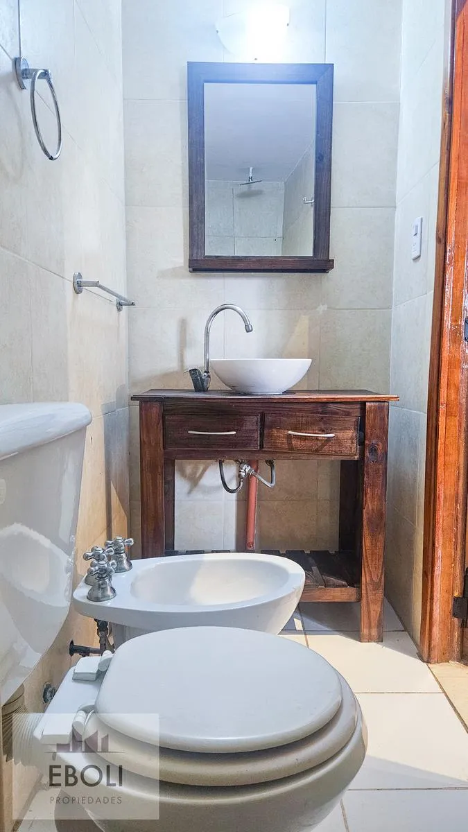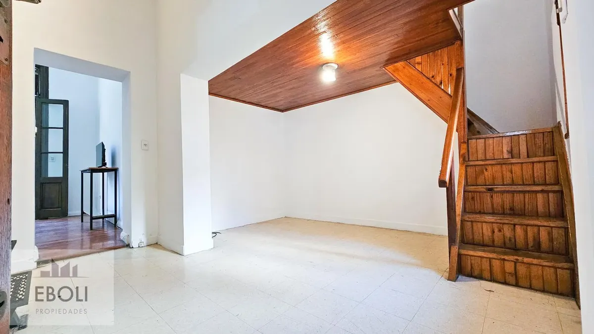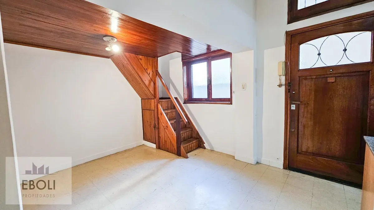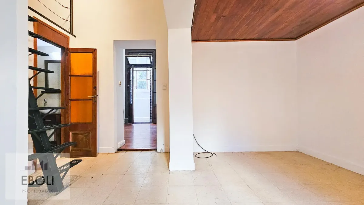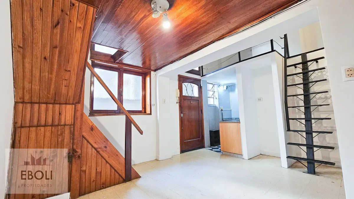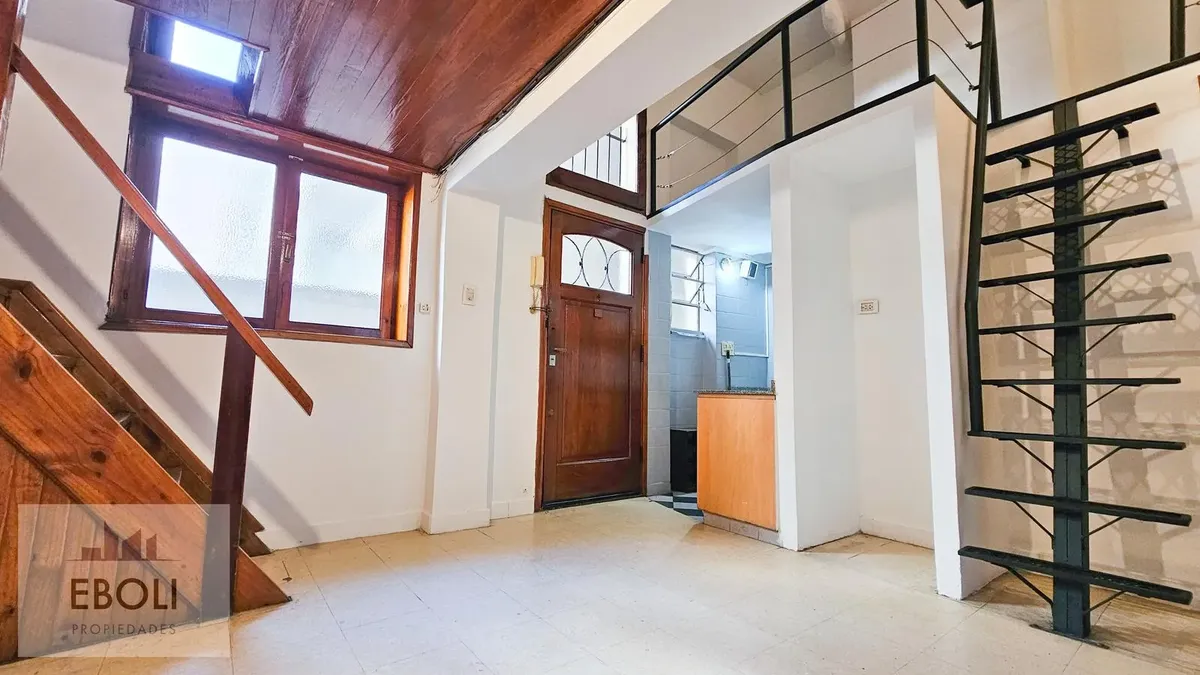 Departamento de 3 ambientes en Recoleta, en el 1er piso, unidad 1L, sobre calle Juncal al 1900. Cuenta con ascensor. Cocina integrada, living con escalera de metal y baño; un entrepiso que puede usarse como escritorio. La habitación principal se ubica al fondo y da a un patio con instalación de lavarropas y tender con poleas, con vista a un pulmón verde; la segunda habitación en entrepiso tiene aire acondicionado. Se renovaron cañerías de baño y cocina en 2017 y ese mismo año se actualizó el bañ
