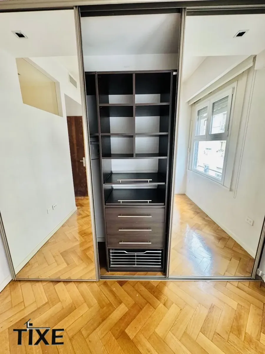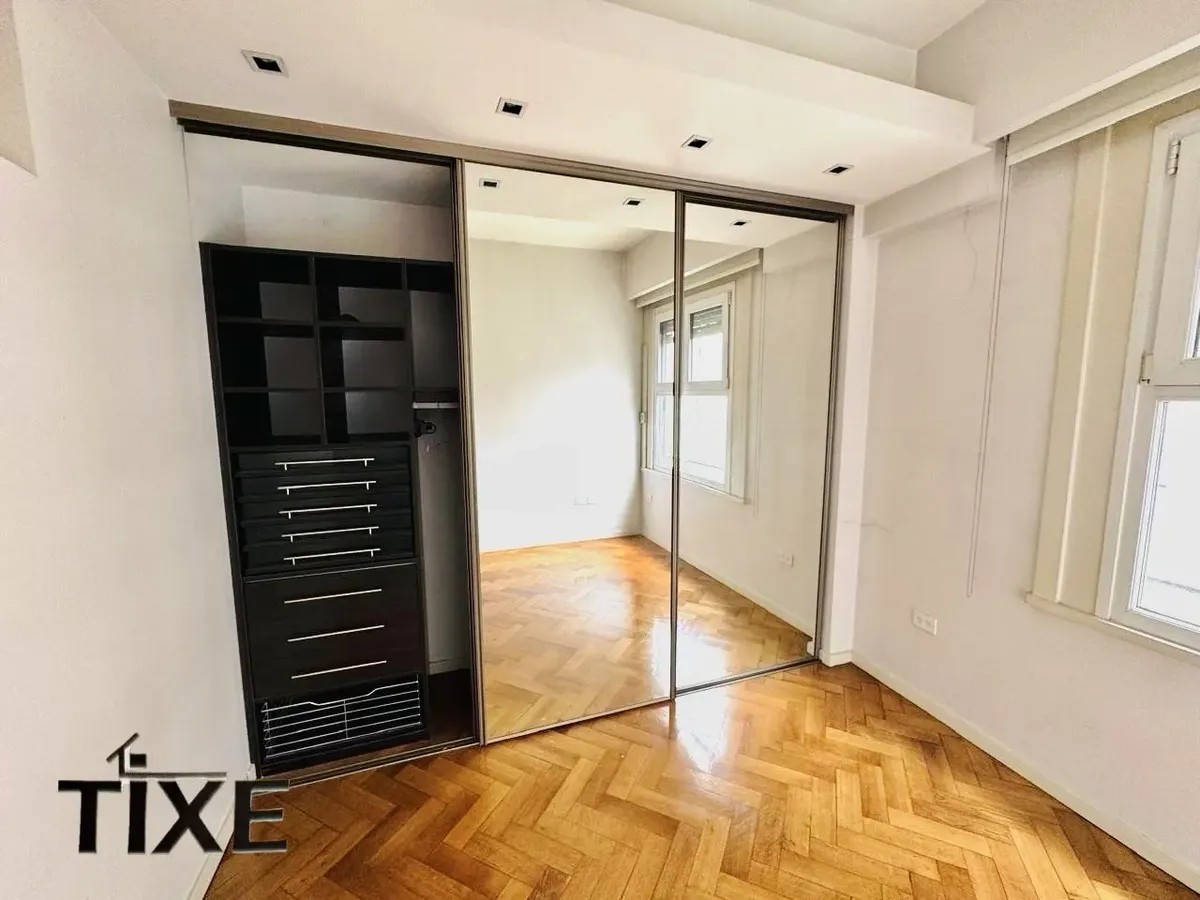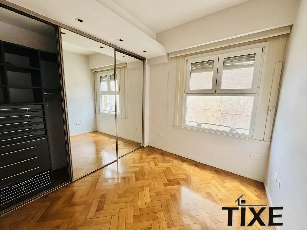 Departamento de 100 m² en Retiro, Maipú esquina M. T. de Alvear, al frente. Semipiso en 4° piso con palier semiprivado, sin muebles. Cuenta con hall de entrada, living comedor, 2 dormitorios, baño completo con hidromasaje y ducha separada, cocina independiente con muebles bajo y sobre mesada, toma para lavaplatos, lavadero y dependencias con baño de servicio. Tiene aire acondicionado frío/calor central y persianas automáticas, con pisos de madera natural. No se aceptan mascotas. Edificio antiguo