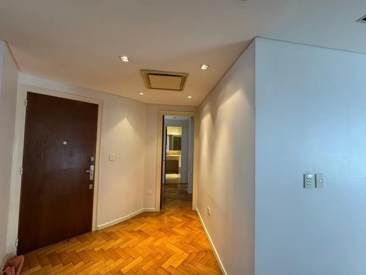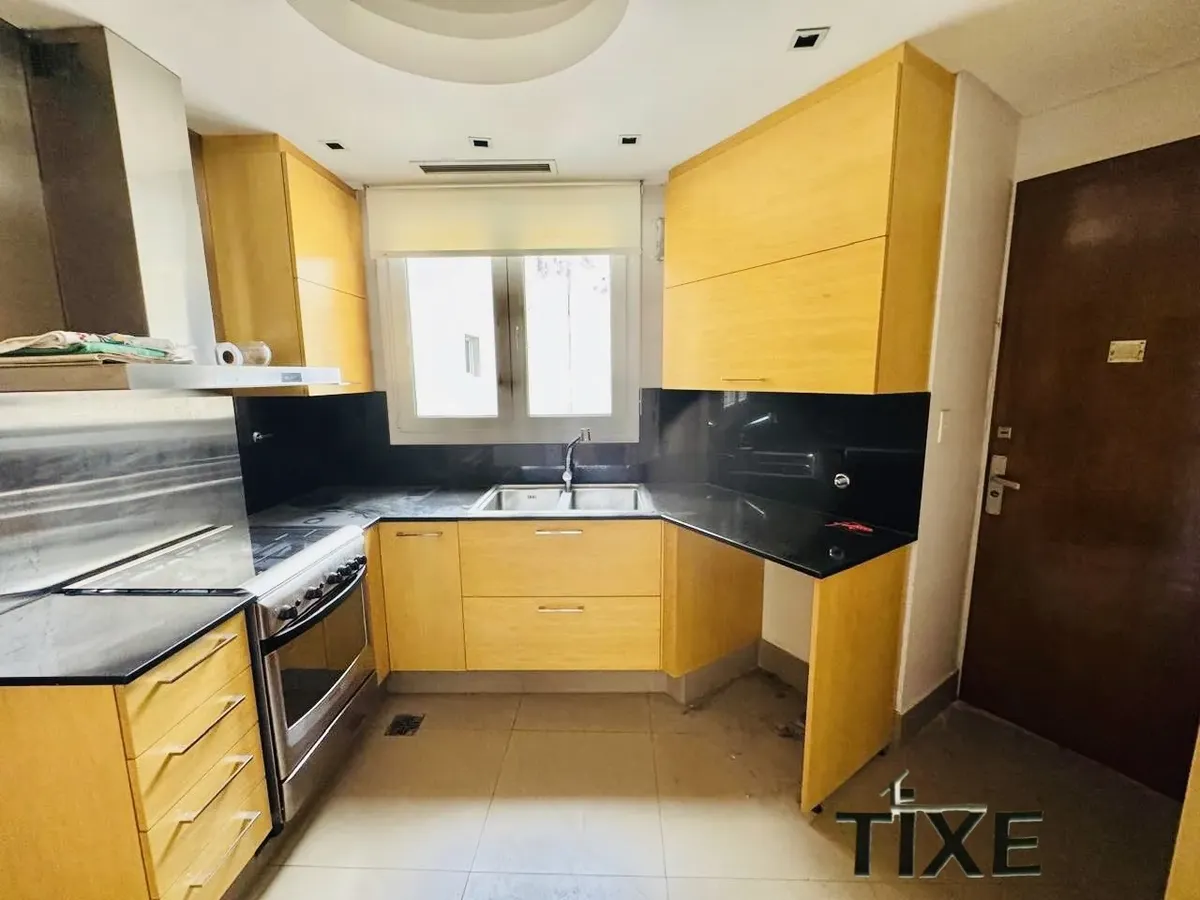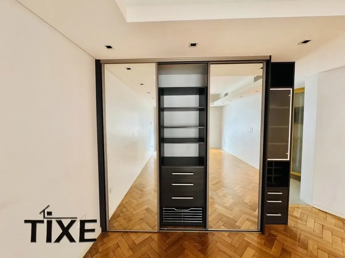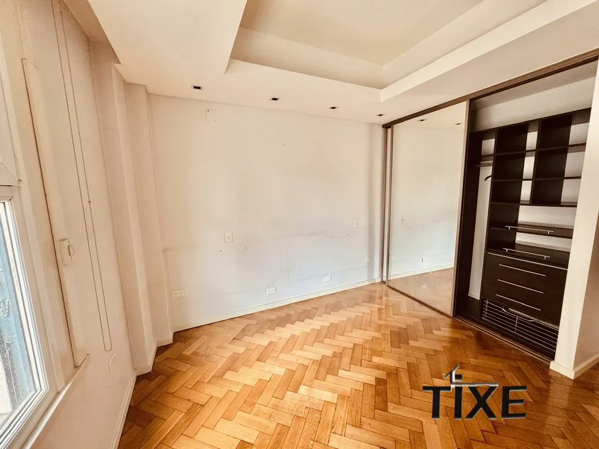 Departamento de 100 m² en Retiro, Maipú esquina M. T. de Alvear, al frente. Semipiso en 4° piso con palier semiprivado, sin muebles. Cuenta con hall de entrada, living comedor, 2 dormitorios, baño completo con hidromasaje y ducha separada, cocina independiente con muebles bajo y sobre mesada, toma para lavaplatos, lavadero y dependencias con baño de servicio. Tiene aire acondicionado frío/calor central y persianas automáticas, con pisos de madera natural. No se aceptan mascotas. Edificio antiguo