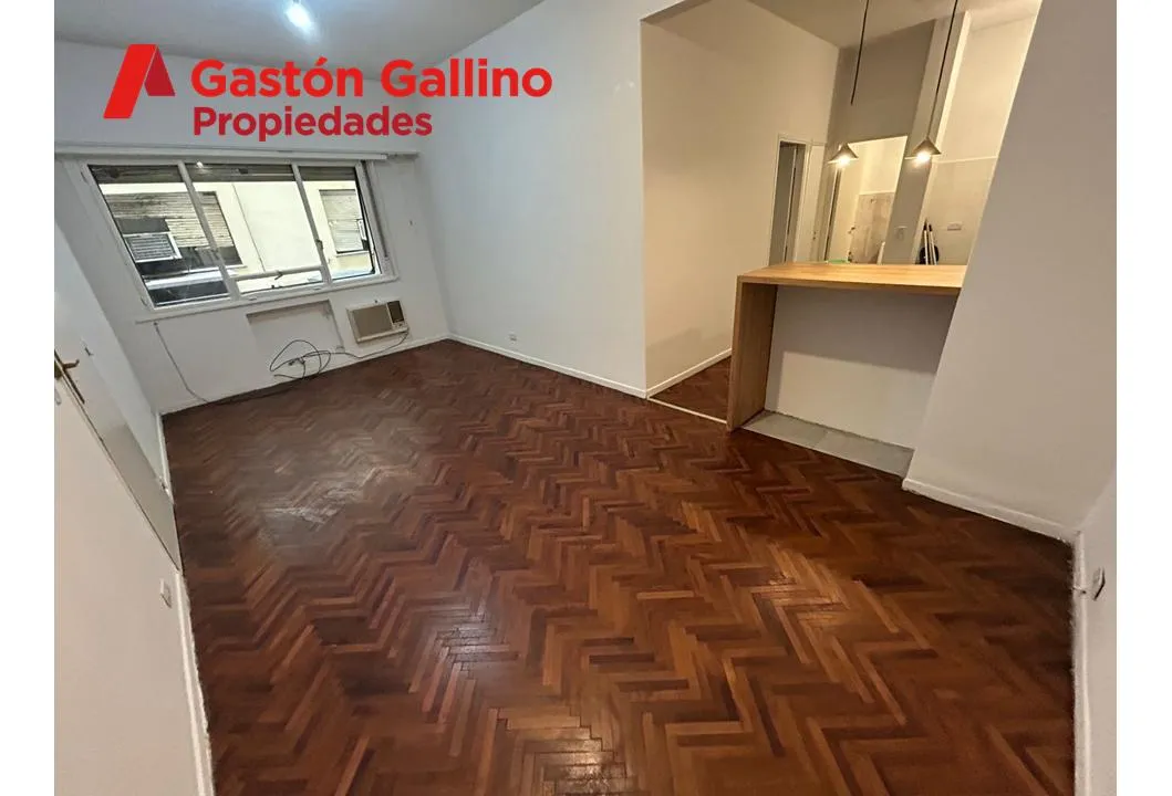 Departamento de 3 ambientes en planta baja sobre la calle Juncal, entre Esmeralda y Suipacha, Retiro. Cuenta con cocina integrada con mesa desayunador, 2 dormitorios (uno con placard) y un baño completo reciclado. Tiene pisos de parquet en el living y en un dormitorio, segundo dormitorio con pisos flotantes, 2 aires acondicionados solo frío de época, calefacción central y agua caliente central, además de cocina con horno eléctrico y 3 anafes. El edificio tiene 2 torres de 10 pisos cada una, de a