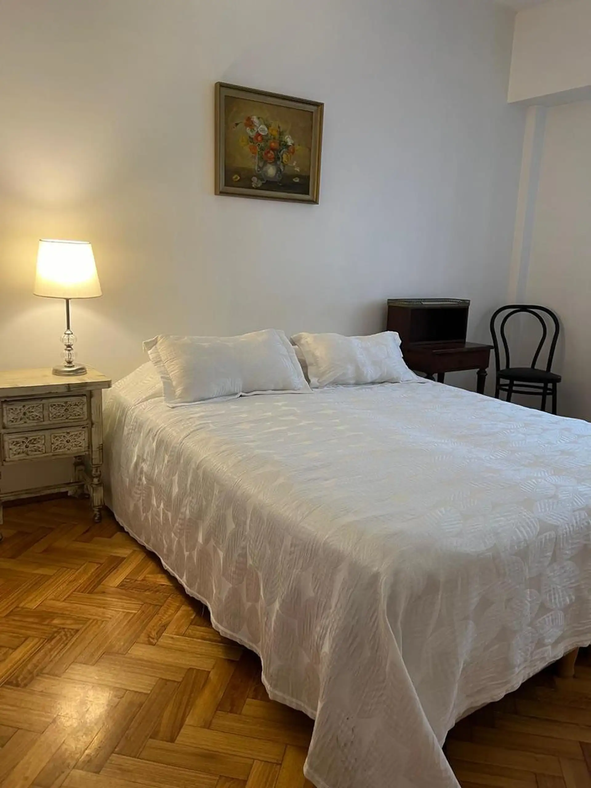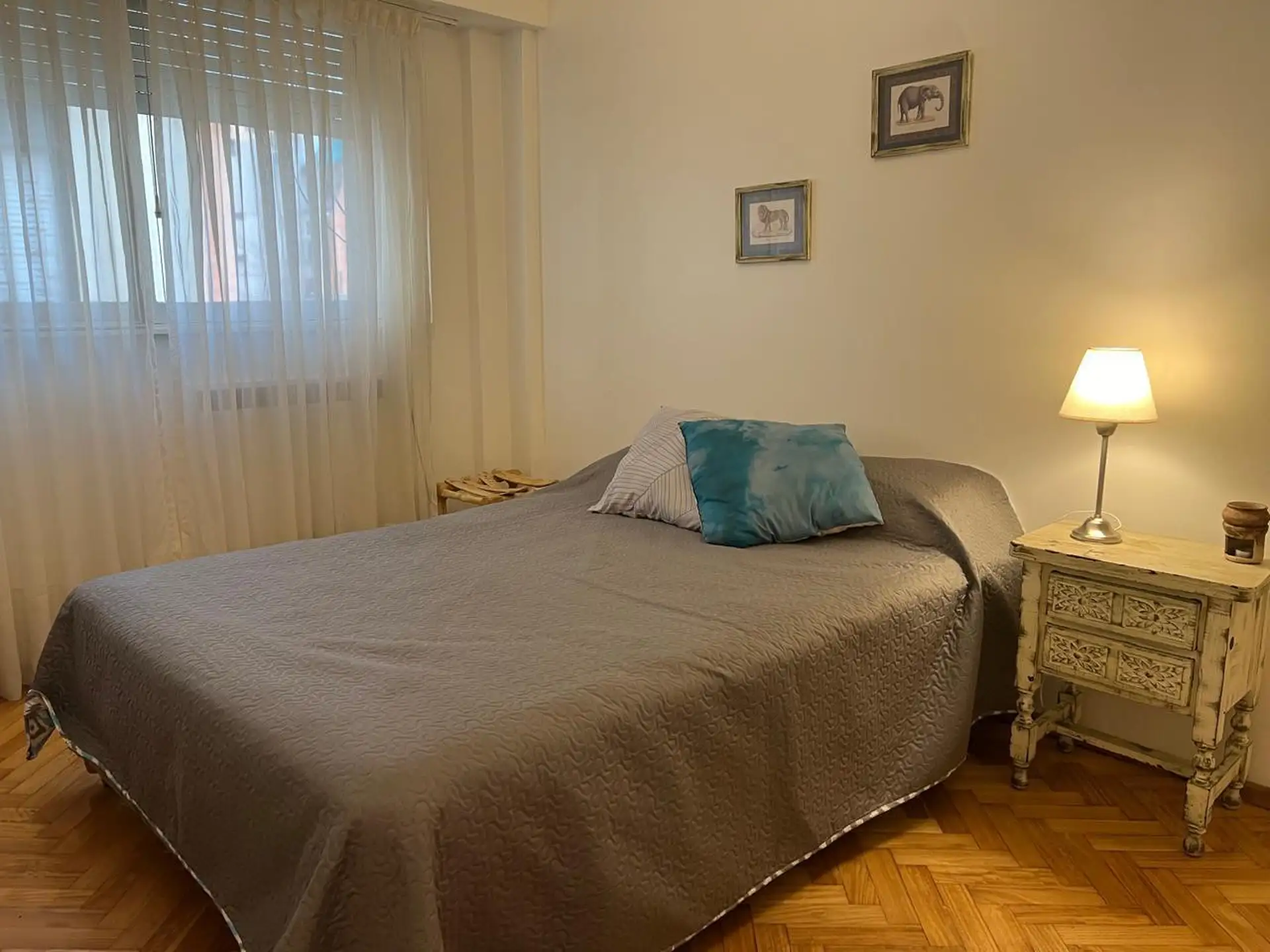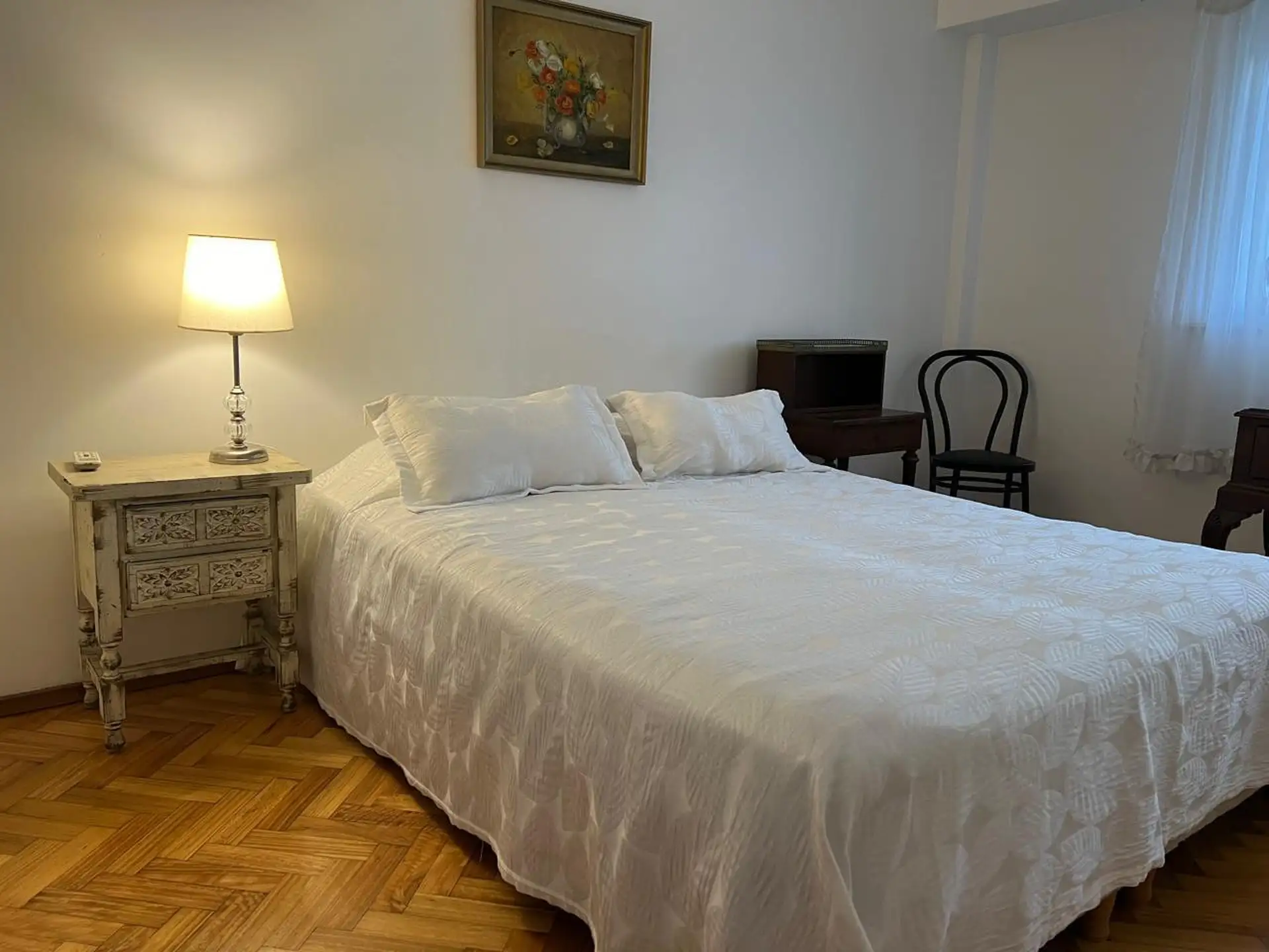 Departamento de 3 ambientes en Retiro, con vistas a pulmón de manzana. Cuenta con living comedor, cocina completa, balcón y aire acondicionado frío/calor. Incluye lavarropas, microondas y pava eléctrica. No apto para mascotas; capacidad máxima de 3 personas. No incluye servicio de internet, TV, luz, gas ni agua.