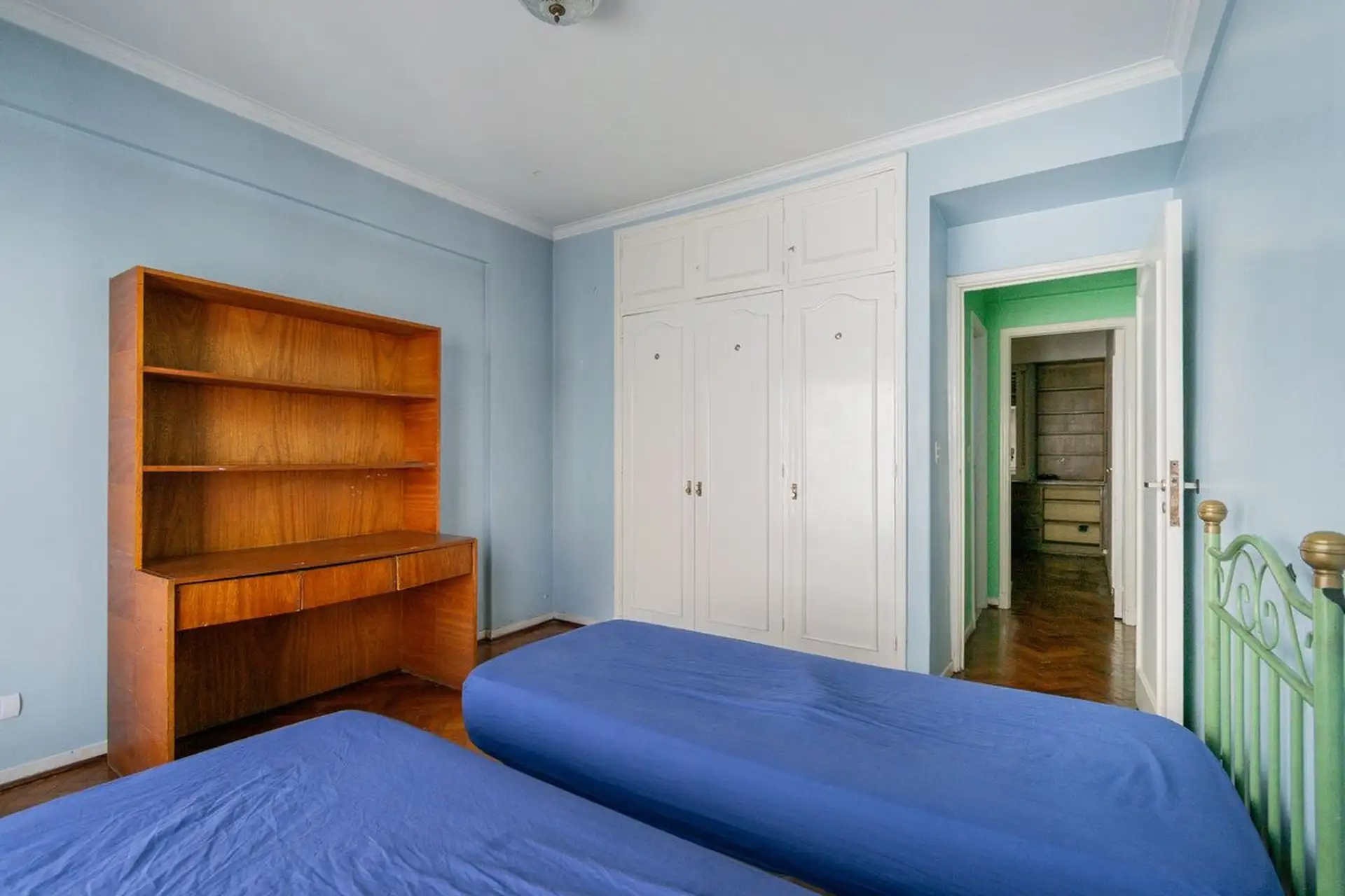 Departamento de 3 ambientes de 81 m² en el 8° piso de un edificio tradicional de 10 plantas, sobre Av. Santa Fe, con orientación contrafrente. Cuenta con entrada principal y de servicio. Incluye living-comedor con balcón francés, cocina separada totalmente equipada, dormitorio principal con balcón al contrafrente y segundo dormitorio con placards empotrados, además de 2 baños completos y toilette de recepción. Estado general: bueno.