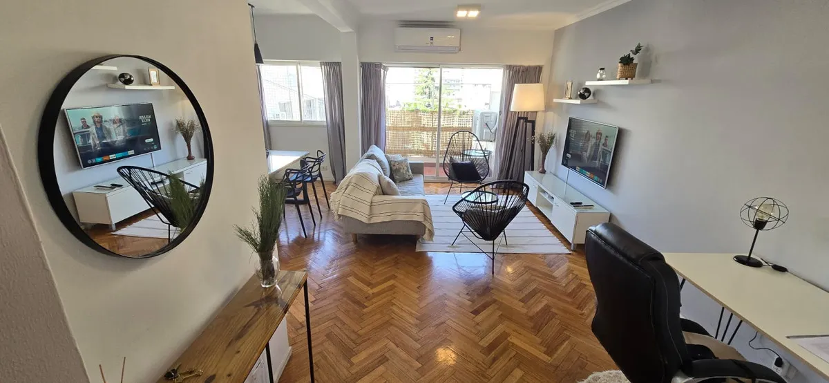 Departamento de 3 ambientes semipiso en San Cristóbal. Próximo a 1 cuadra de Av. San Juan y Av. Entre Ríos, con balcón de vista abierta. Piso de parquet recién plastificados, doble circulación de aire y aire acondicionado. Se alquila con muebles, TV LED, heladera con freezer y lavarropas, con sommiers Queen. El valor del alquiler mensual incluye expensas, Aysa y ABL; no incluye luz, gas ni internet. Disponible a partir de julio 2026.