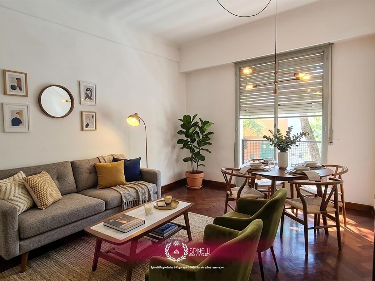 Departamento de 3 ambientes de 60 m² al frente, en el 1 piso por escaleras. Orientación norte, con ventilación cruzada y todos los ambientes principales con salida al exterior. Ubicado entre medianeras, a 115 metros de Av. San Juan y a 215 metros de Av. Jujuy; a 385 metros de Av. Independencia.