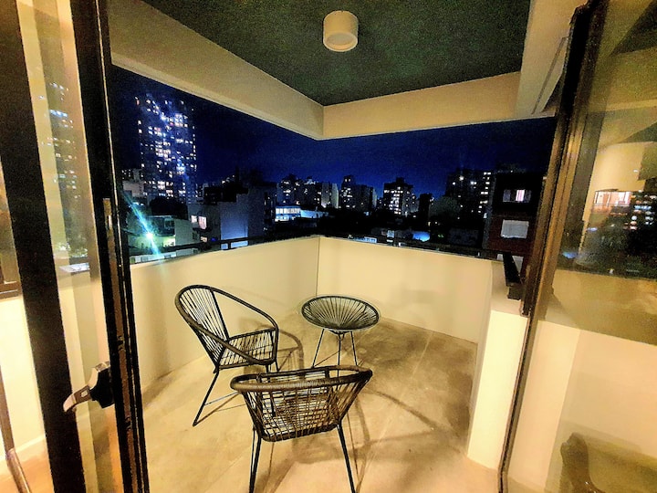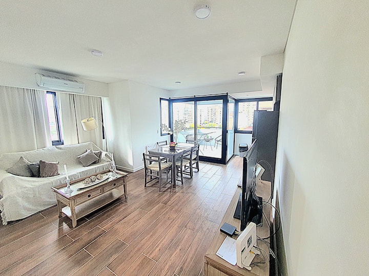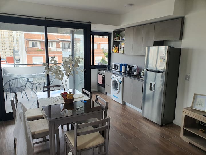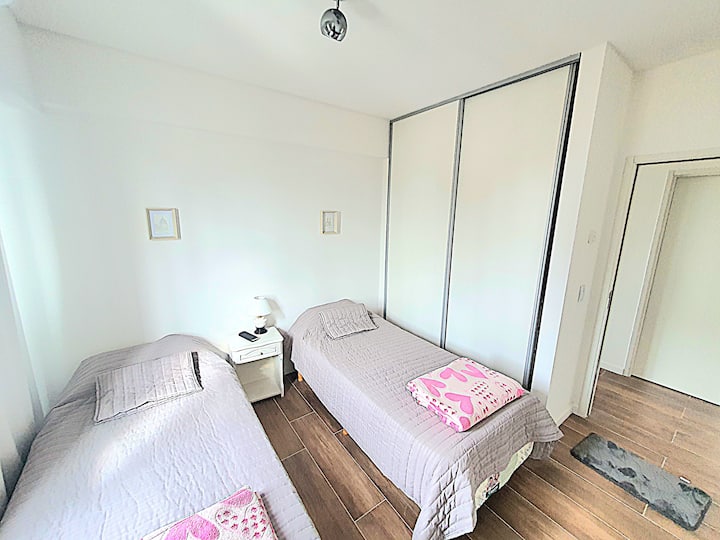 Departamento amoblado de 2 dormitorios, 2 baños, con balcón. Cuenta con aire acondicionado, Wi-Fi y cable, y está equipado para 4/5 personas. El edificio dispone de pileta, gimnasio, parrillas y parque con juegos para niños.