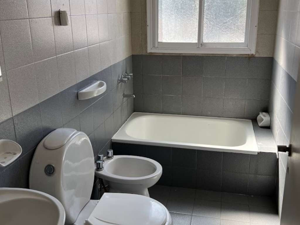 Departamento de 3 ambientes en edificio tipo torre, con living-comedor y salida a balcón. Cuenta con dos dormitorios con placares, baño completo con bañadera y ventana, y cocina con espacio para lavarropas y bacha independiente de lavado. El edificio dispone de jardín parquizado, pileta y SUM. Alquiler $850.000; expensas $310.000.