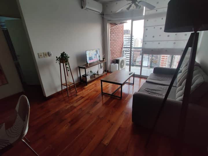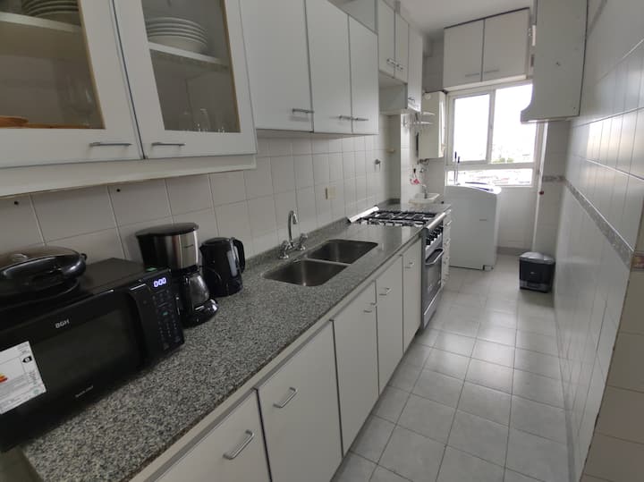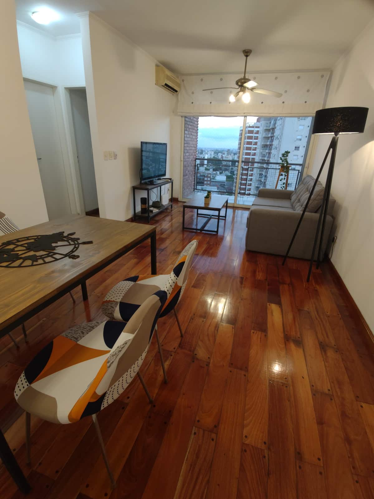 Departamento de 2 dormitorios, 1 baño, con capacidad para hasta 5 personas. Se informa como totalmente reciclado y con aire acondicionado en el living y en el dormitorio principal, además de cocina equipada con lavarropas. Incluye Wi-Fi y Smart TV, sin cable; el alojamiento cuenta con piscina y un sector de juegos para niños.