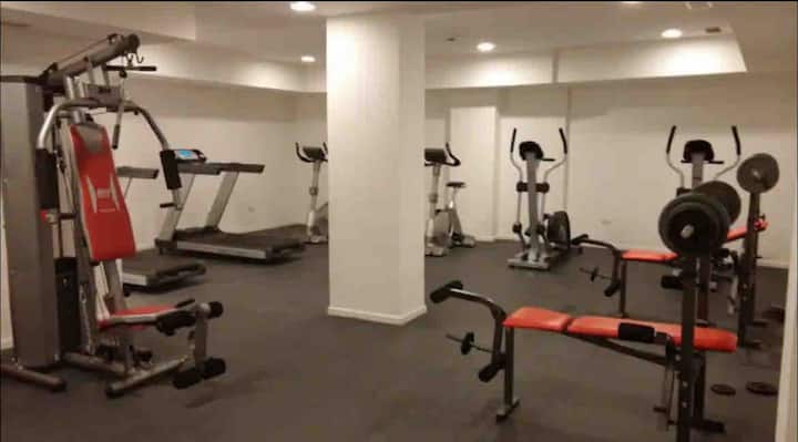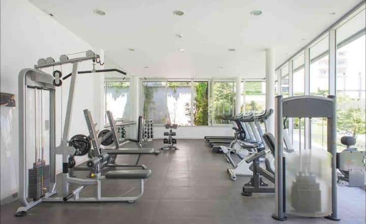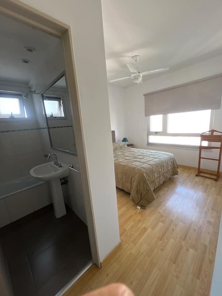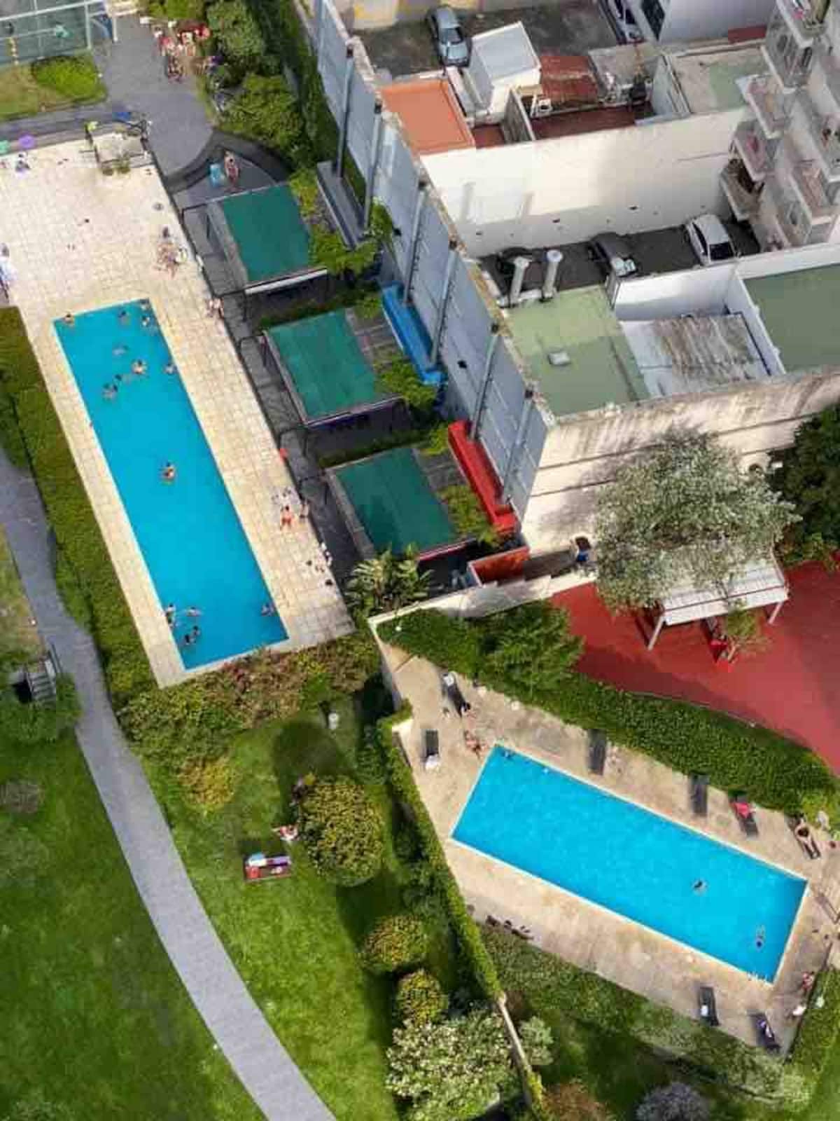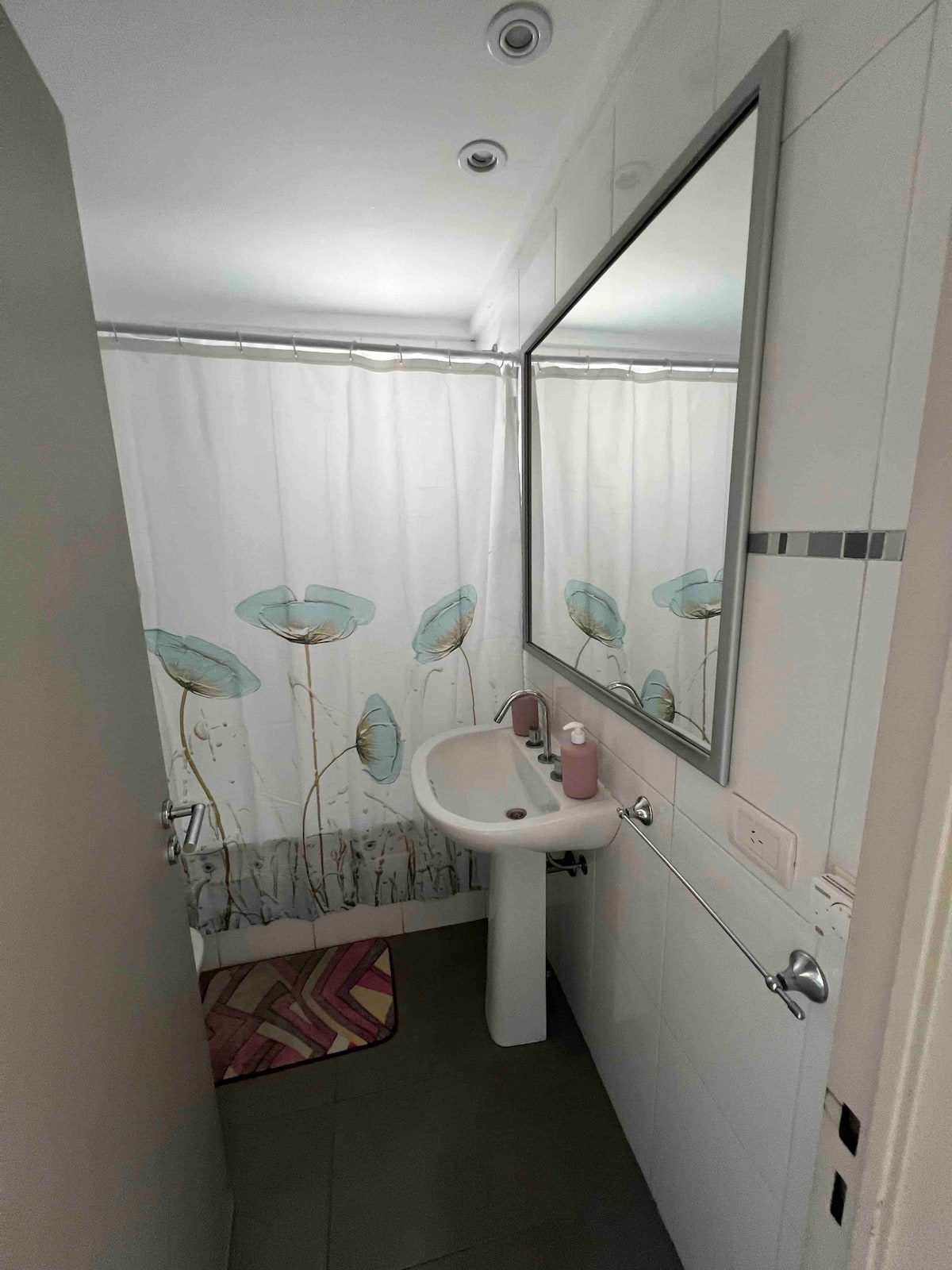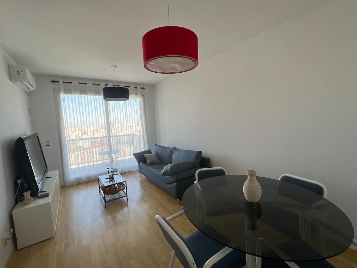 Departamento de 3 ambientes en el 23° piso, con vista panorámica. Cuenta con 1 dormitorio en suite y 1 dormitorio con baño con ducha, cocina completa y living con balcón y TV de 55”. El edificio tiene parque de 7500 m², pileta, parrilla, gimnasio y laundry, con seguridad las 24 horas.